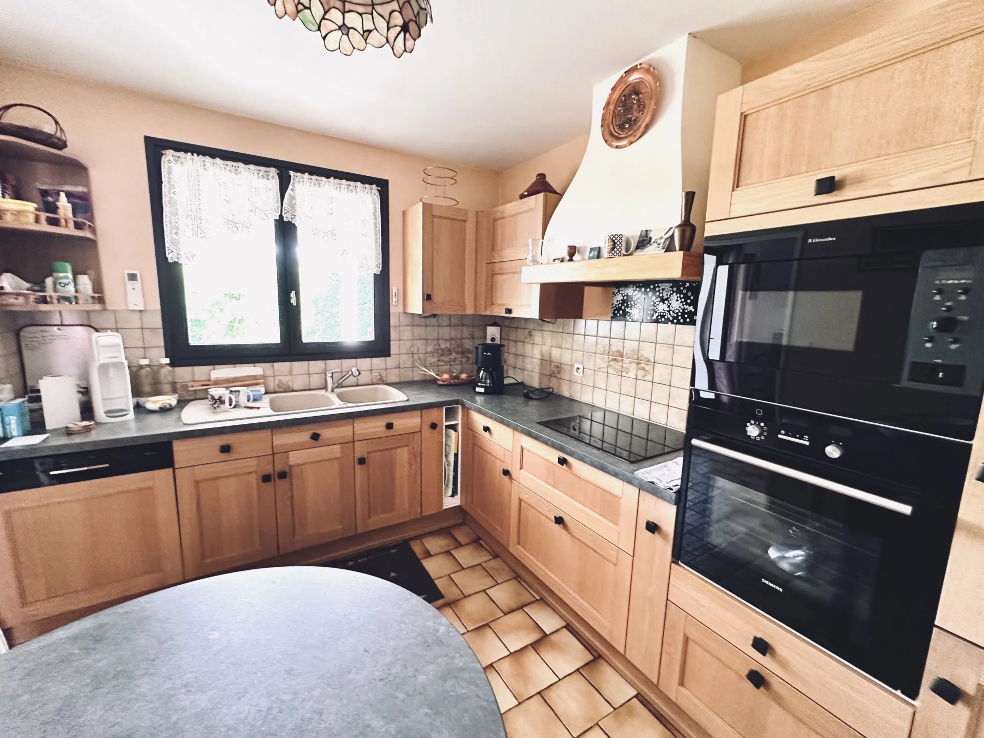 Elle se compose d'une cuisine séparée qui peut s'ouvrir sur la salon séjour, 4 chambres, une salle d'eau et un WC. Buanderie et garage.