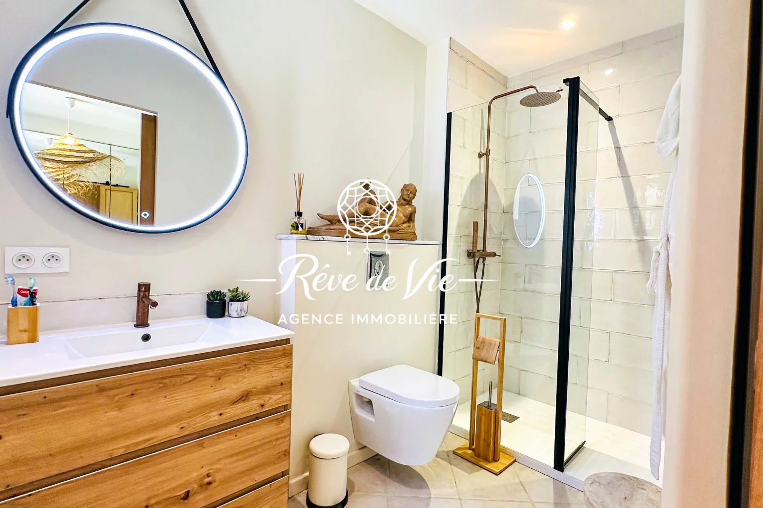 Ses beaux espaces de vie, composés d'un salon, d'une salle à manger et d'une cuisine, s'ouvrent sur une magnifique terrasse ombragée au sud, qui accueillera vos déjeuners d'été avec vue sur le jardin.