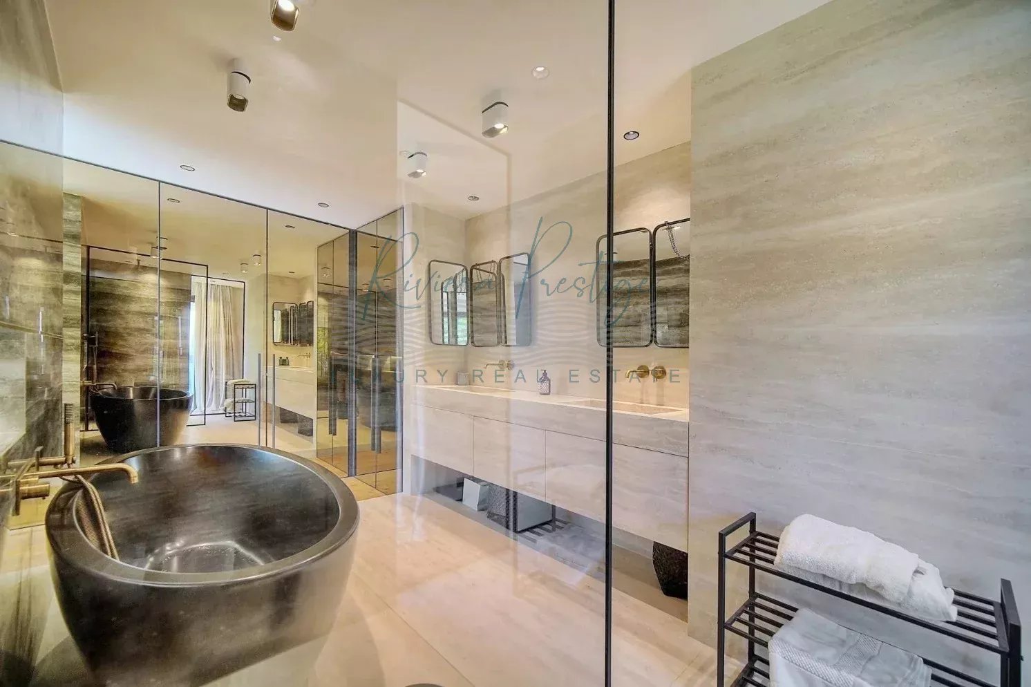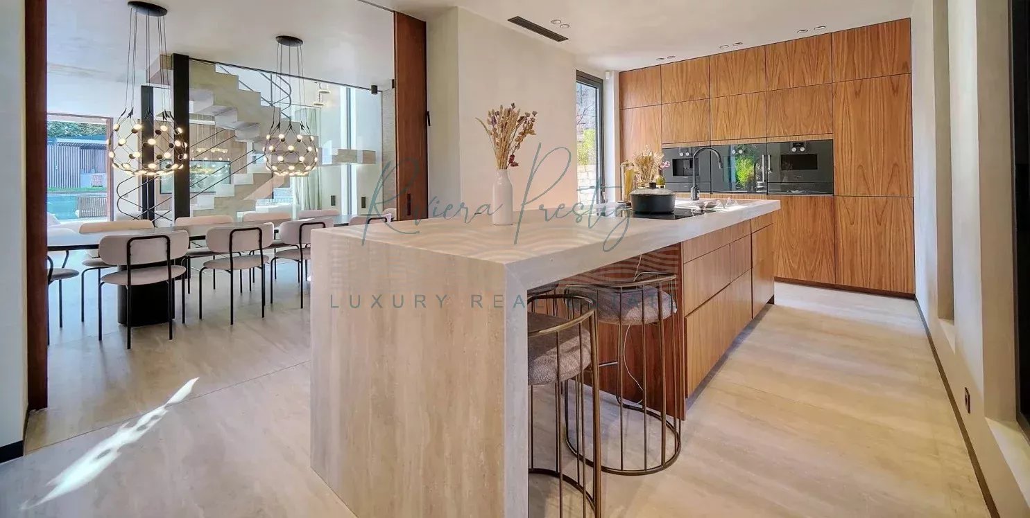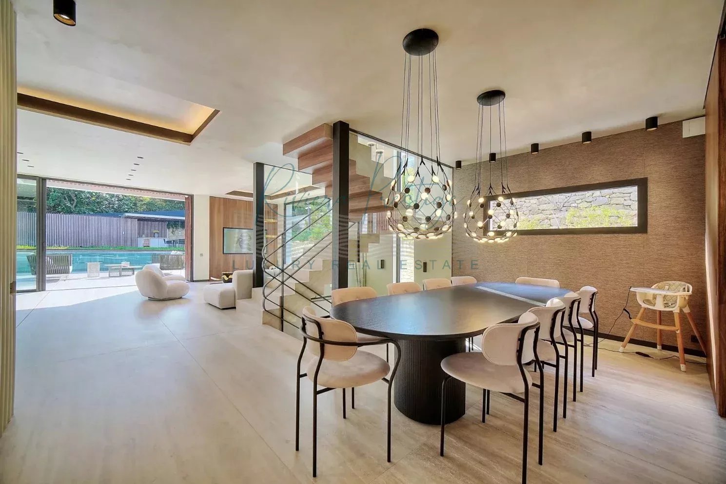 Cette villa contemporaine imaginée par un architecte de renom est située sur les hauteurs de Cannes, Construite en 2021 dans un écrin de verdure, elle bénéficie de prestations e haut standing et de la dernière technologie.