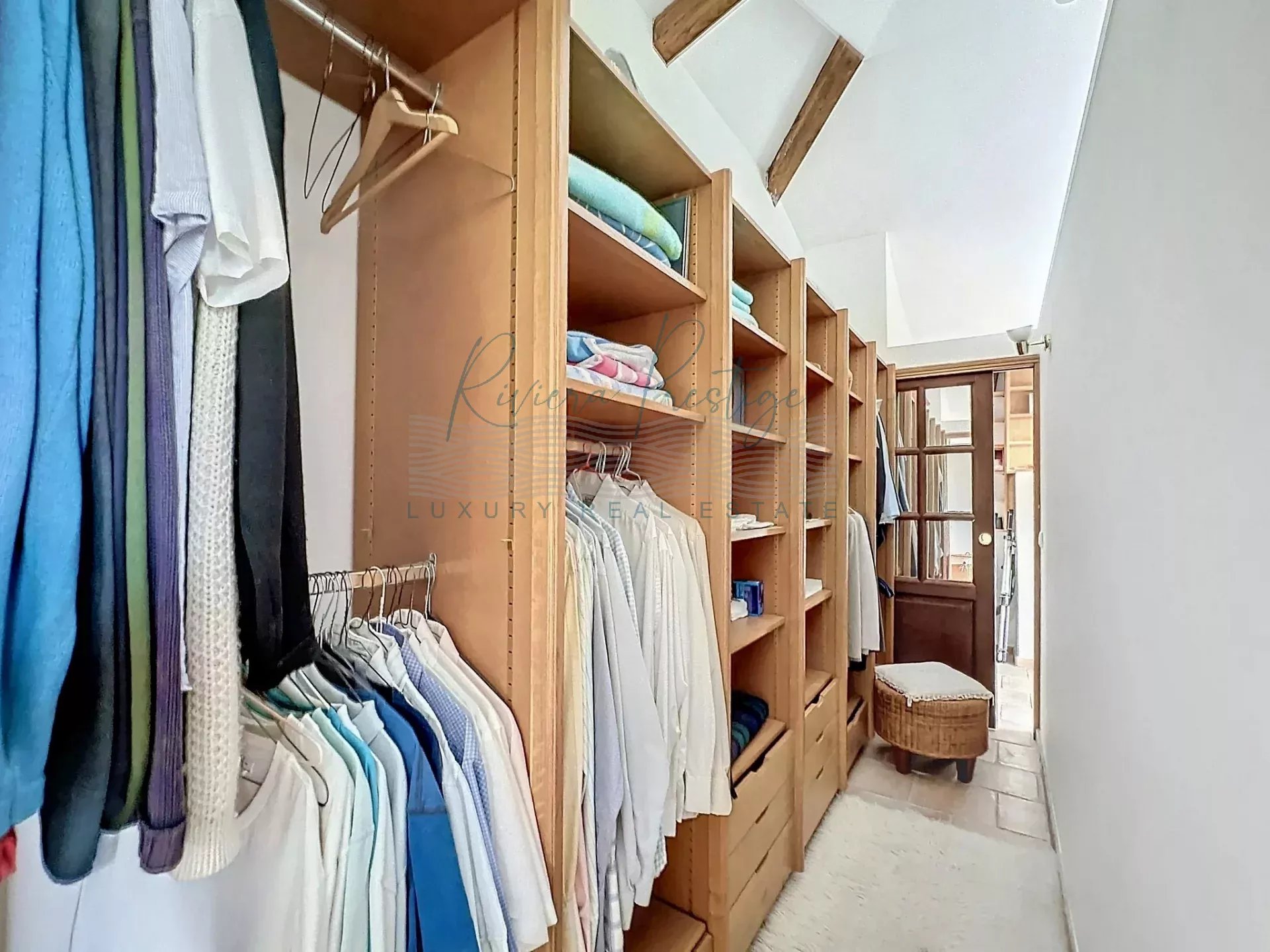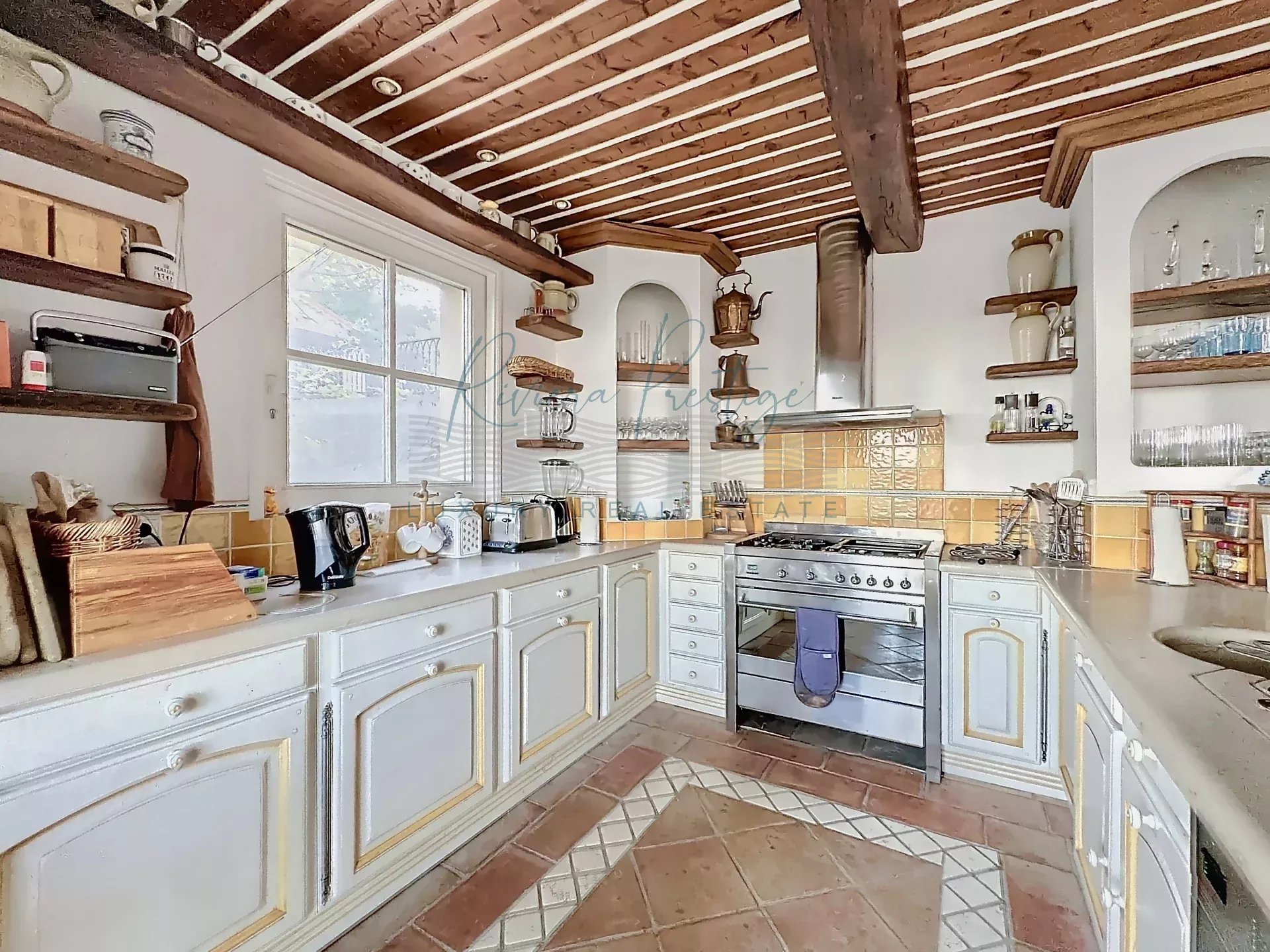 Gli spazi esterni sono altrettanto impressionanti, con una piscina riscaldata affiancata da ampie terrazze, una zona cucina adiacente e un’area doccia che offrono ulteriore comfort. Il giardino, arricchito da antichi ulivi, agrumi, fichi, susini e mimose, crea un’atmosfera idilliaca. Un fienile esistente nella parte bassa del giardino potrebbe essere potenzialmente trasformato in una dependance, previa ottenimento delle necessarie autorizzazioni dalle autorità locali.