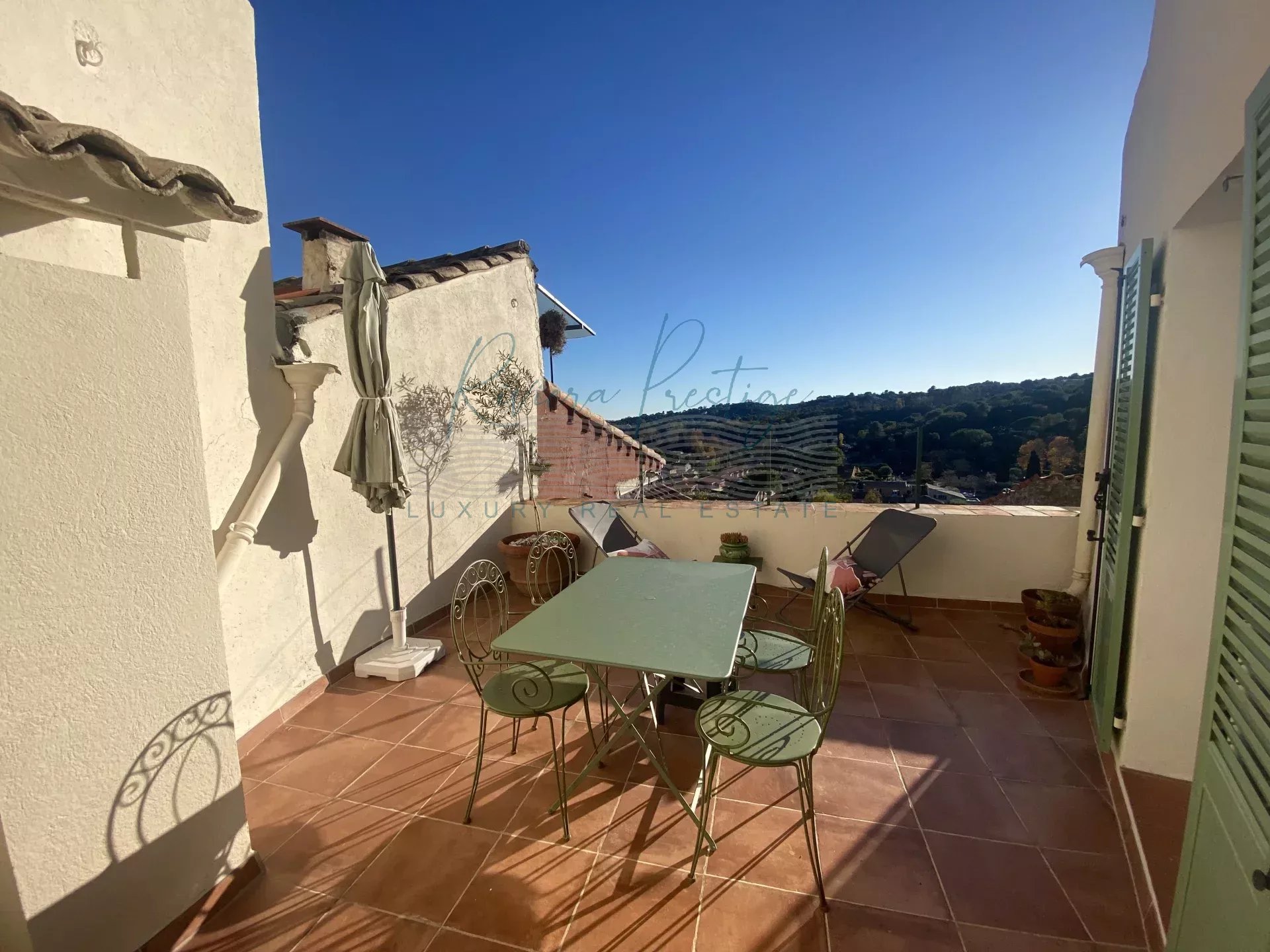 Bellissimo appartamento atipico di 3 locali con molto fascino, situato in una strada pedonale nel pittoresco villaggio di Biot. Due terrazze esposte a sud con vista mare libera, un ampio ingresso, un soggiorno con soffitti alti, due camere da letto, ciascuna con la propria terrazza, una cucina attrezzata, un bagno, un WC per gli ospiti, una cabina armadio e una grande cantina. Raro!