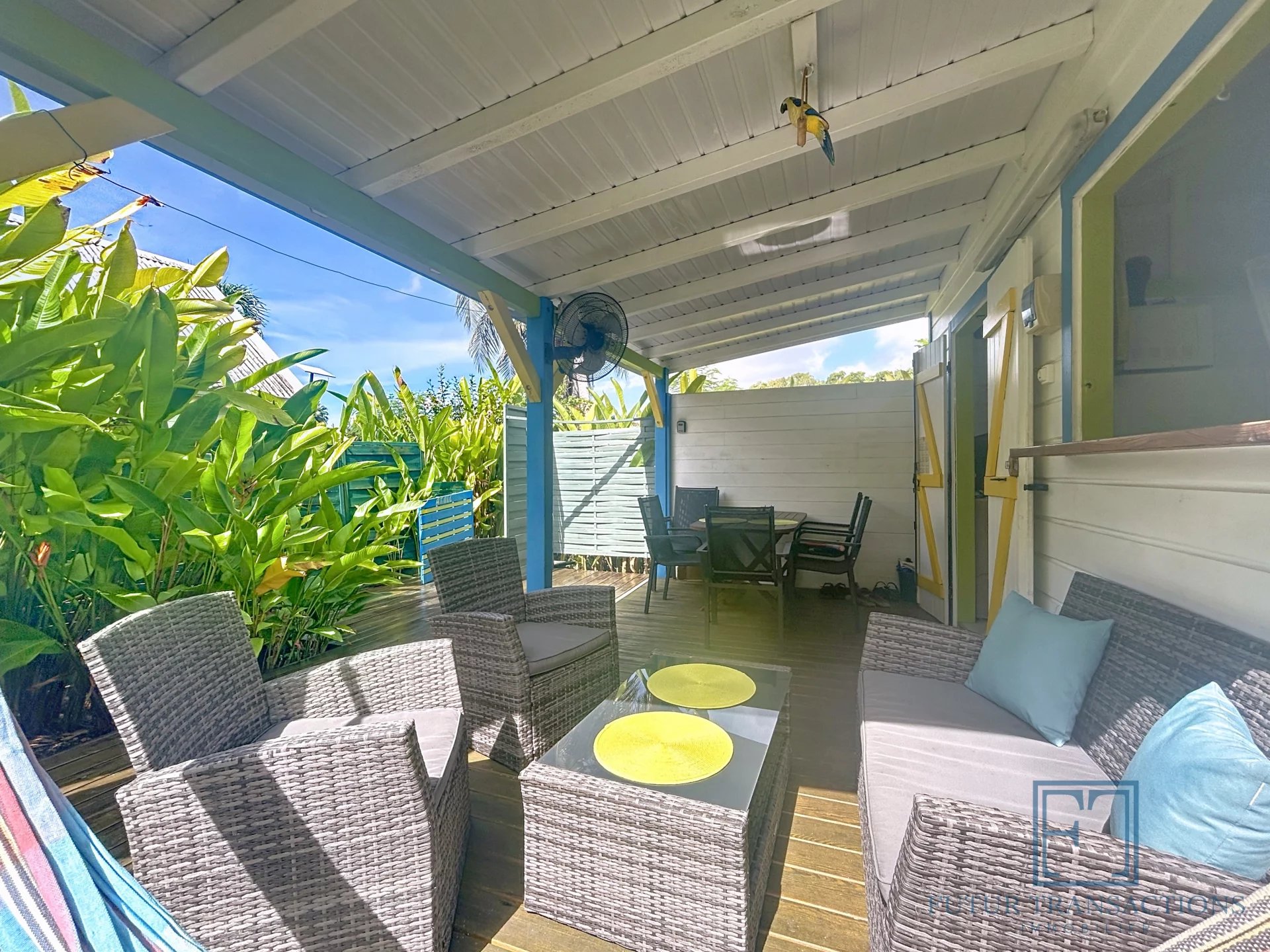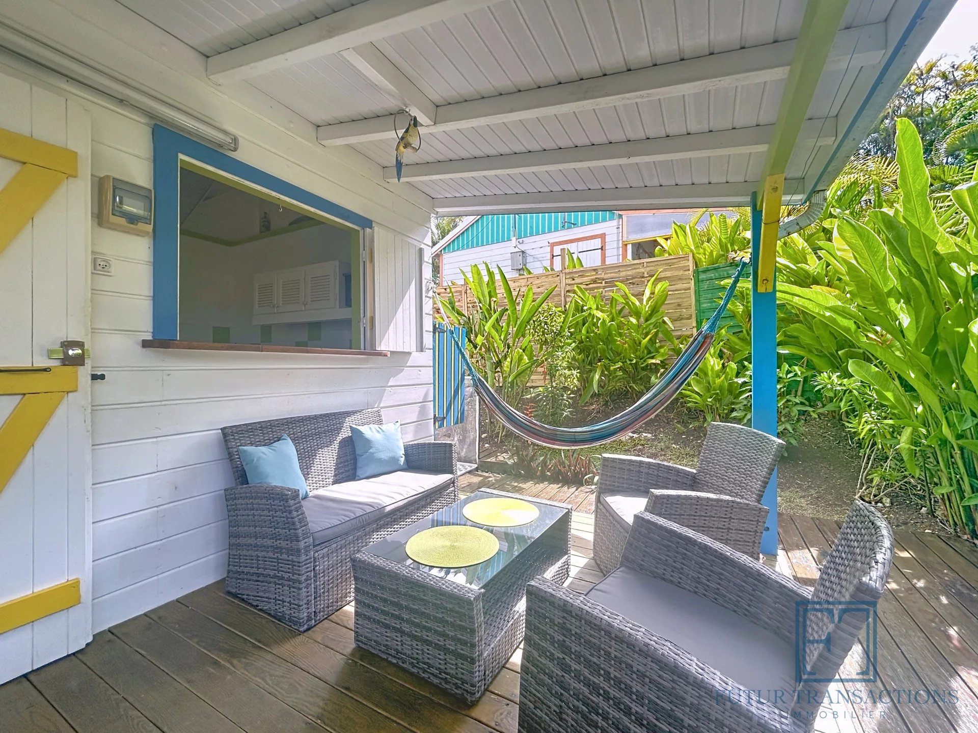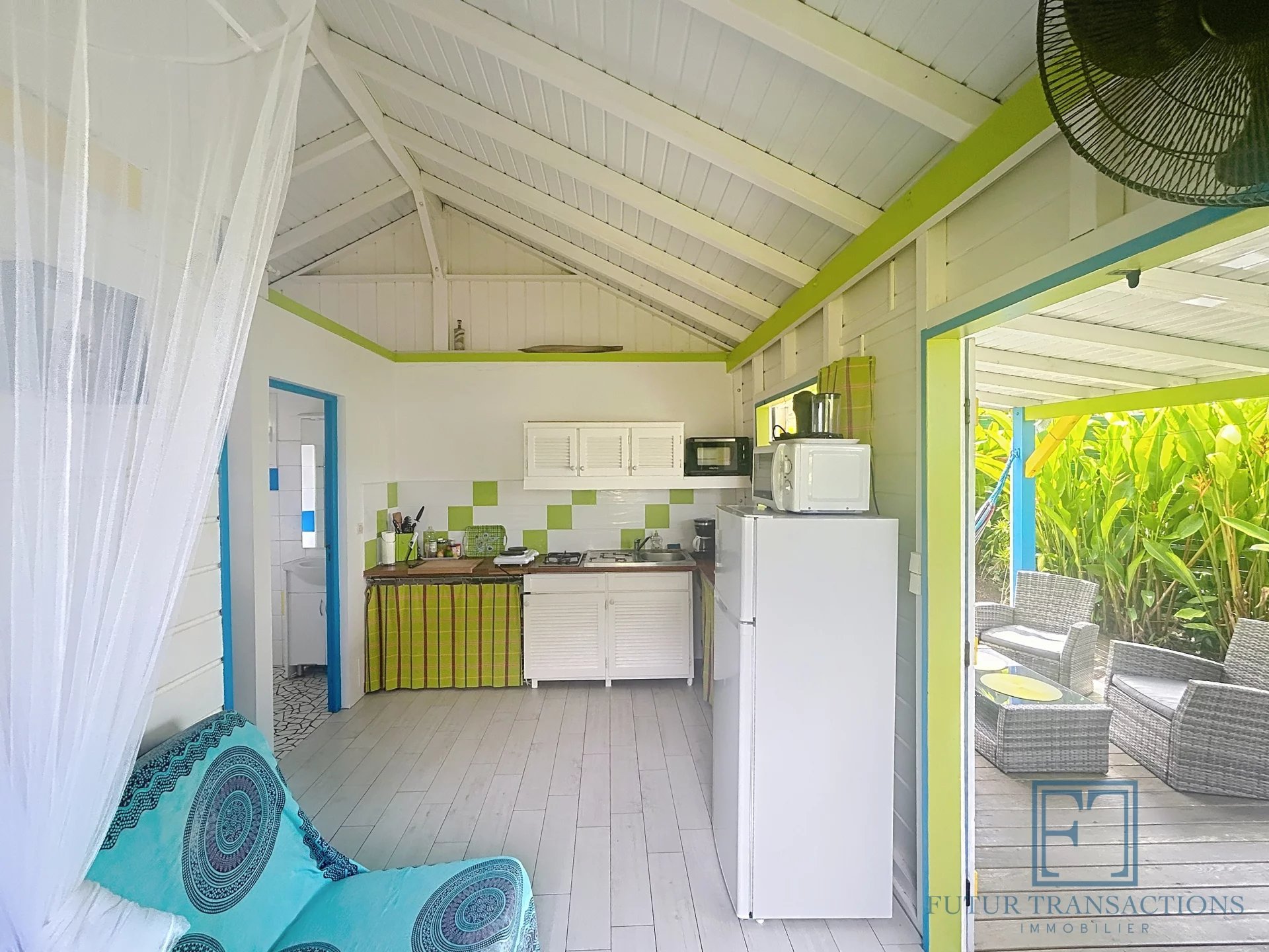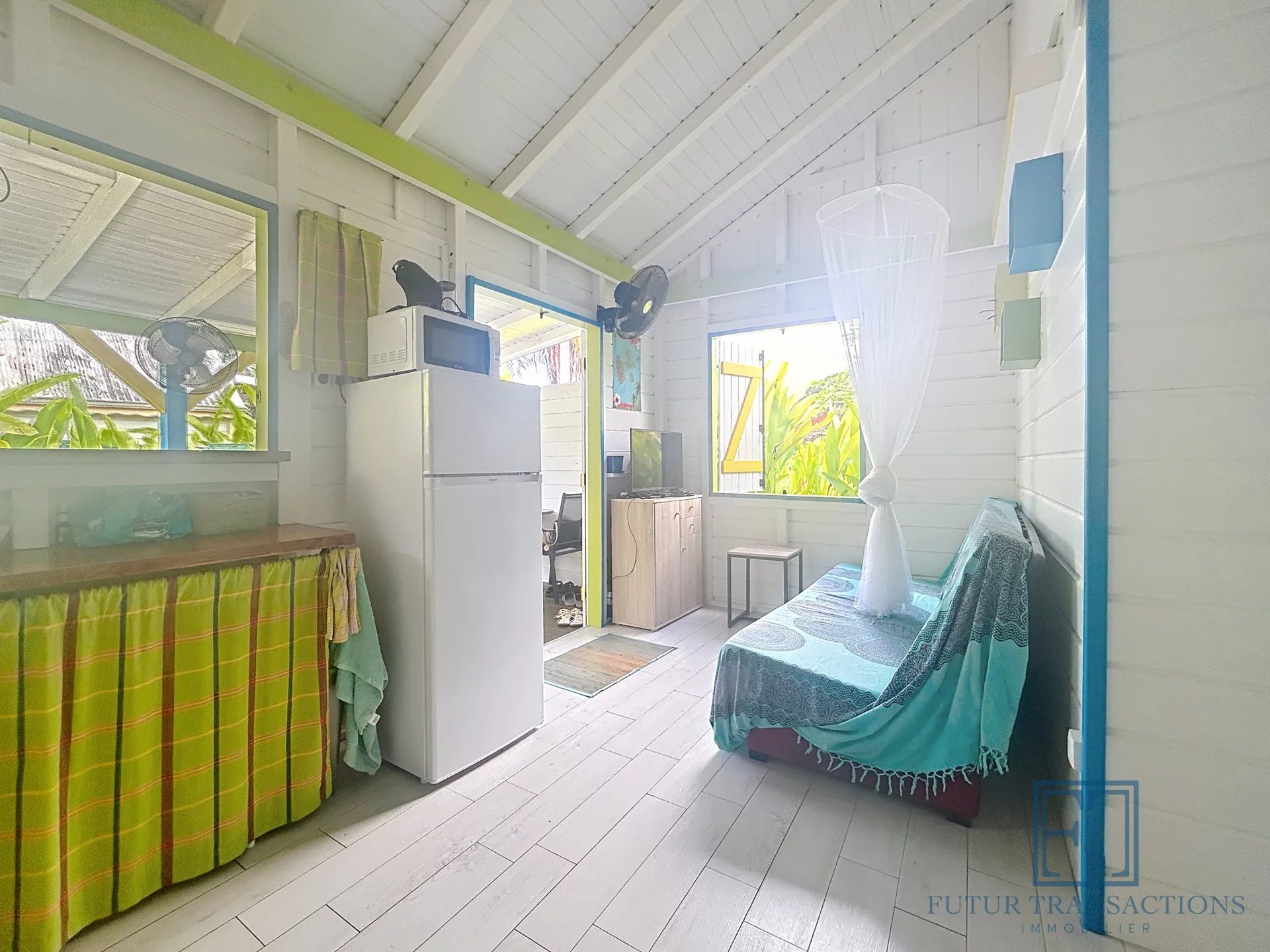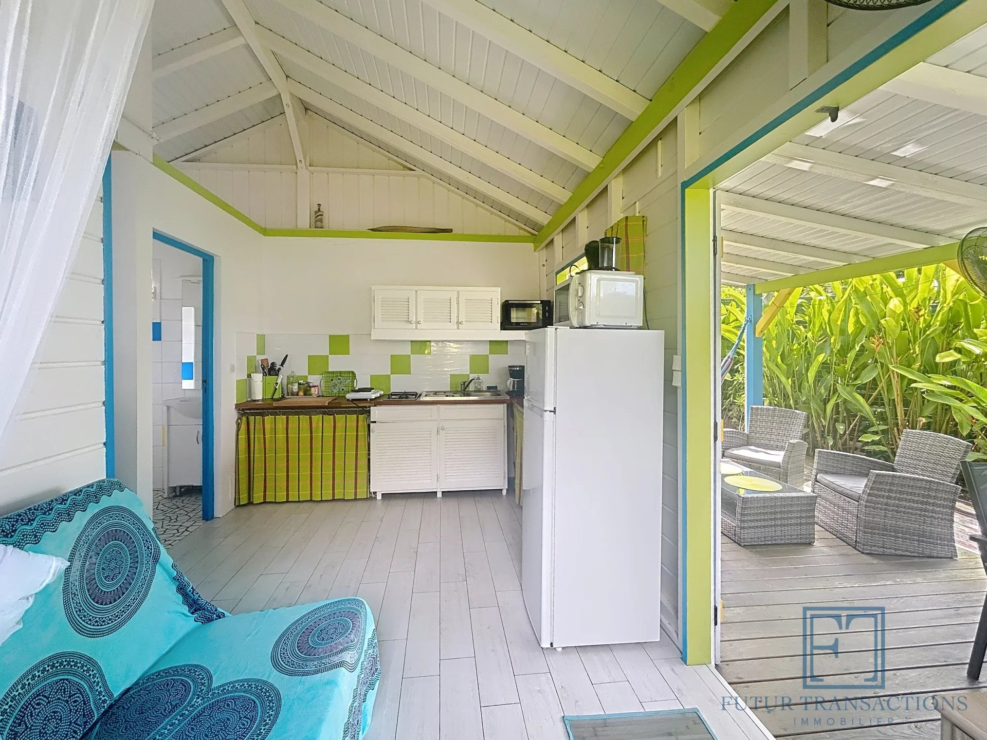 À seulement 5 minutes de la célèbre plage de la Caravelle à Sainte-Anne, ce charmant bungalow est une véritable pépite, nichée dans un écrin de verdure. Un cadre paisible et tropical pour profiter pleinement de la douceur de vivre caribéenne ! Copropriété intimiste de seulement 11 lots, sécurisée par un portail avec place de parking extérieur. Ce bungalow de type T2, de 21,79 m2 en surface Carrez (32,06 m2 de surface totale) se compose d'une terrasse abritée, un séjour cuisine équipée avec électroménager neuf , une salle d'eau avec toilettes et une chambre climatisée avec placards. La parcelle est entièrement clôturée au sein d'un petit jardin tropical dont vous avez la jouissance exclusive avec une douche extérieure. Le bien est vendu meublé clé en main. A propos de la copropriété : la quote-part de charges mensuelles s'élèvent à environ 130€ par mois incluant internet, entretien des communs et de la piscine, eau et électricité. Pour ce qui est des espaces communs vous bénéficiez d'une jolie piscine et d'une terrasse avec transats, idéal pour vous rafraîchir en fin de journée. Les plus : citerne d'eau tampon et groupe électrogène tout y est pour assurer un confort optimal! Investissement locatif rentable, pied à terre ou résidence principale à vous de choisir ! Etiquette énergétique : classe A. Aucune procédure en cours menée sur le fondement des articles 29-1 A et 29-1 de la loi n°65-557 du 10 Juillet 1965 et de l'article L.615-6 du CCH. Le prix de vente comprend les honoraires charge Acquéreur : 6% TTC du prix du bien hors honoraires. Prix de vente hors honoraires : 183 000 €. Alors n'hésitez pas à nous contacter au +590 690 68 26 46 pour de plus amples informations ou accéder au reportage photos complet. Les risques auxquels ce bien sont exposés sont disponibles sur le site Géorisques : www.georisques.gouv.fr