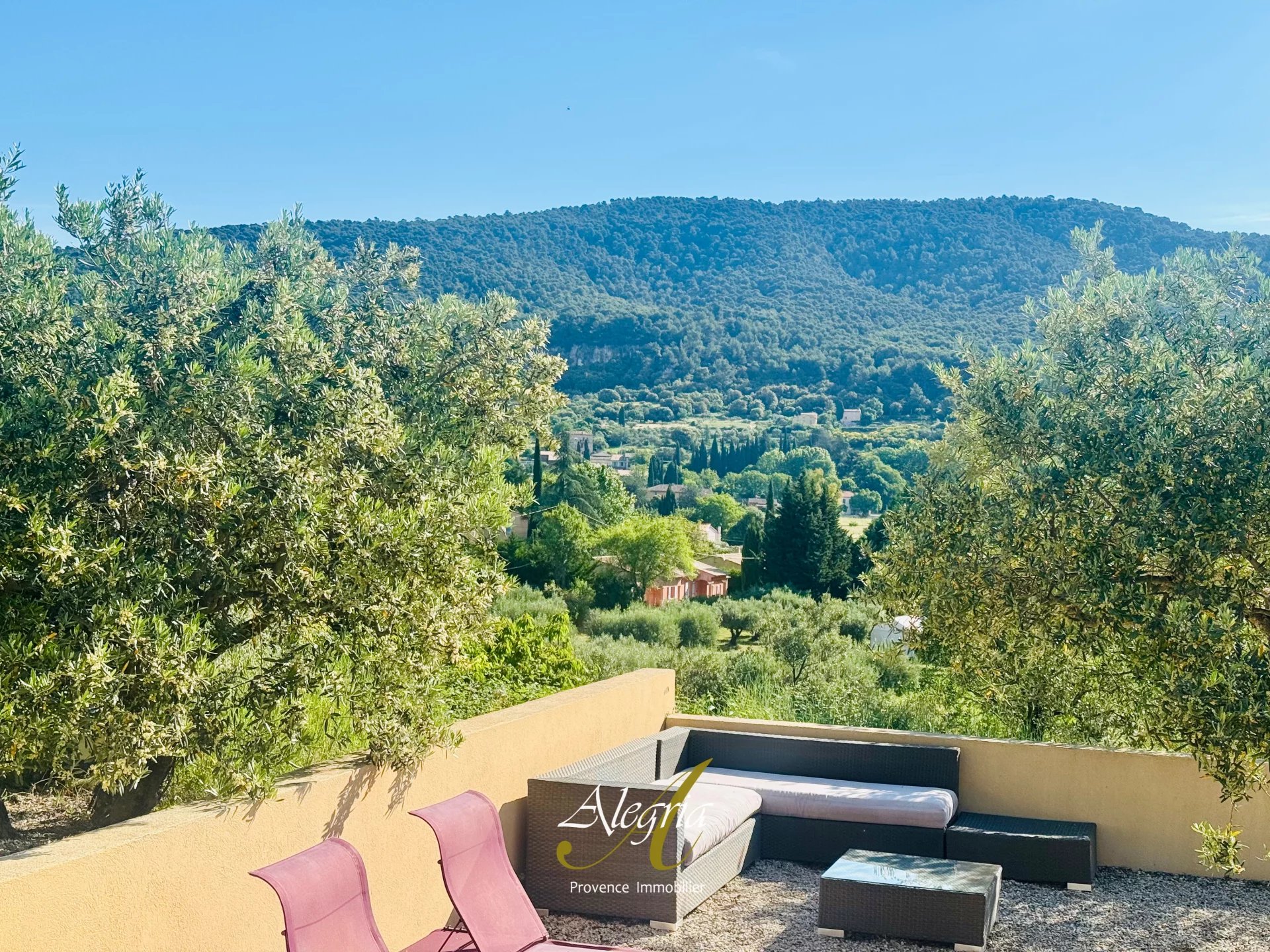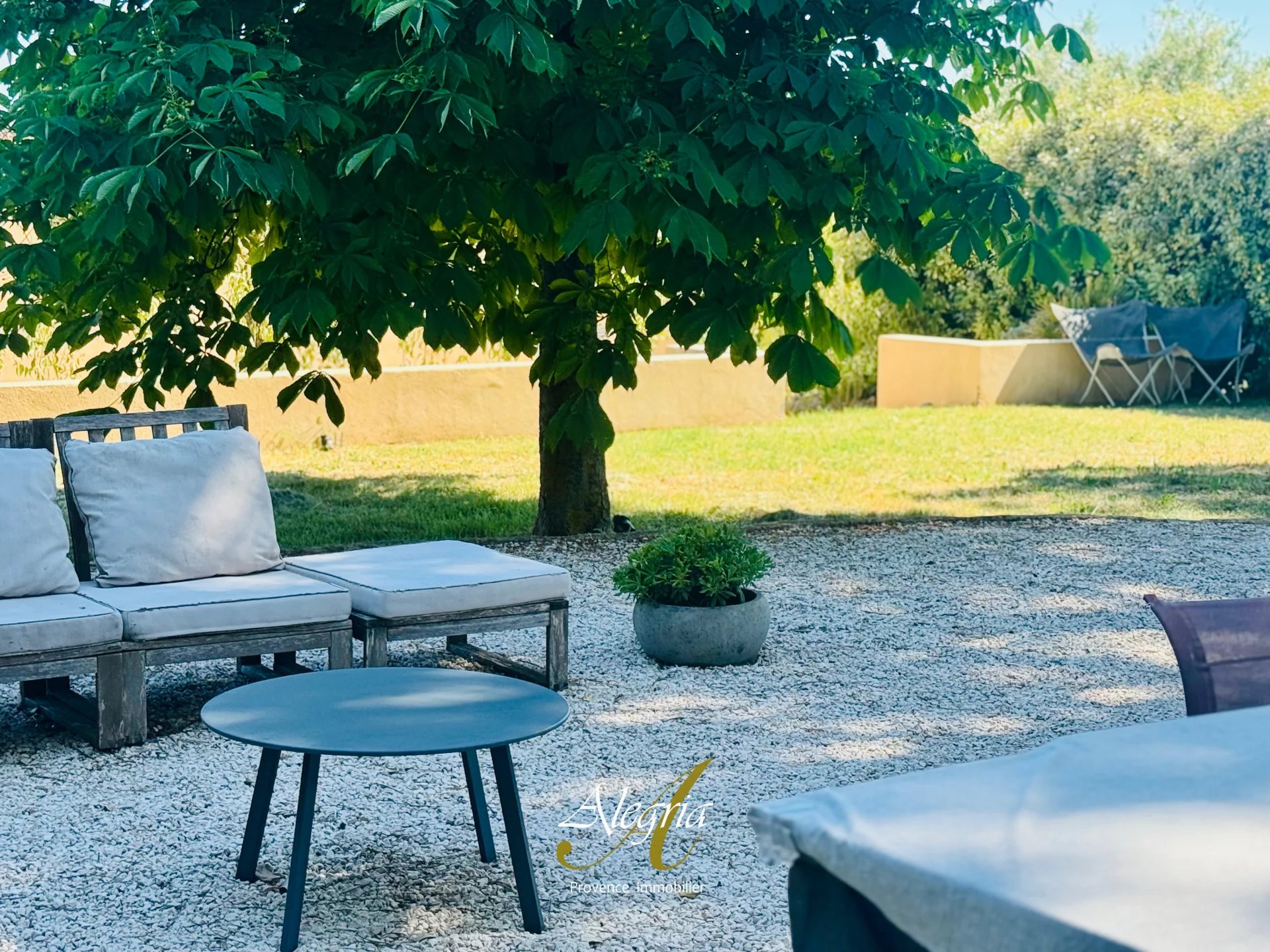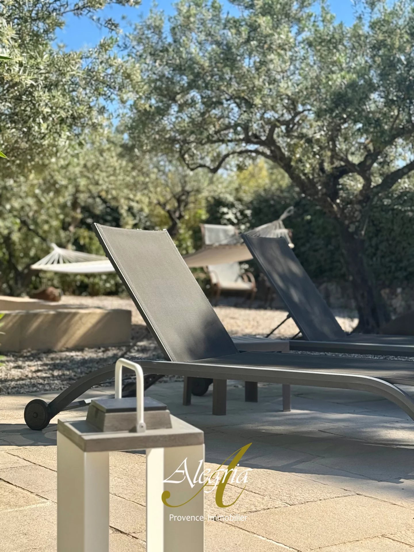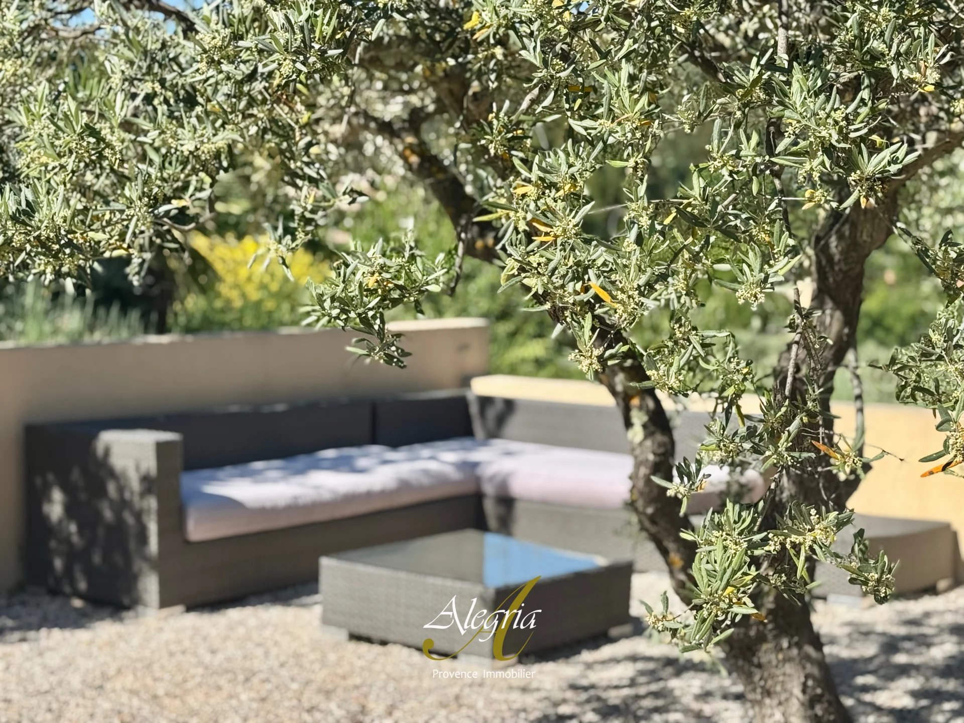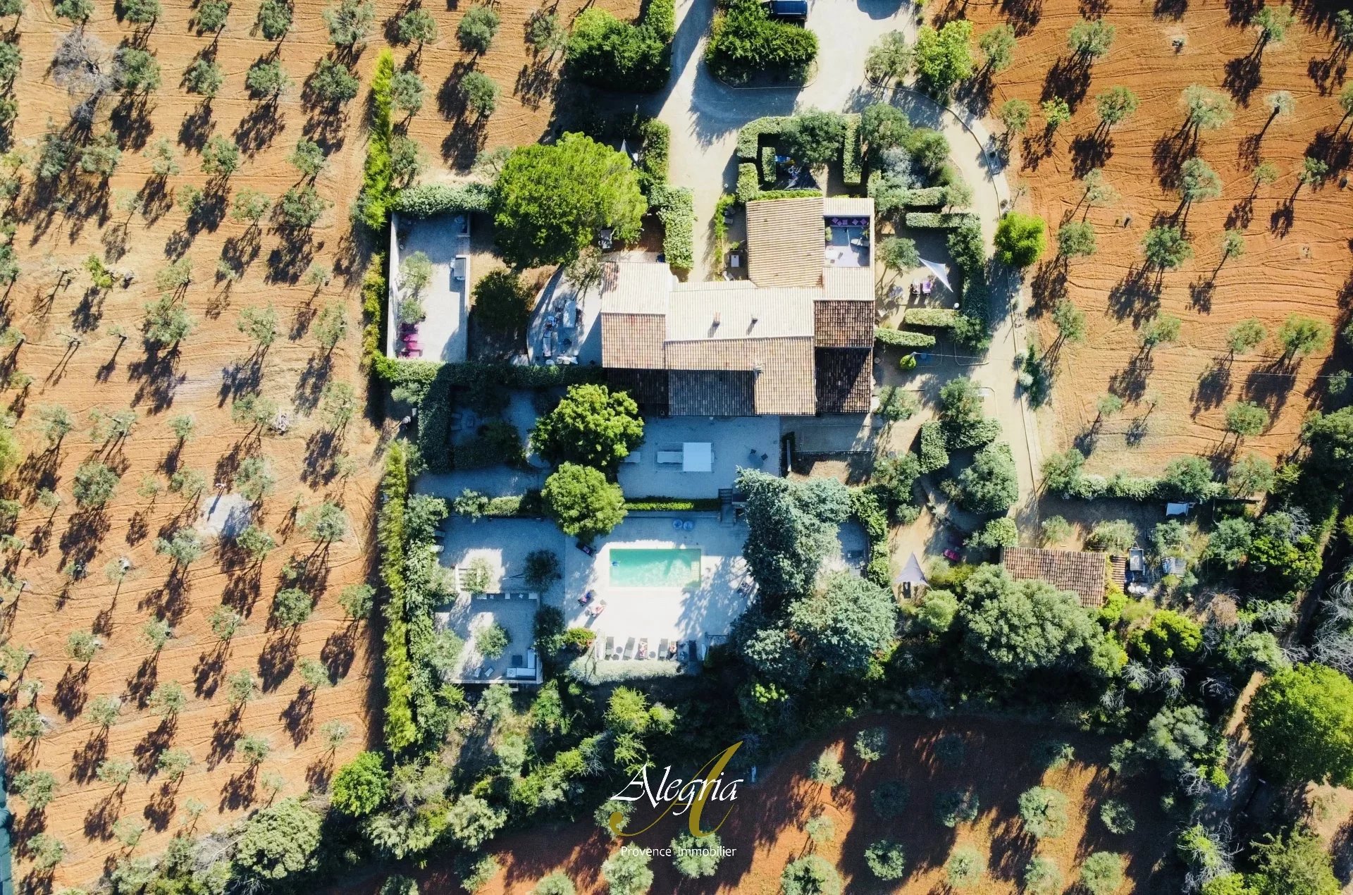 Le jardin paysager à la végétation provençale, comprend env. 100 oliviers, produisant chaque année une huile d’olive vierge extra. Les extérieures comprennent une piste de pétanque, de multiples terrasses, arrosage, éclairage et portail automatiques, et un parking de 150m2.