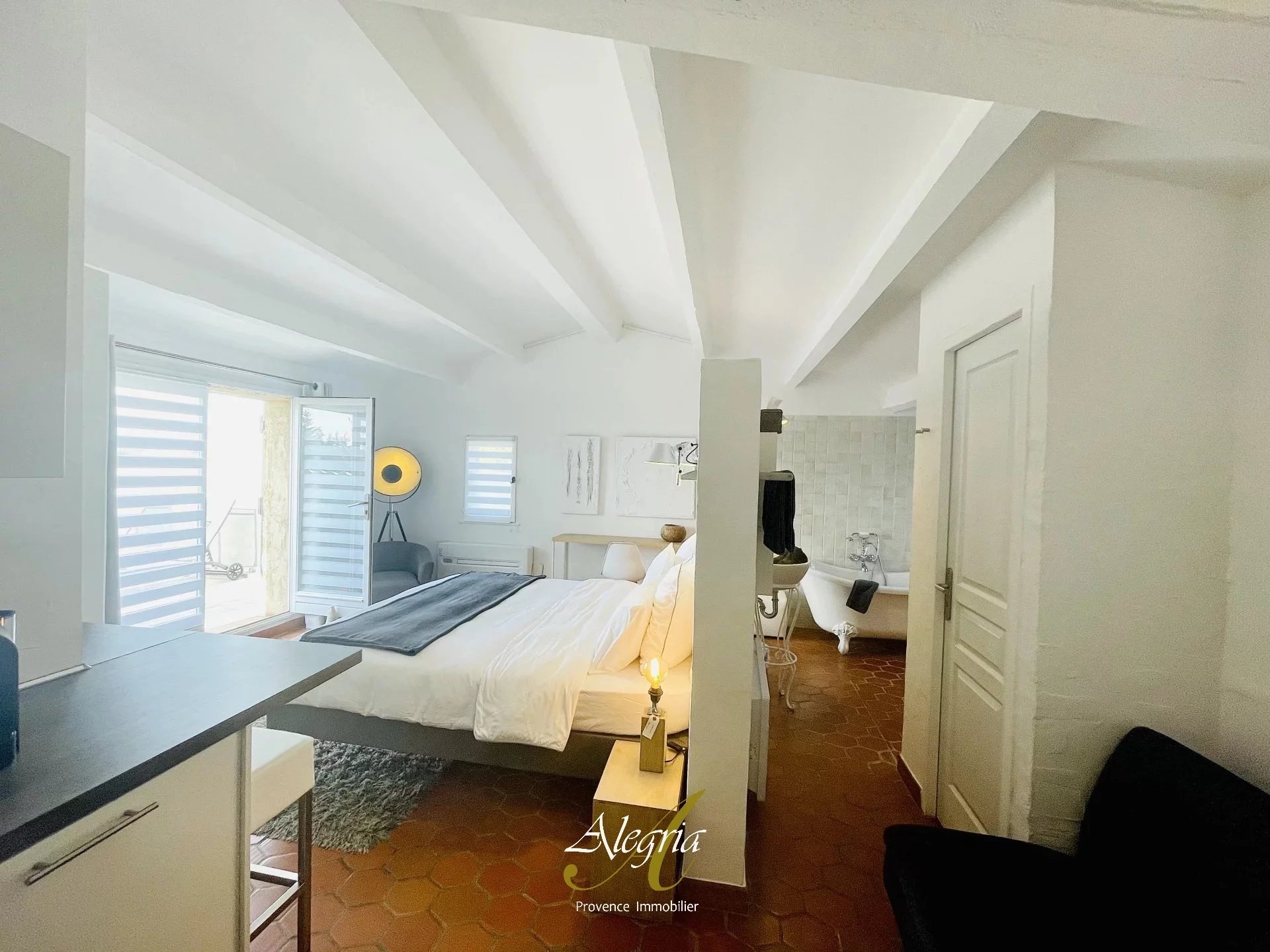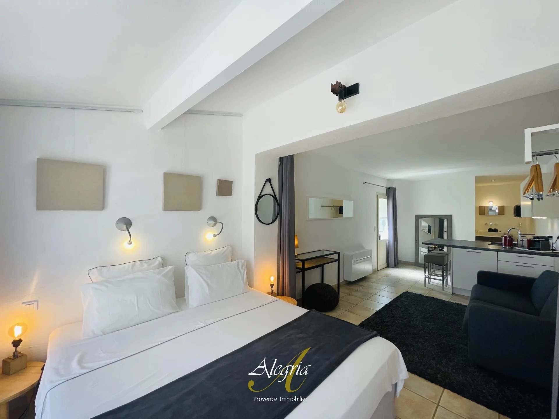 Attachée à la maison de maître, un ensemble d'env. 200m2 comprenant 5 studios climatisés haute de gamme, tous aux volumes confortables (env. 35m2) et dotés d’une grande terrasse, un îlot de cuisine et une salle d’eau. À cette entité se rajoute une pièce modulable (en salon, salle de cinéma, salle de yoga, …).