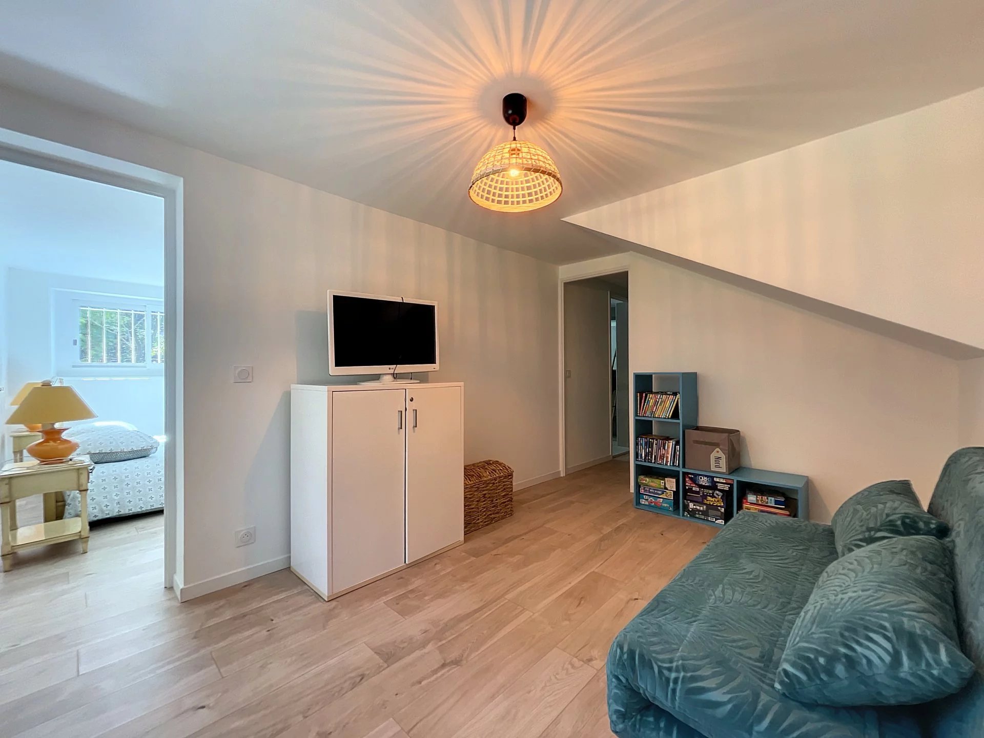 Le premier niveau dispose également de deux chambres, dont une chambre avec un lit de 160 cm, dressing et salle de douche, l'autre chambre plutôt pour les enfants sont deux lits de 90CM. Les chambres sont décorées avec goût dans un style traditionnel avec des meubles en bois.