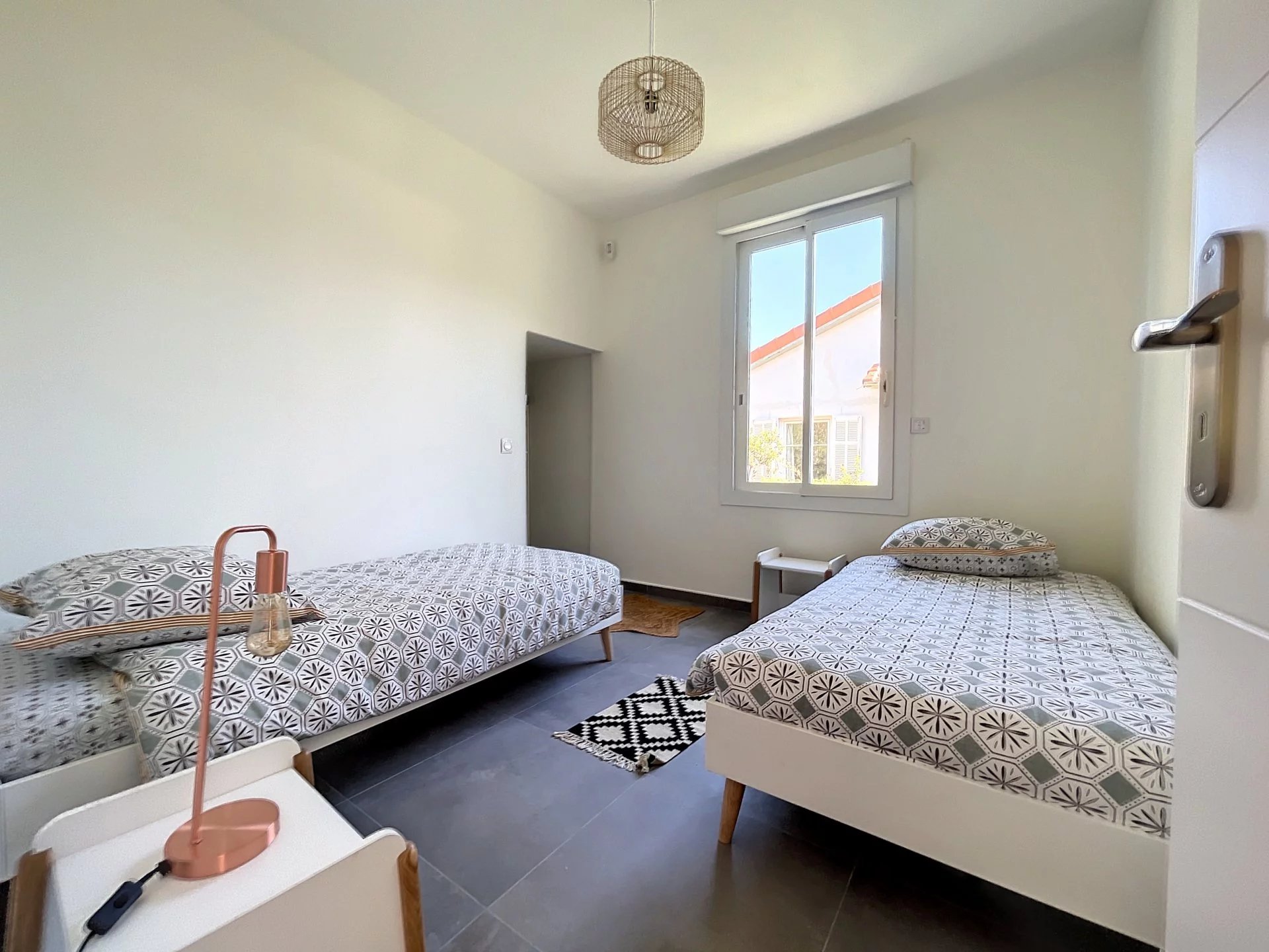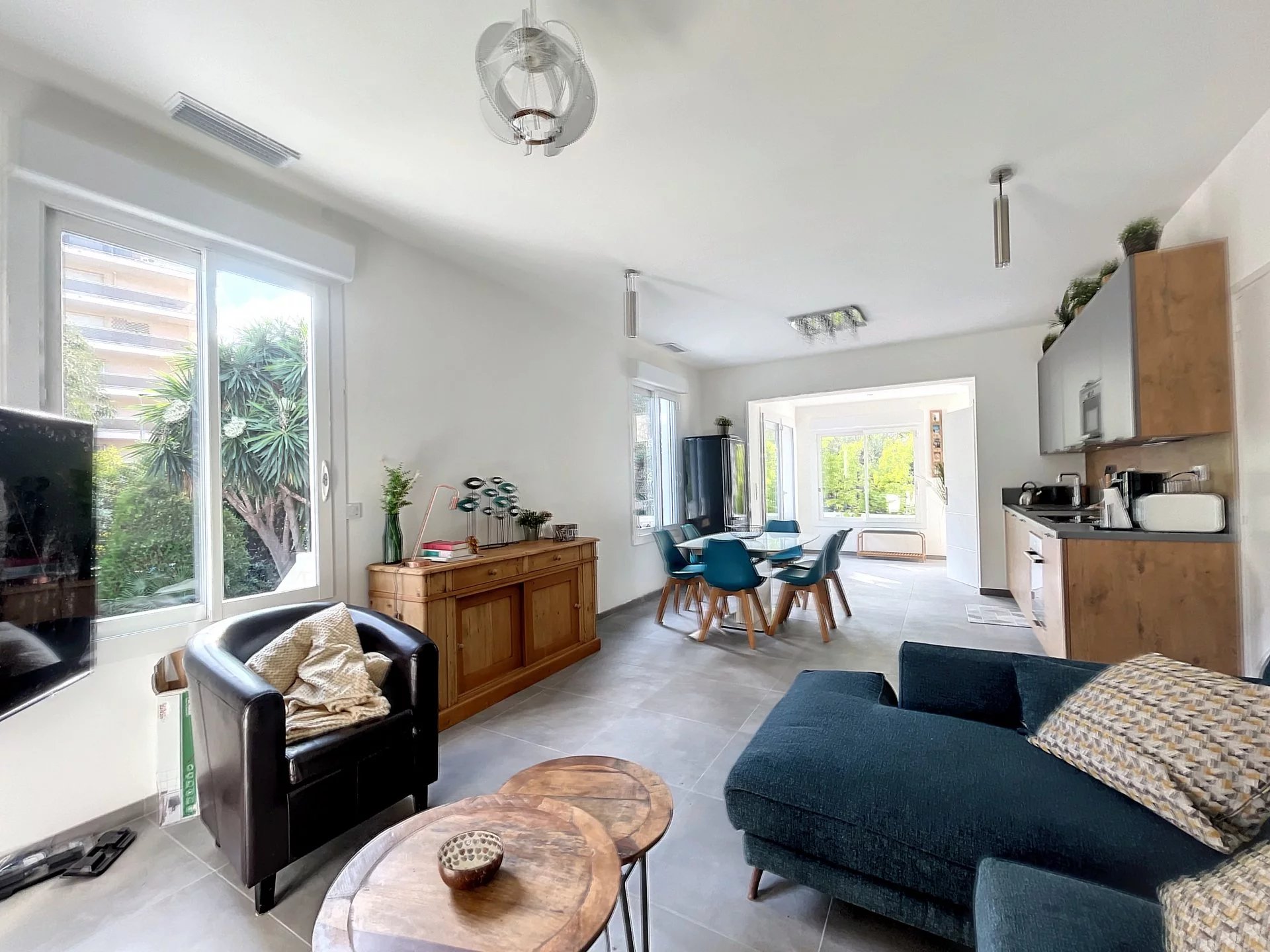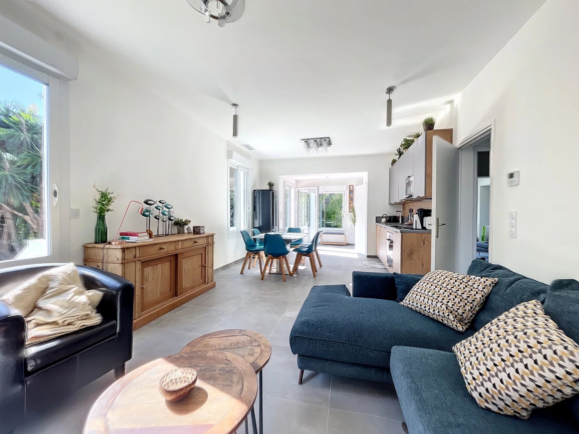 La villa de style Juanaise sur 2 niveaux est une magnifique maison de vacances qui offre un mélange parfait entre le charme traditionnel et le confort moderne. Située dans un quartier calme et paisible, elle est entourée d'un grand jardin verdoyant, arbres fruitiers avec plusieurs terrasses coin barbecue douche extérieure.
