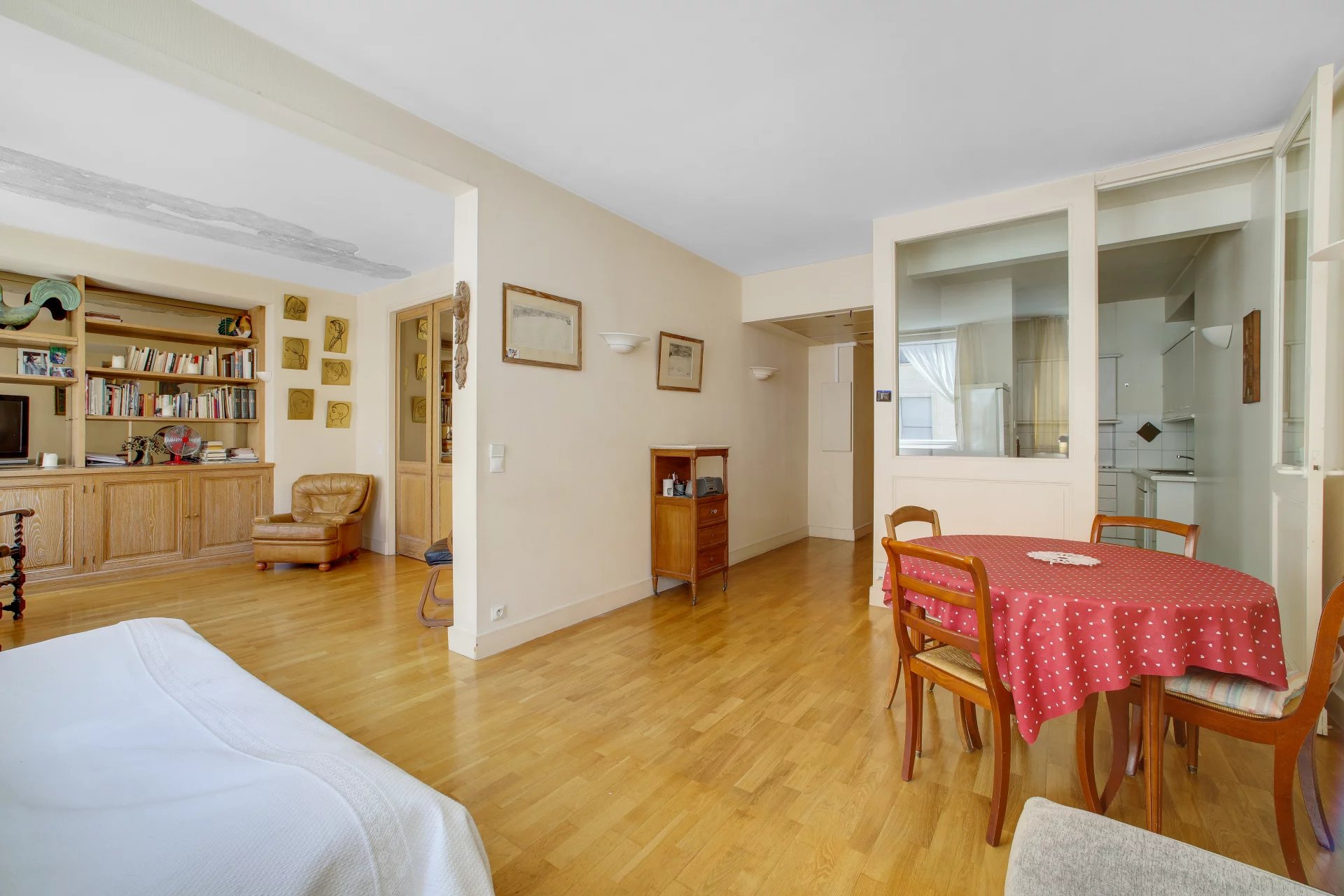 Au 3ème étage AVEC ASCENSEUR se révèle un APPARTEMENT de 2/3 PIÈCES résultant de la réunion de deux studios. Il comprend : une entrée, un séjour, une chambre, une cuisine, une salle de bains avec WC, un WC séparé et rangements. Lumineux (exposition sud) et calme. Chauffage collectif urbain inclus dans les charges. Rue paisible située à proximité de lieux emblématiques tels le Jardin du Palais Royal, le Musée du Louvre ou la Place des Victoires. Isolation énergétique du bâtiment en cours, votée. DPE C. Possibilité d’exercer une profession libérale.Possibilité de recréer deux studios. Idéal investissement locatif ou pied à terre.