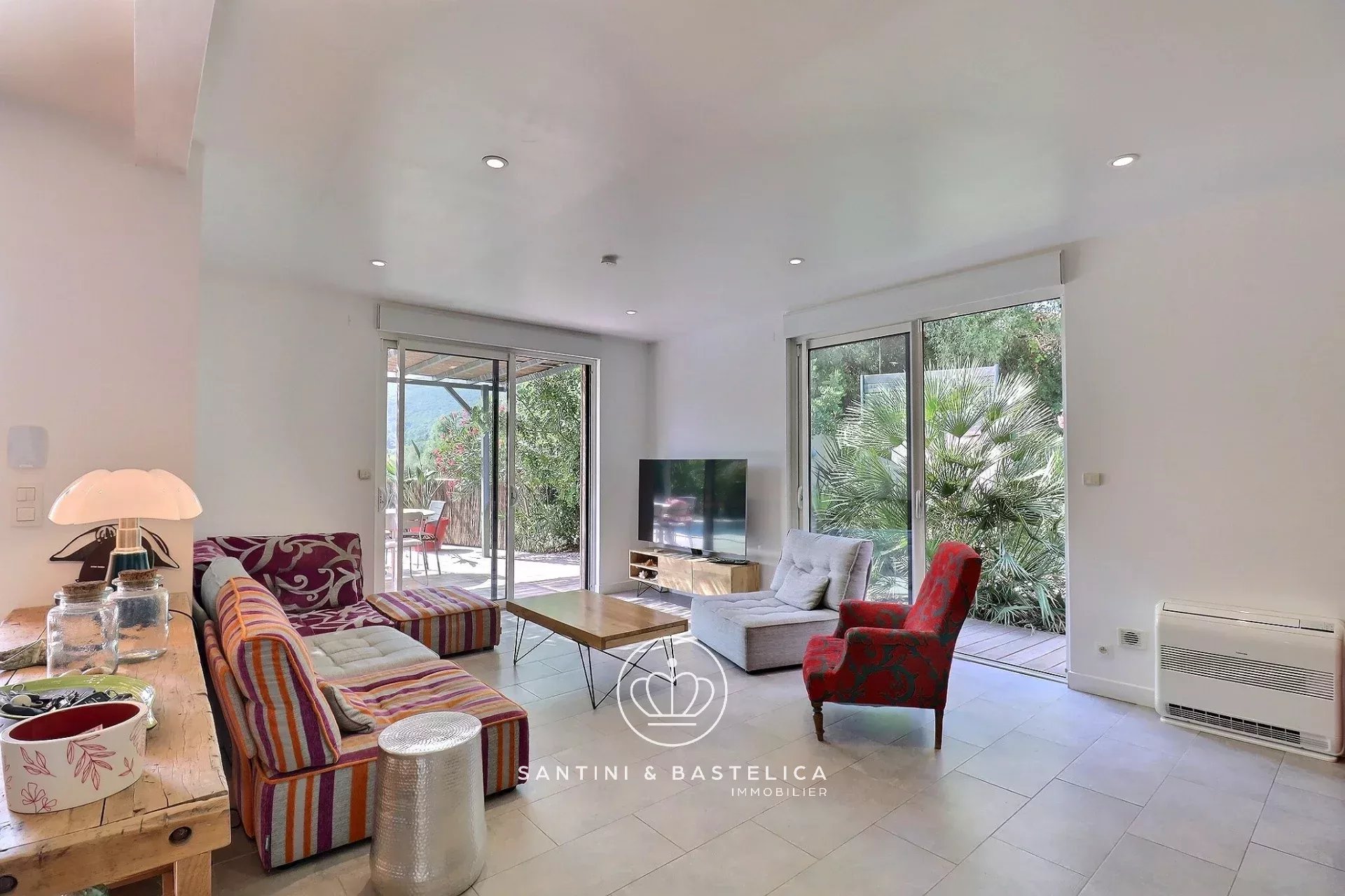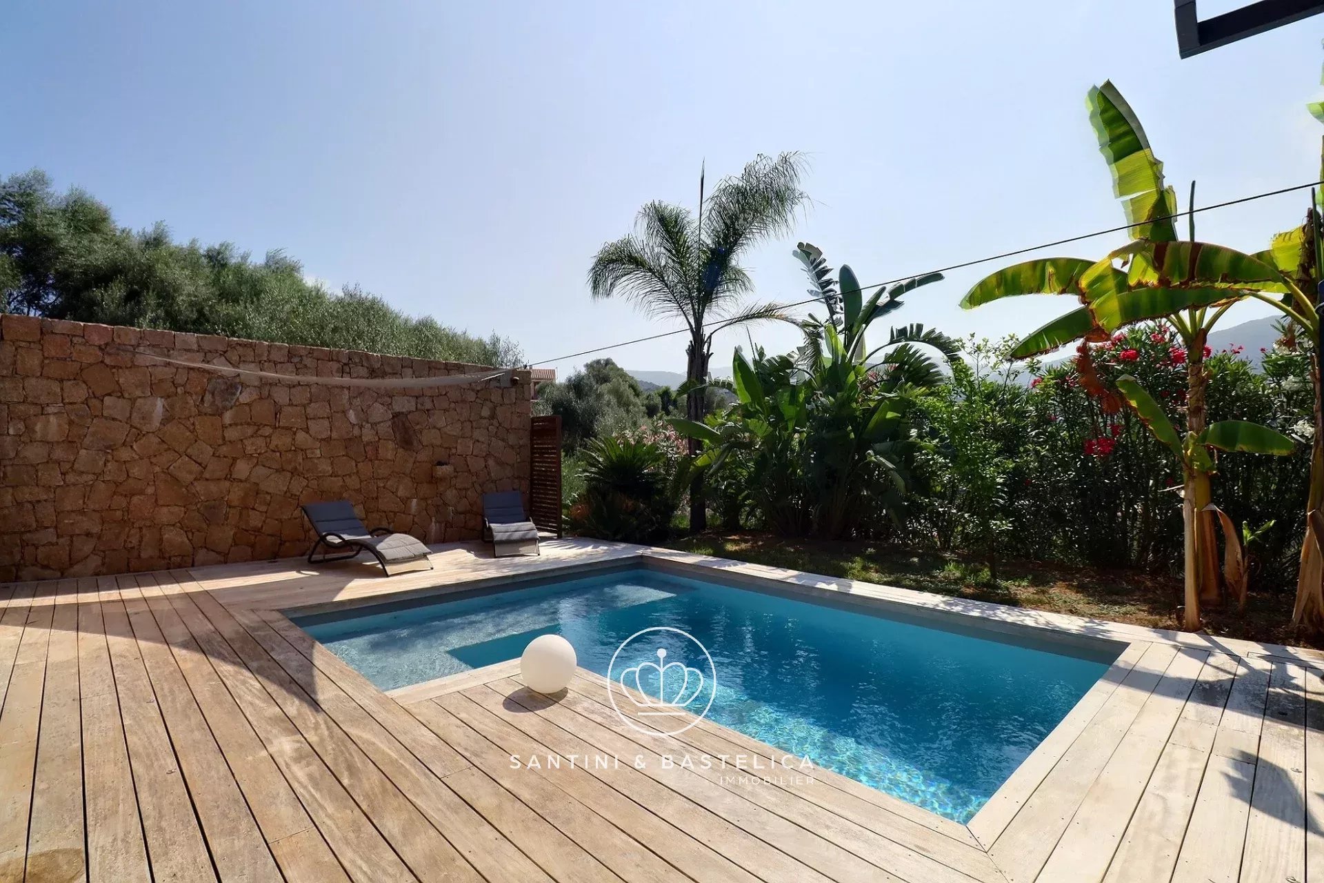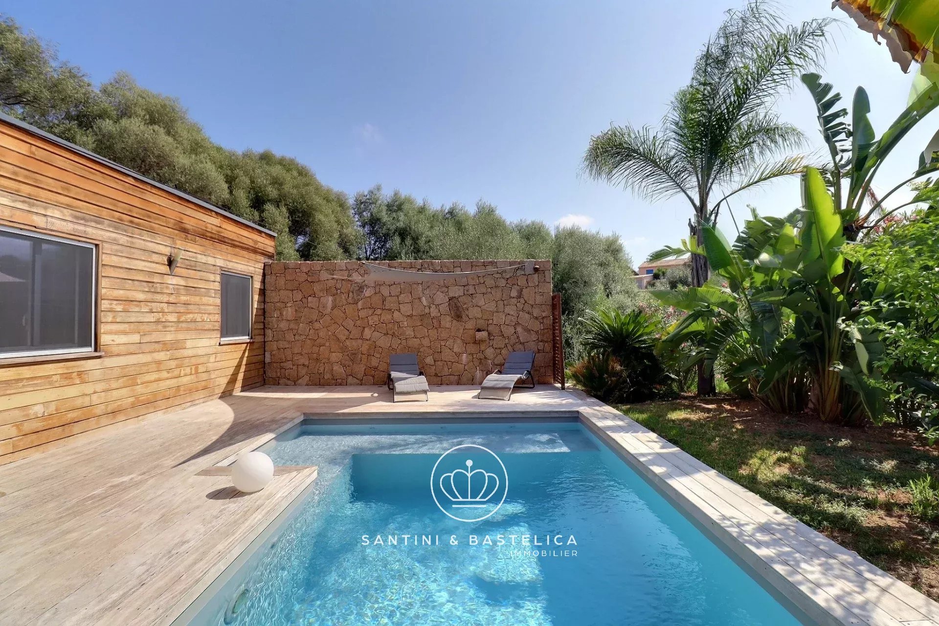 C'est sur la commune d'Albitreccia à deux pas de la plage d'Agosta que l'agence Santini & Bastelica Immobilier vous présente cette belle maison à ossature bois 4 pièces d'environ 104m² avec piscine. Elle se compose d'une entrée, un séjour avec coin cuisine, une buanderie avec accès extérieur, un wc indépendant, trois chambres dont une avec salle d'eau et une salle d'eau. Une maison qui évoque un appel à la détente, piscine avec plage en bois exotique, coin repas extérieur, jacuzzi et sauna ! Un petit garage et un cabanon complète ce lot. À découvrir avec Julien BASTELICA au 06.22.44.29.38 / jb@santinibastelica.immo