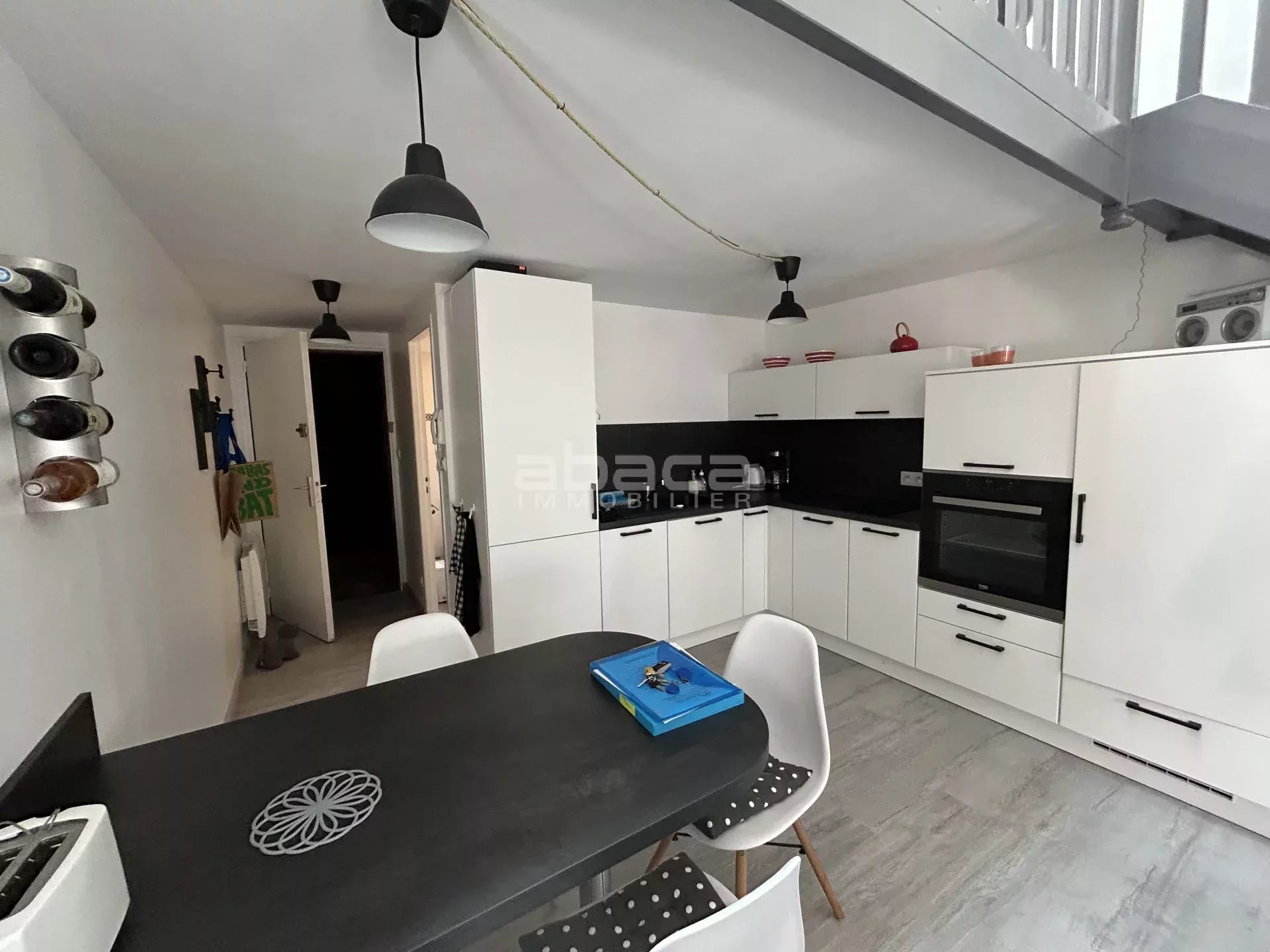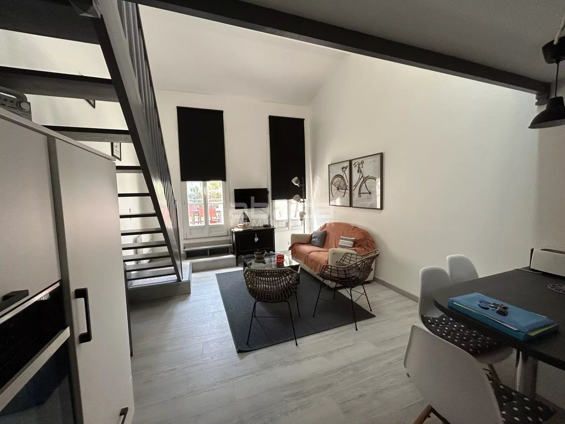 Situé au 1er étage d'une résidence sécurisée un beau duplex entièrement rénové avec terrasse, composé d'une entrée, un salle d'eau avec wc, un séjour avec cuisine aménagée et équipée, une chambre en mezzanine avec une deuxième coin couchage. Appartement situé au calme, très lumineux avec sa terrasse exposée ouest. Une cave en sous-sol pour y ranger les vélos. Possibilité d'acquérir un garage.