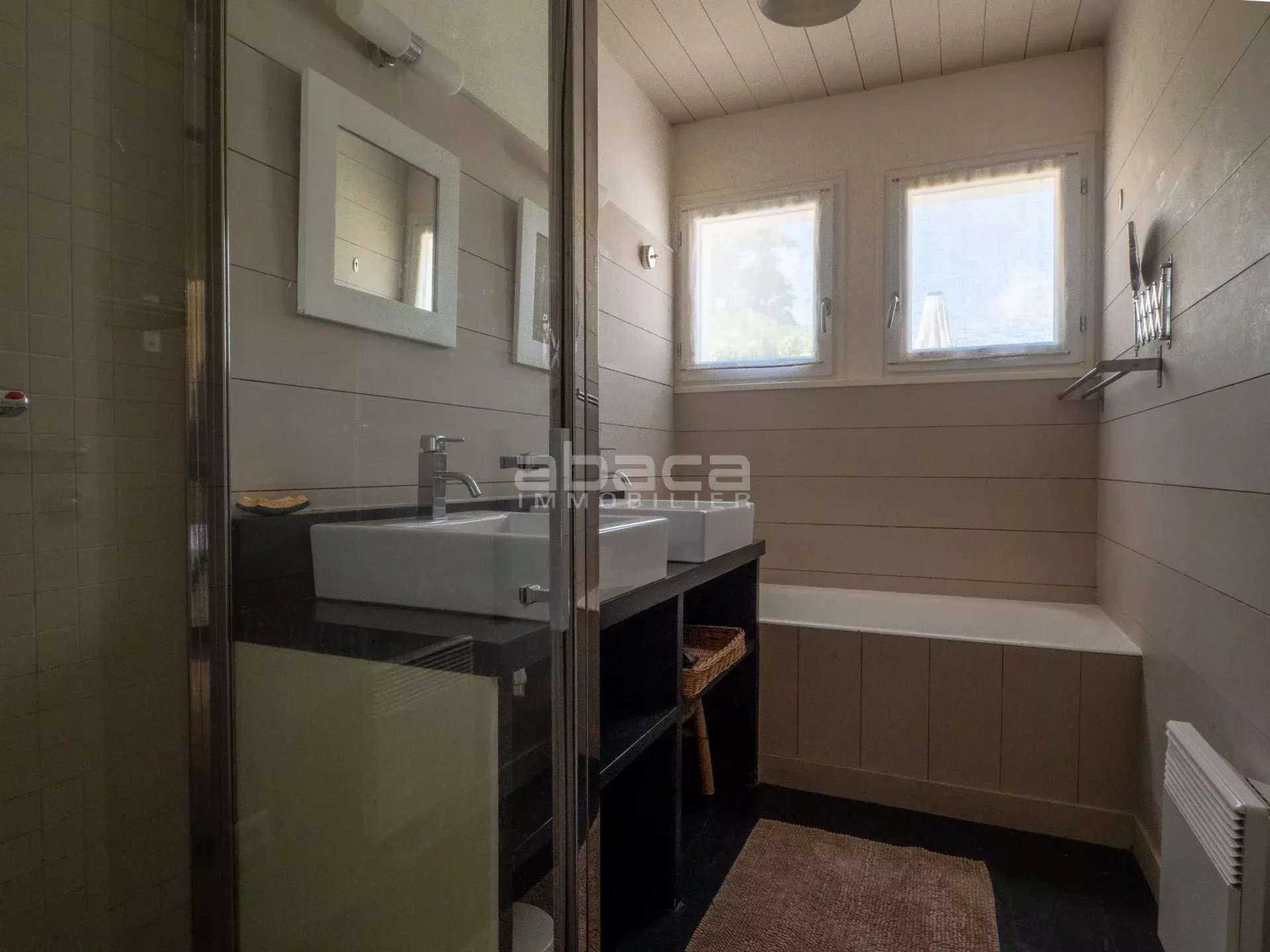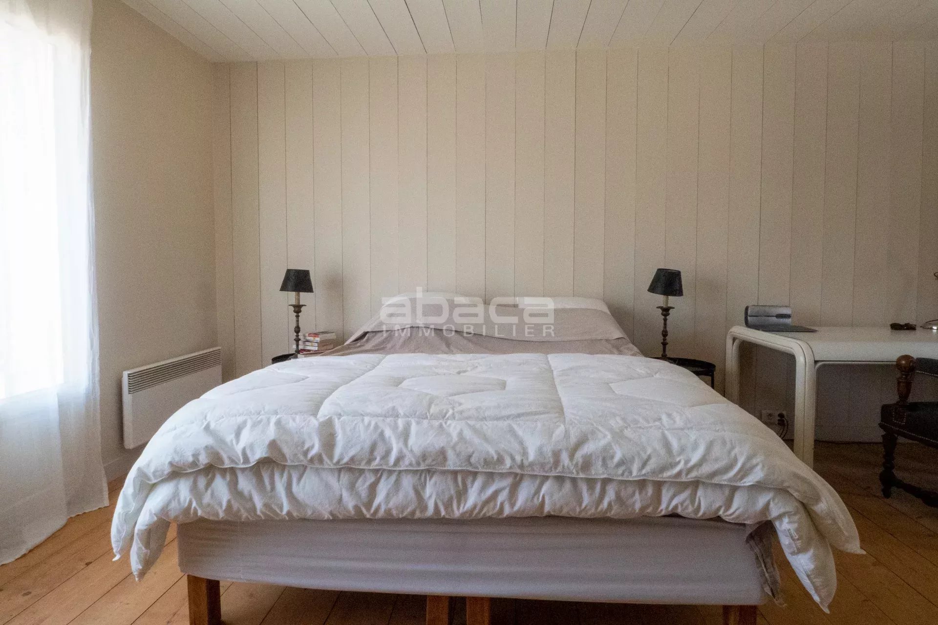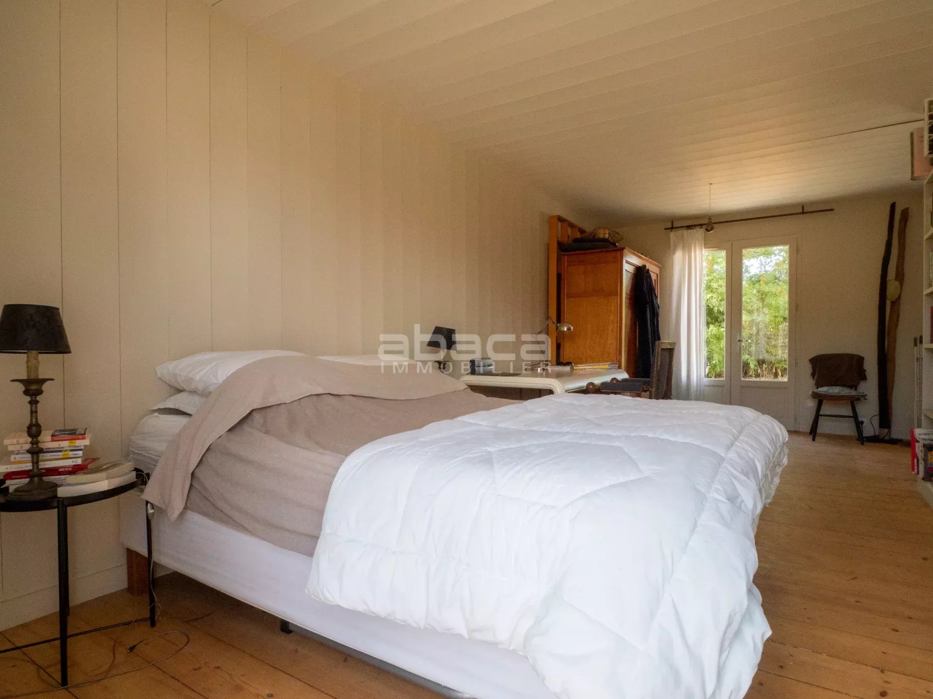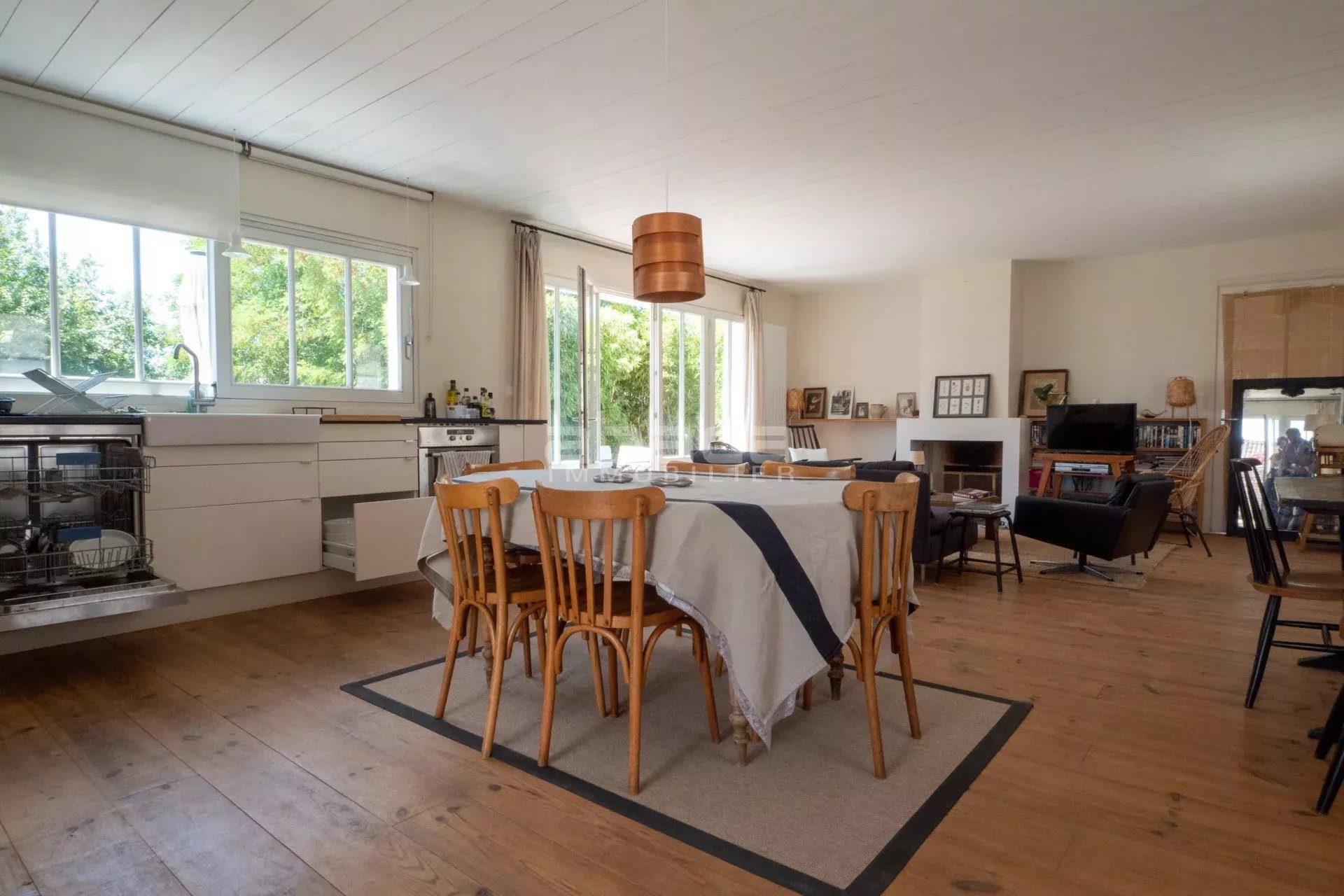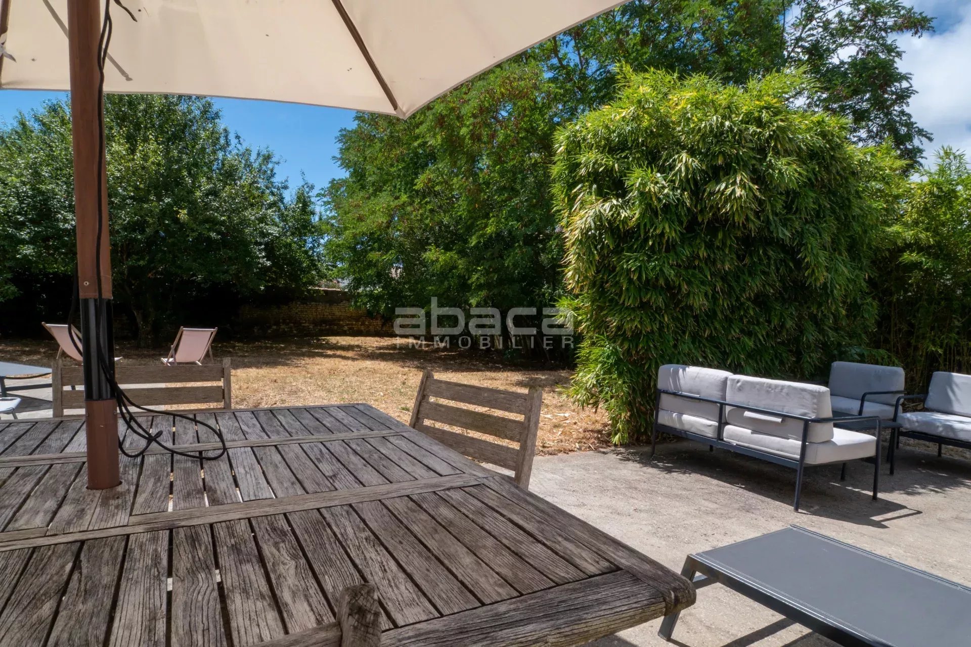 Dans un environnement privilégié à quelques pas du centre. Jolie maison de plain pied lumineuse comprenant : entrée, séjour avec cuisine équipée et aménagée ouverte, dégagement vers un couloir desservant 2 chambres avec salle d'eau et toilettes, grande chambre principale avec salle de bains et toilettes. Le tout ouvre sur une terrasse et jardin avec garage traversant. C'est un bien rare à découvrir avec l'Agence Abaca des Portes en Ré.