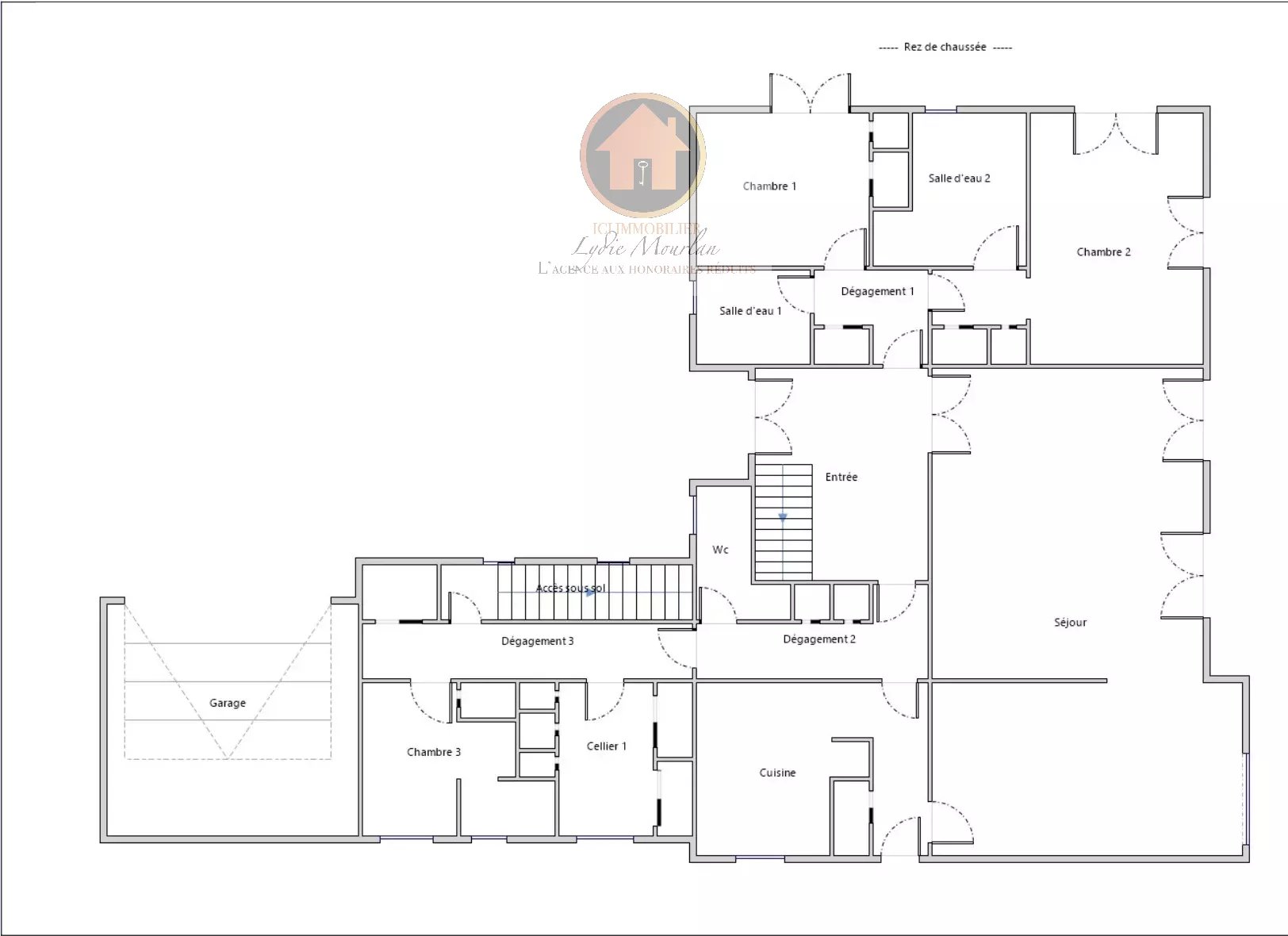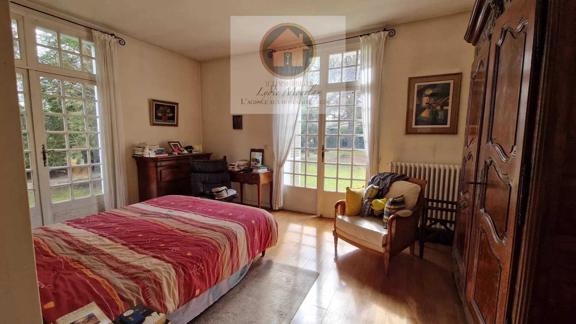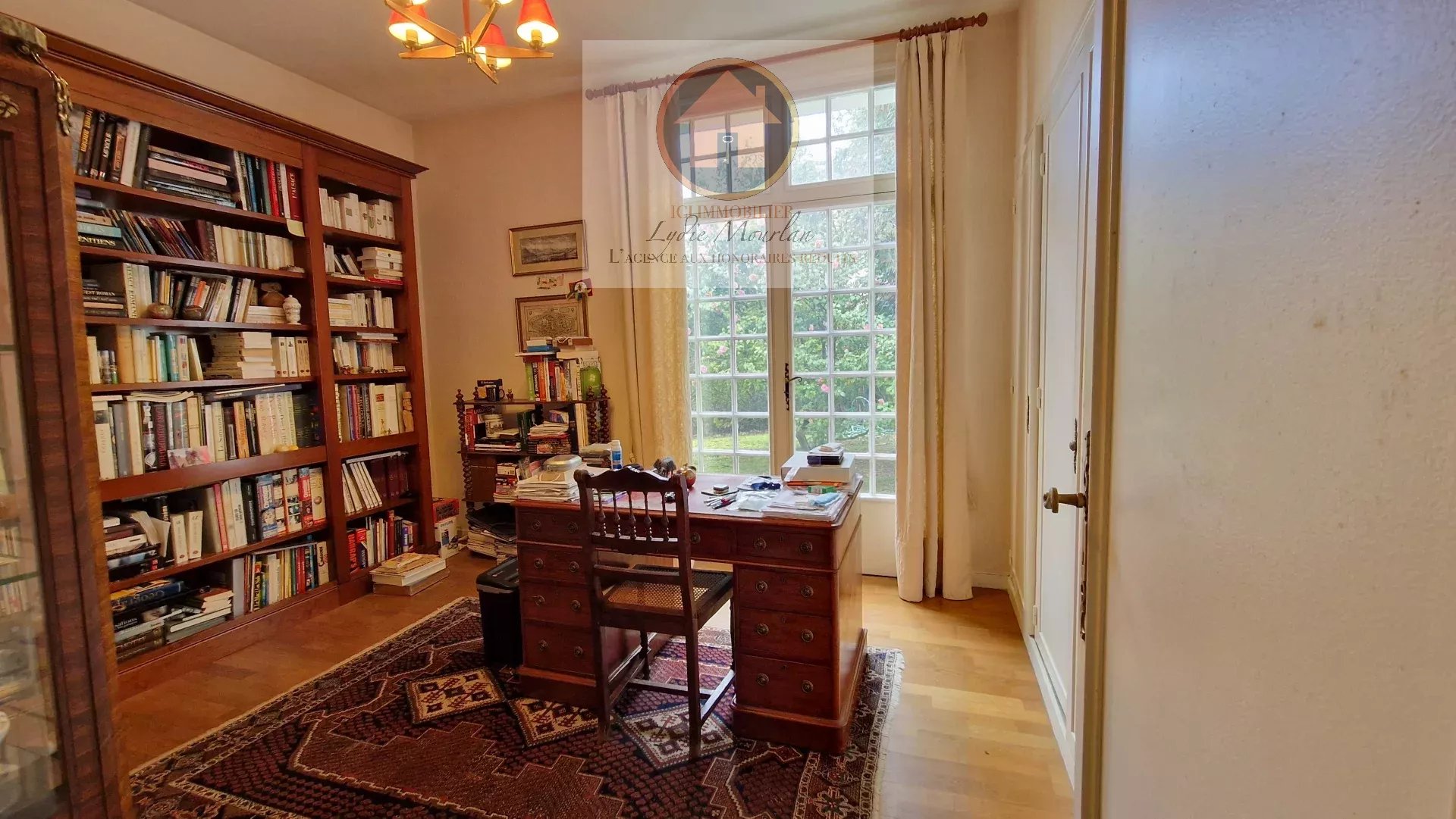 Séjour de +60 m2 exposé Sud, ouvert sur terrasse et jardin arboré. Cheminée.