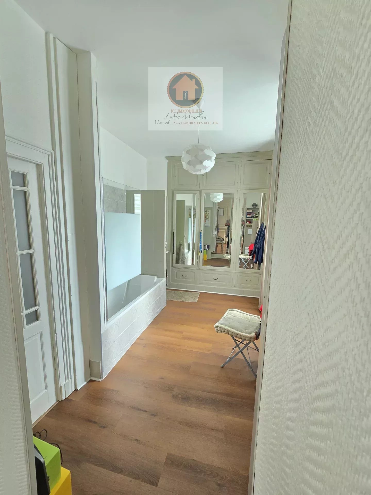 Située sur un parc arboré et piscinable de 1360 m2, cette demeure dispose également d'un garage double et d'une borne de recharge pour véhicules électriques.