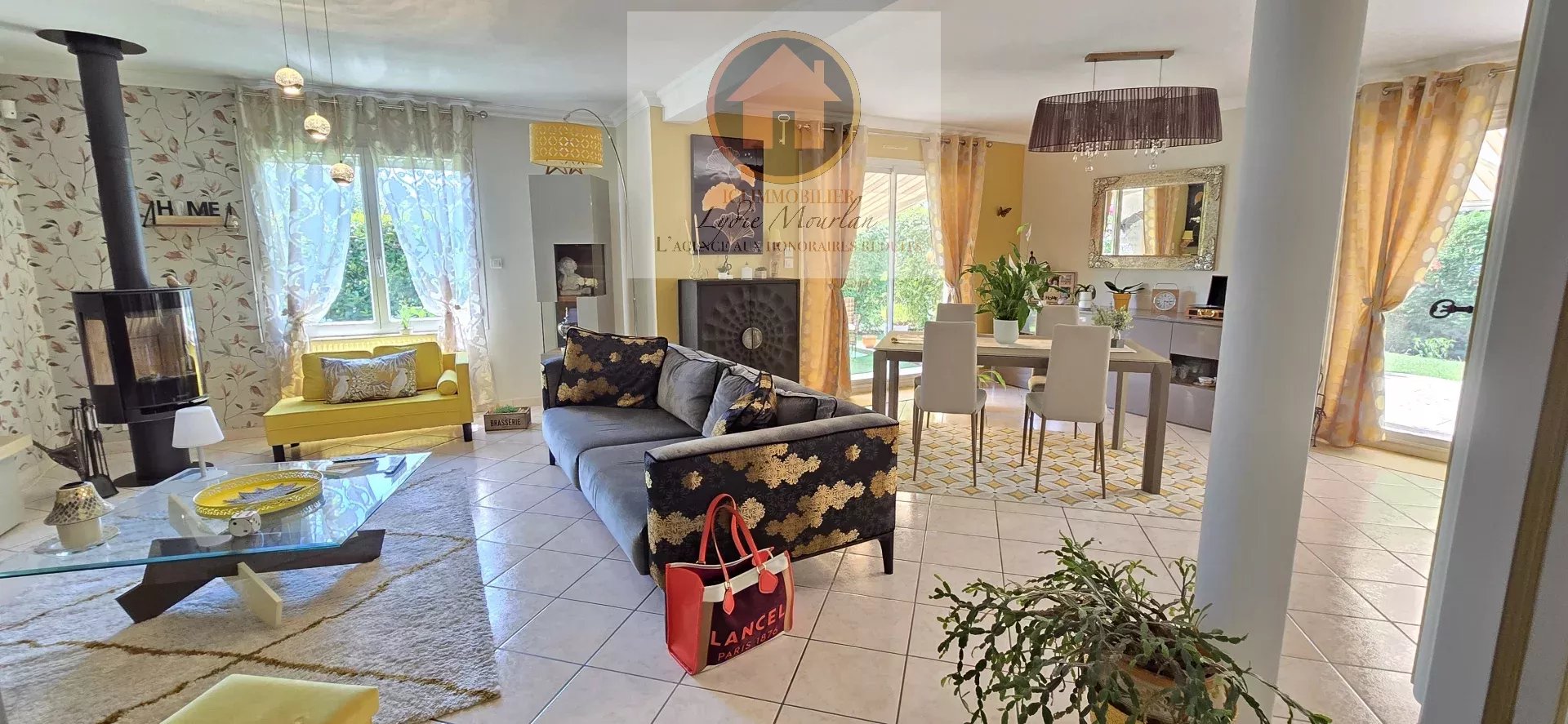 -Séjour traversant de 40 m² avec poêle, ouvert sur deux terrasses Sud et Ouest.