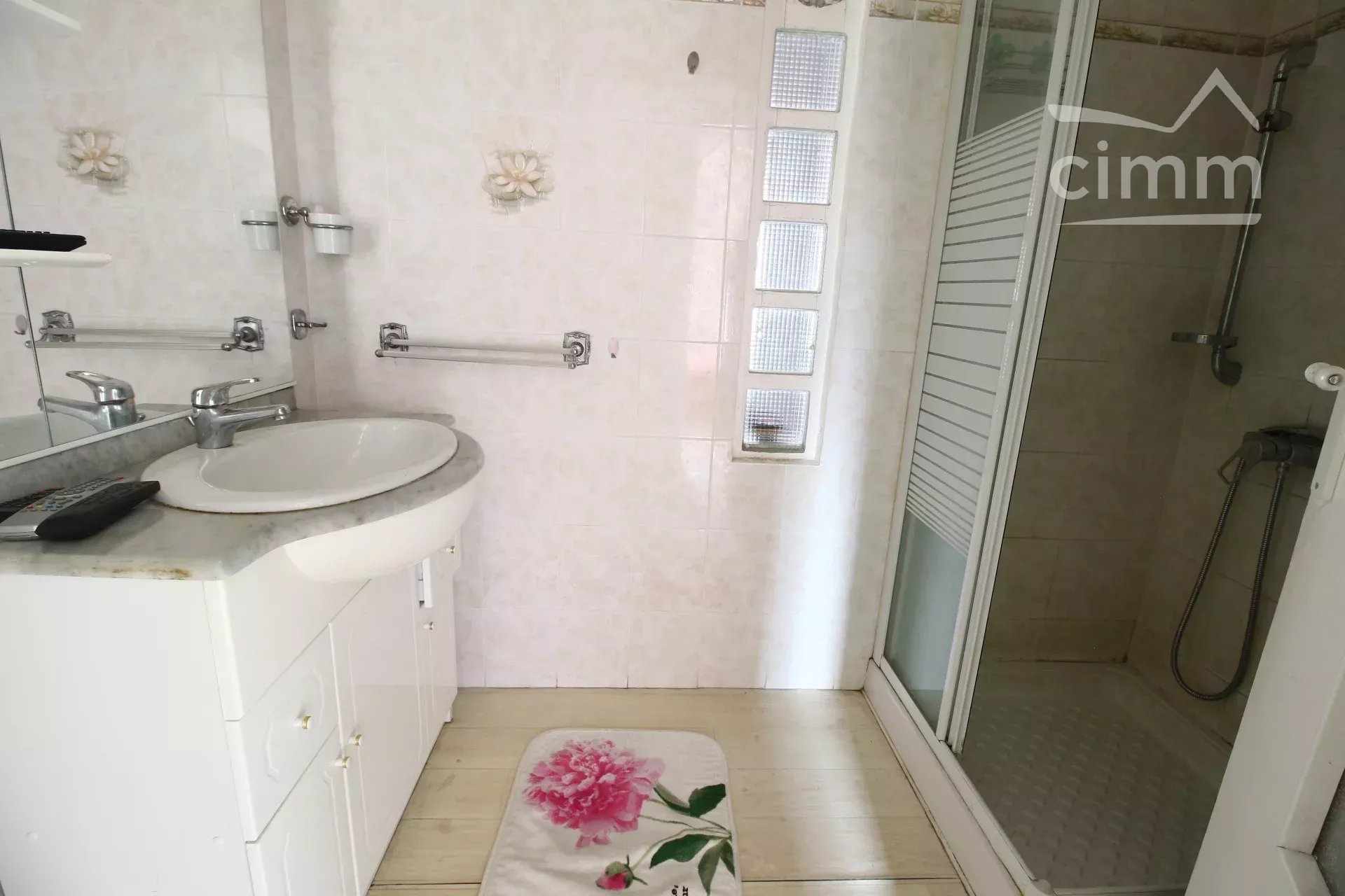 Au rez de chaussée se trouvent un grand couloir donnant sur un salon de 24m², une cuisine, deux chambres, une salle d'eau et un wc séparé.
