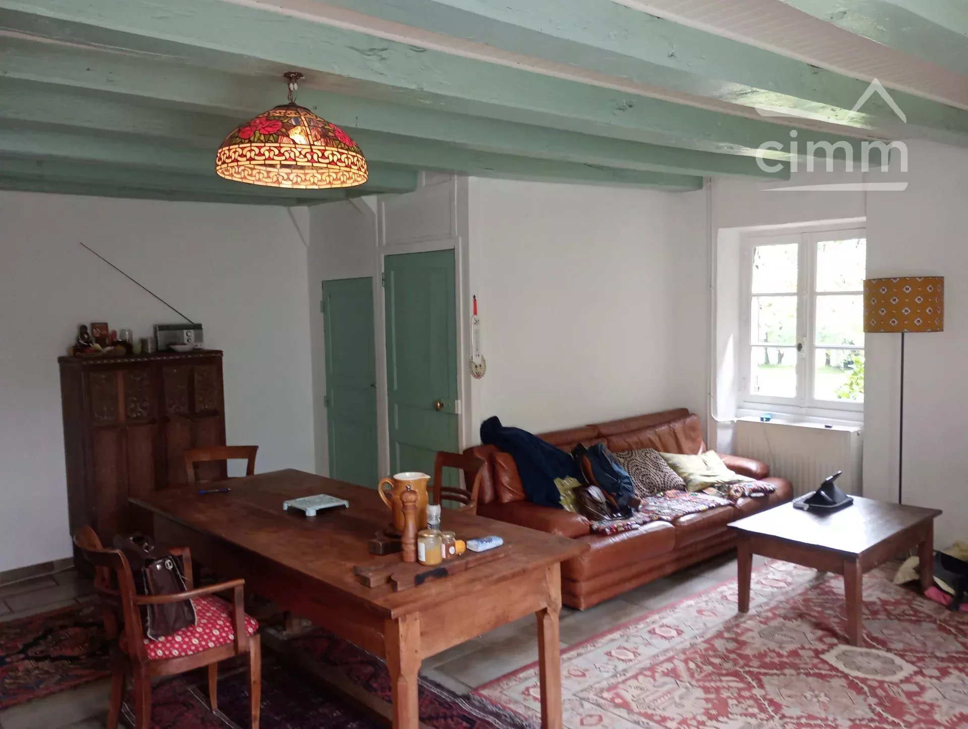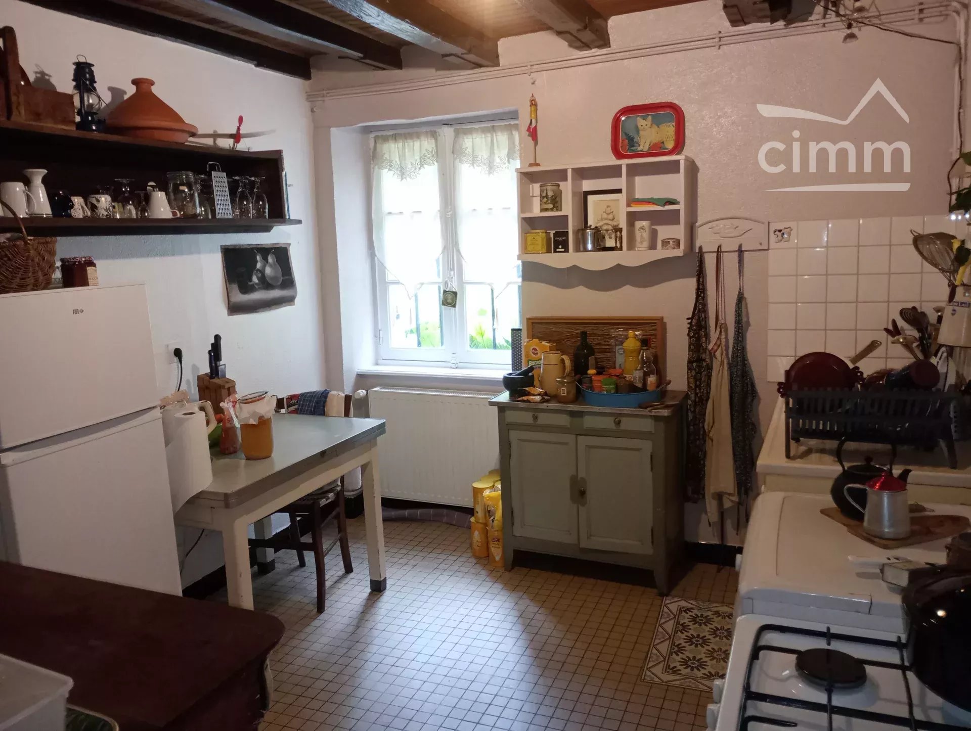 Maison d'habitation de 100 M² avec une grande pièce de vie, une cuisine, un cellier avec puit, deux chambres et cave, chauffage central et bois.