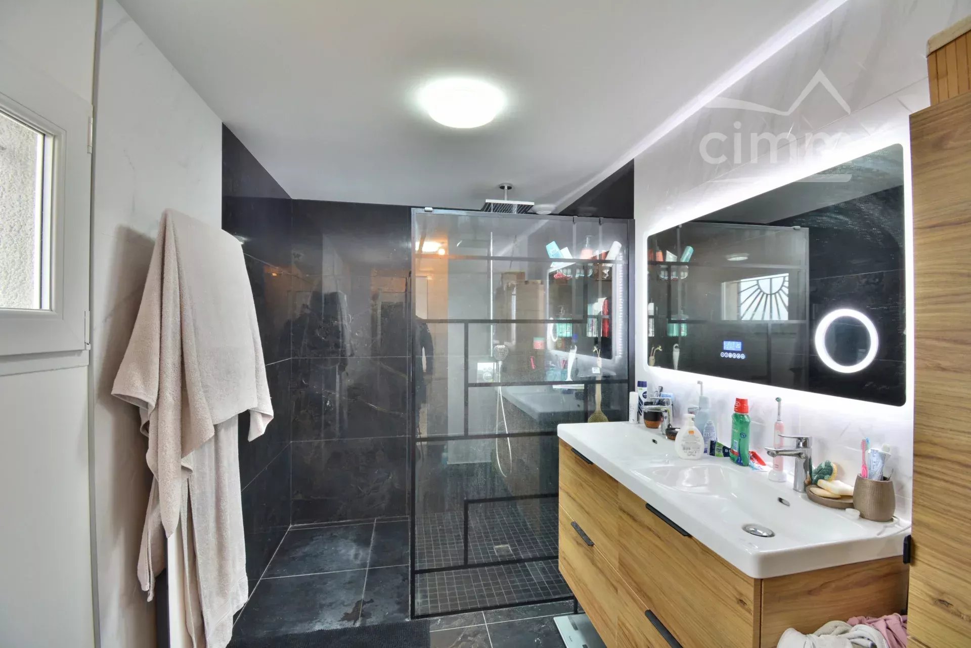 La villa comprend quatre chambres spacieuses, une salle de jeux, une cuisine d'été ainsi qu'une cuisine américaine ouverte sur un salon lumineux. Vous bénéficierez également d'un dressing, de trois salles de douche avec toilettes, de trois WC séparés, et d'un garage.