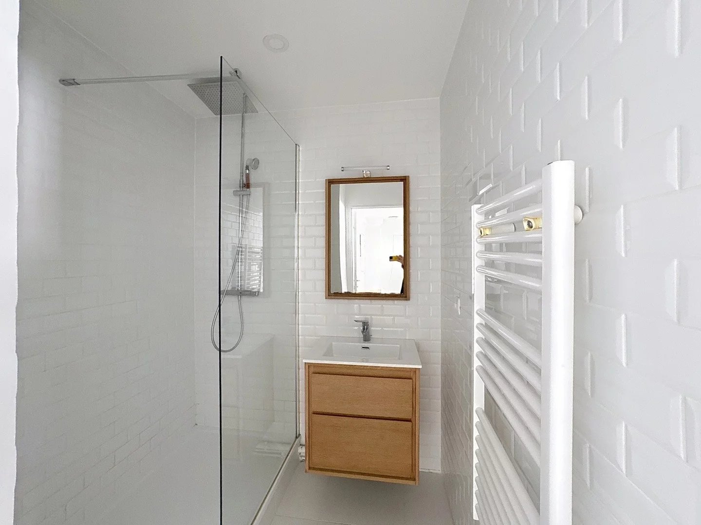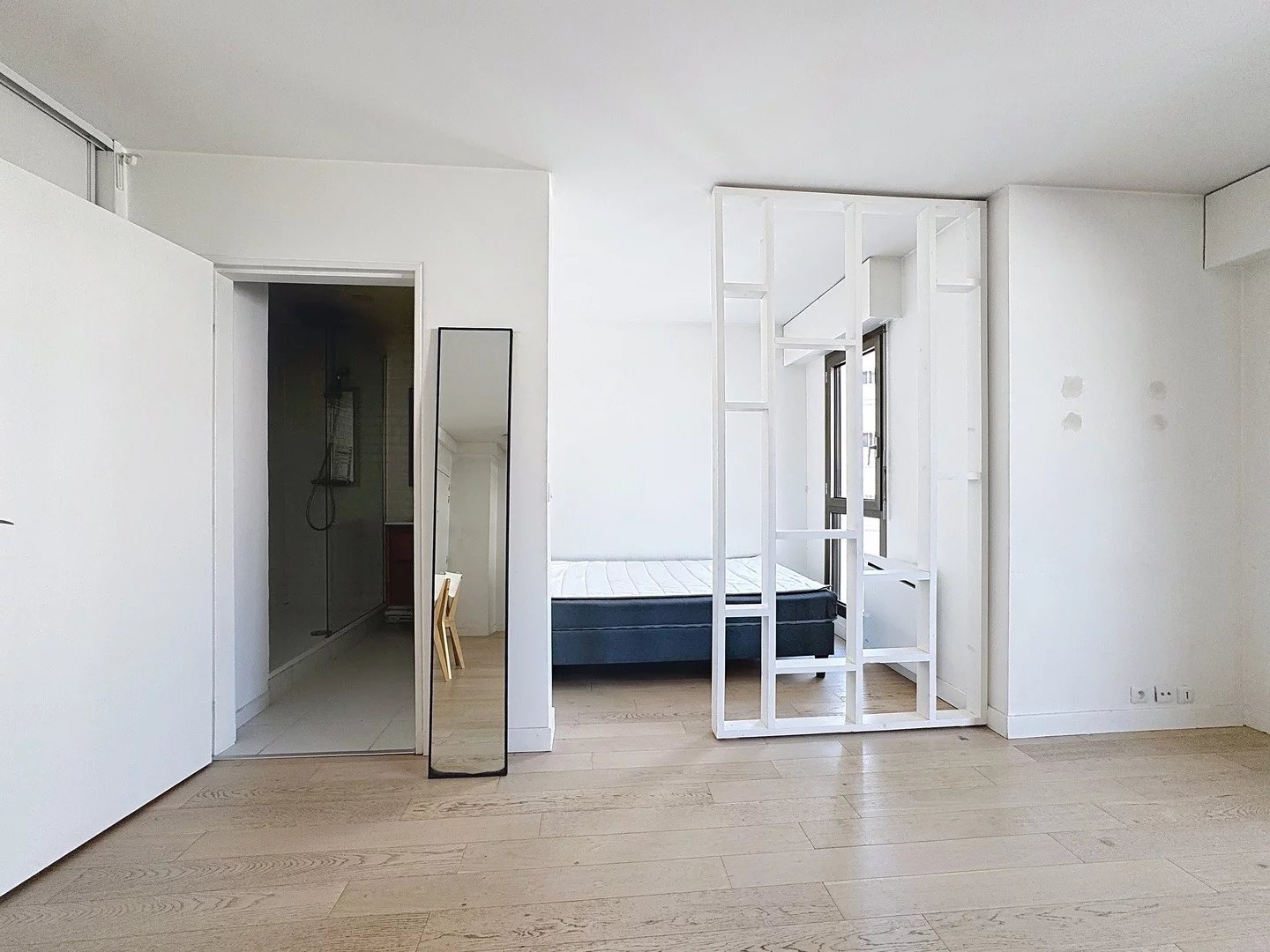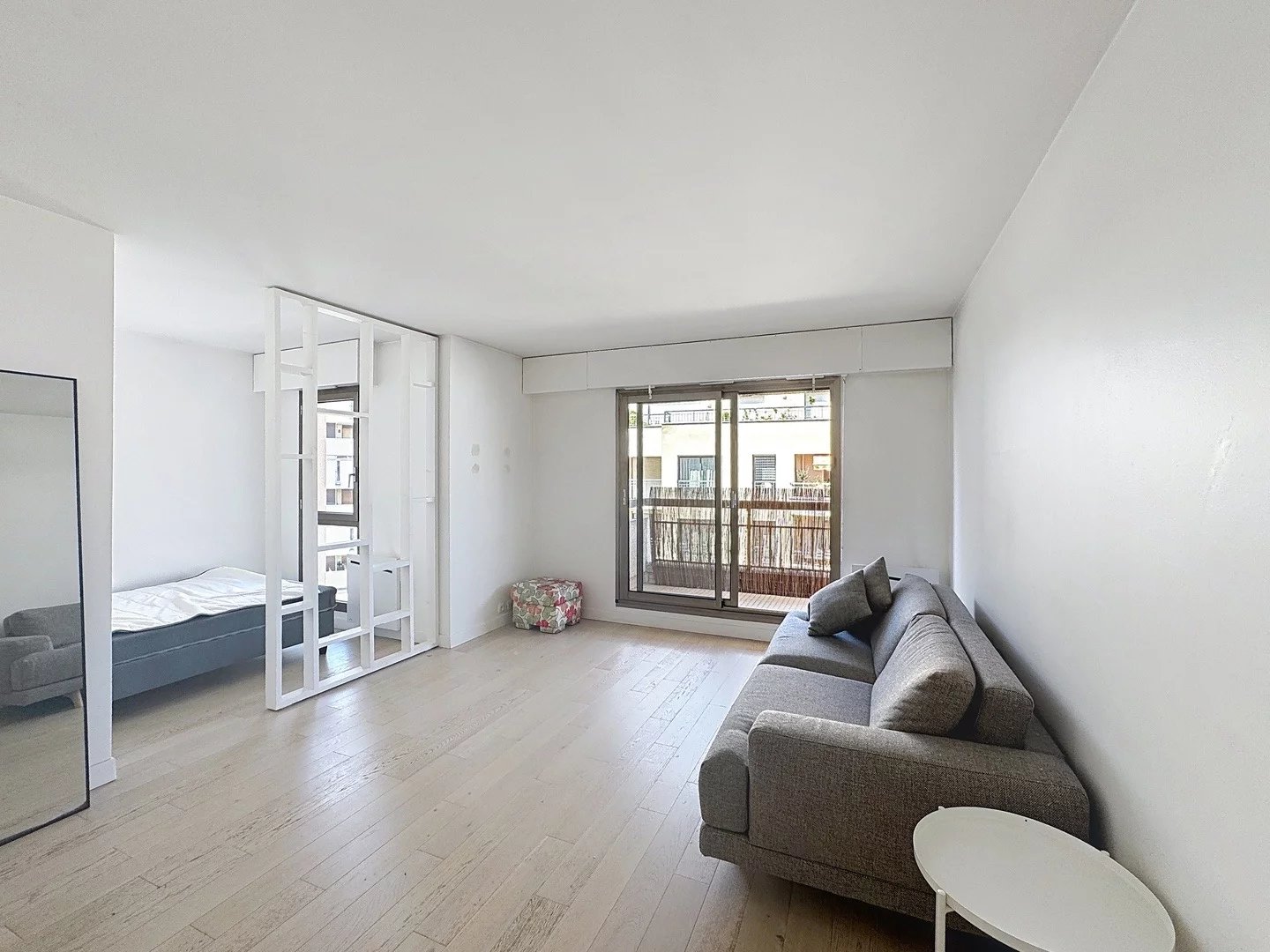 L'appartement se compose d'un grand salon ouvert sur la terrasse, d'une cuisine équipée et meublée, d'une salle de douche, d'une chambre et de toilettes séparées. Il bénéficie d'une exposition lumineuse et se trouve dans une rue calme. La copropriété est très bien entretenue.
