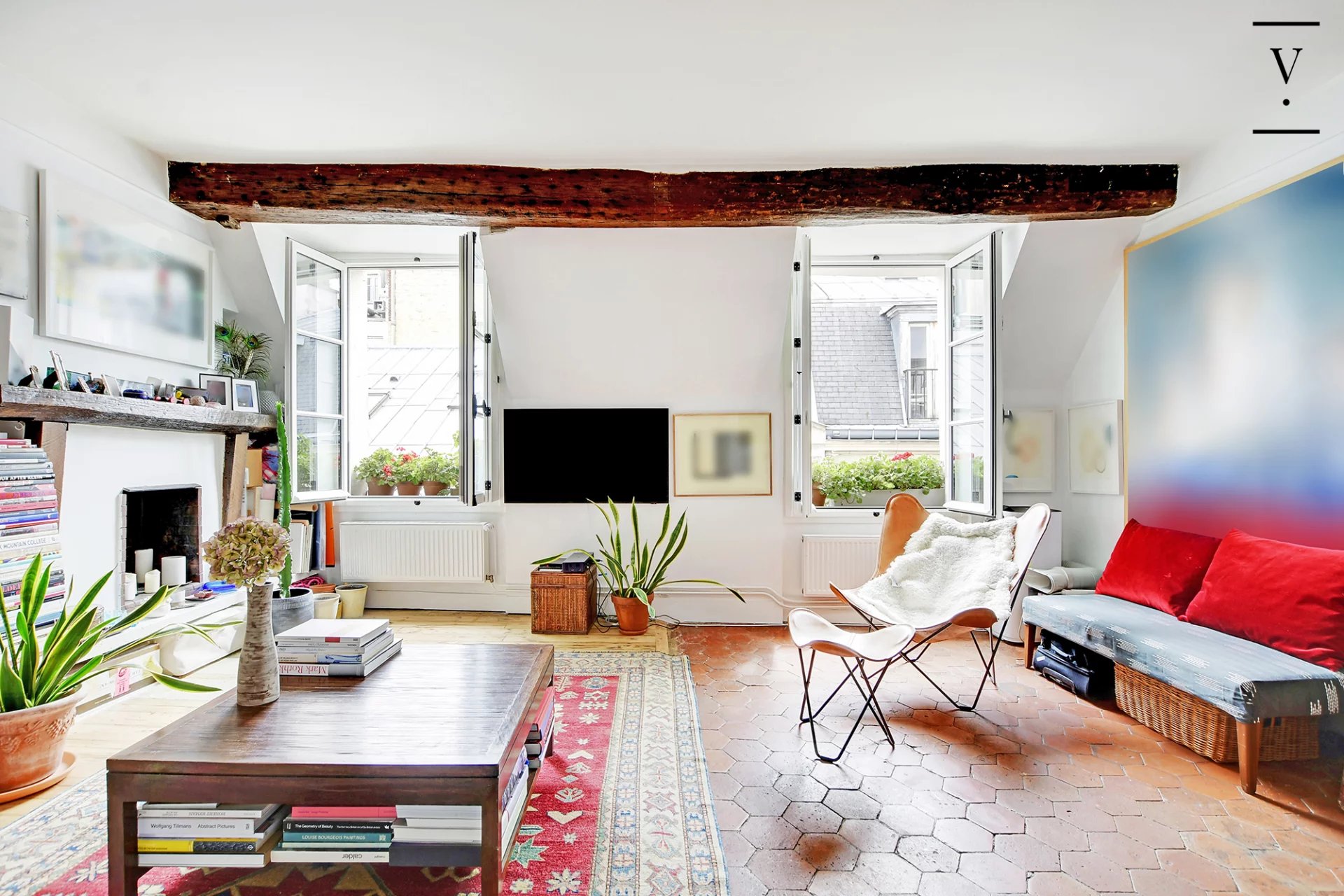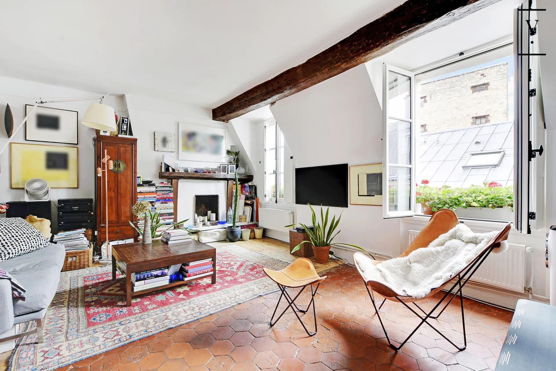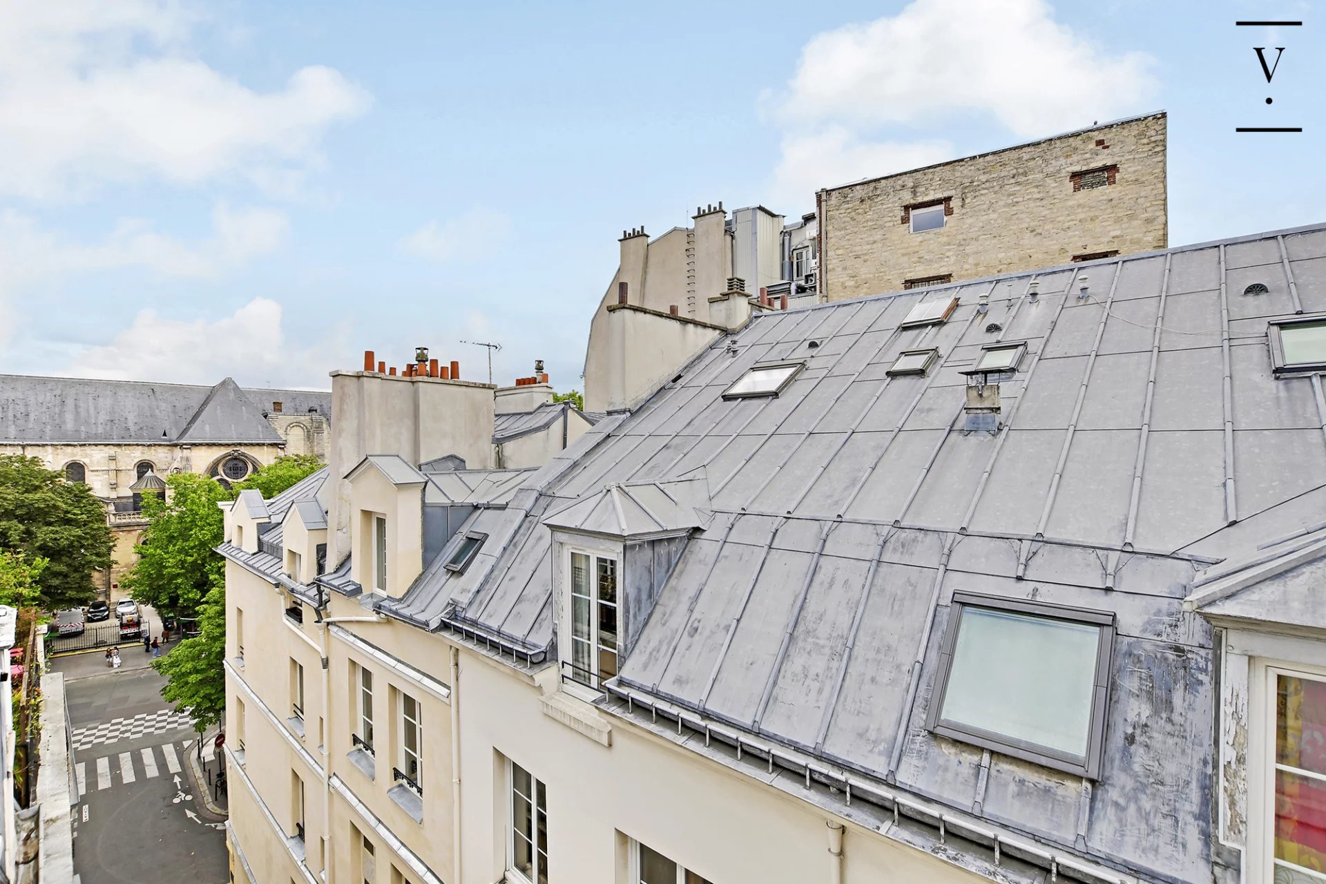 Entre le boulevard Saint-Germain et la rue du four, dans un immeuble ancien, charmant appartement de 2 pièces situé au 5ᵉ étage. Il se compose d’une entrée, d’un vaste séjour de 31 m² avec deux belles fenêtres offrant une vue sur les toits de Paris, parquet, tomettes, cheminée, cuisine séparée parfaitement équipée, chambre, salle d’eau avec toilettes. Appartement rénové en 2020. Possibilité d’aménager deux chambres en restructurant l’espace.
