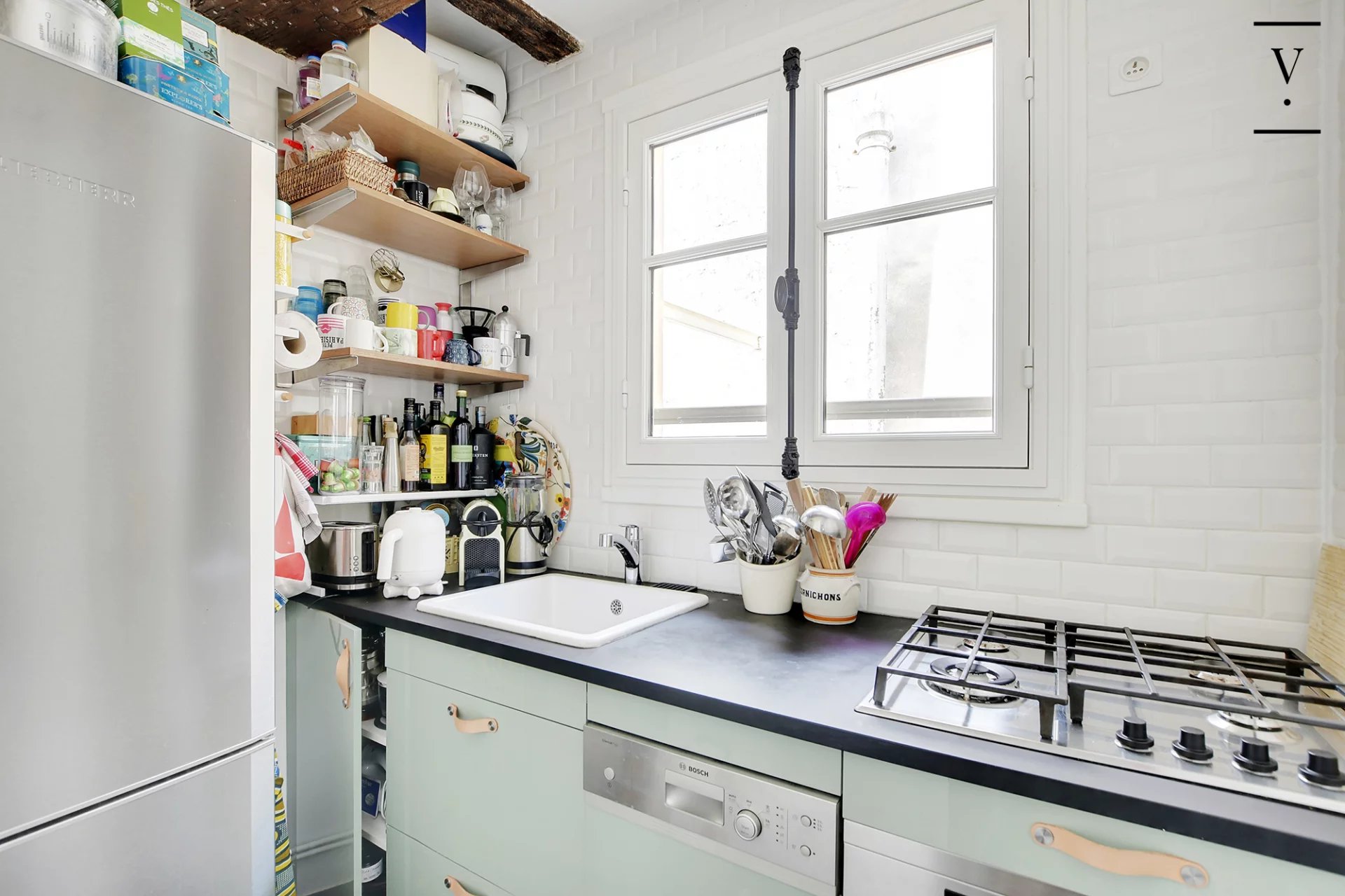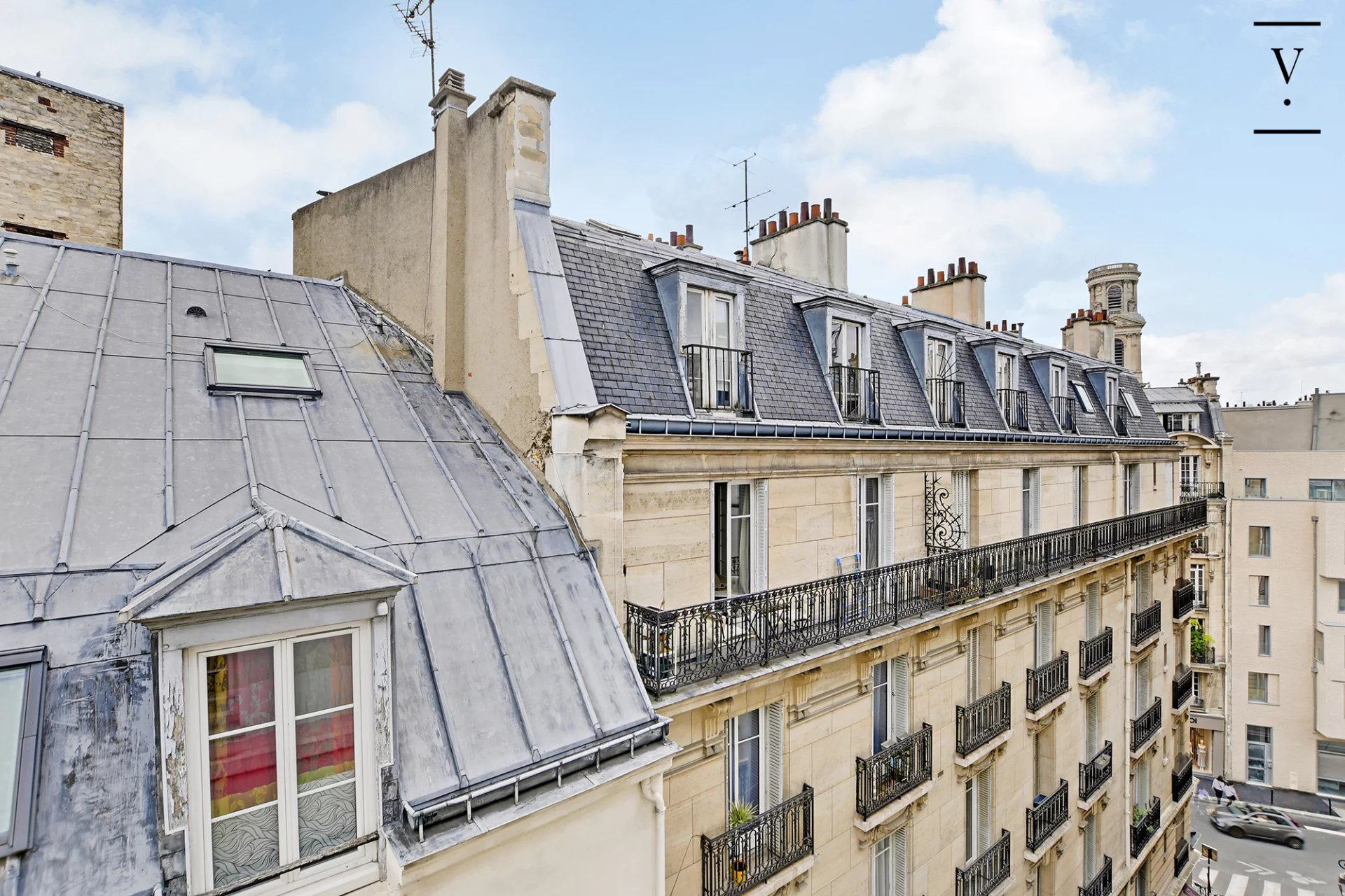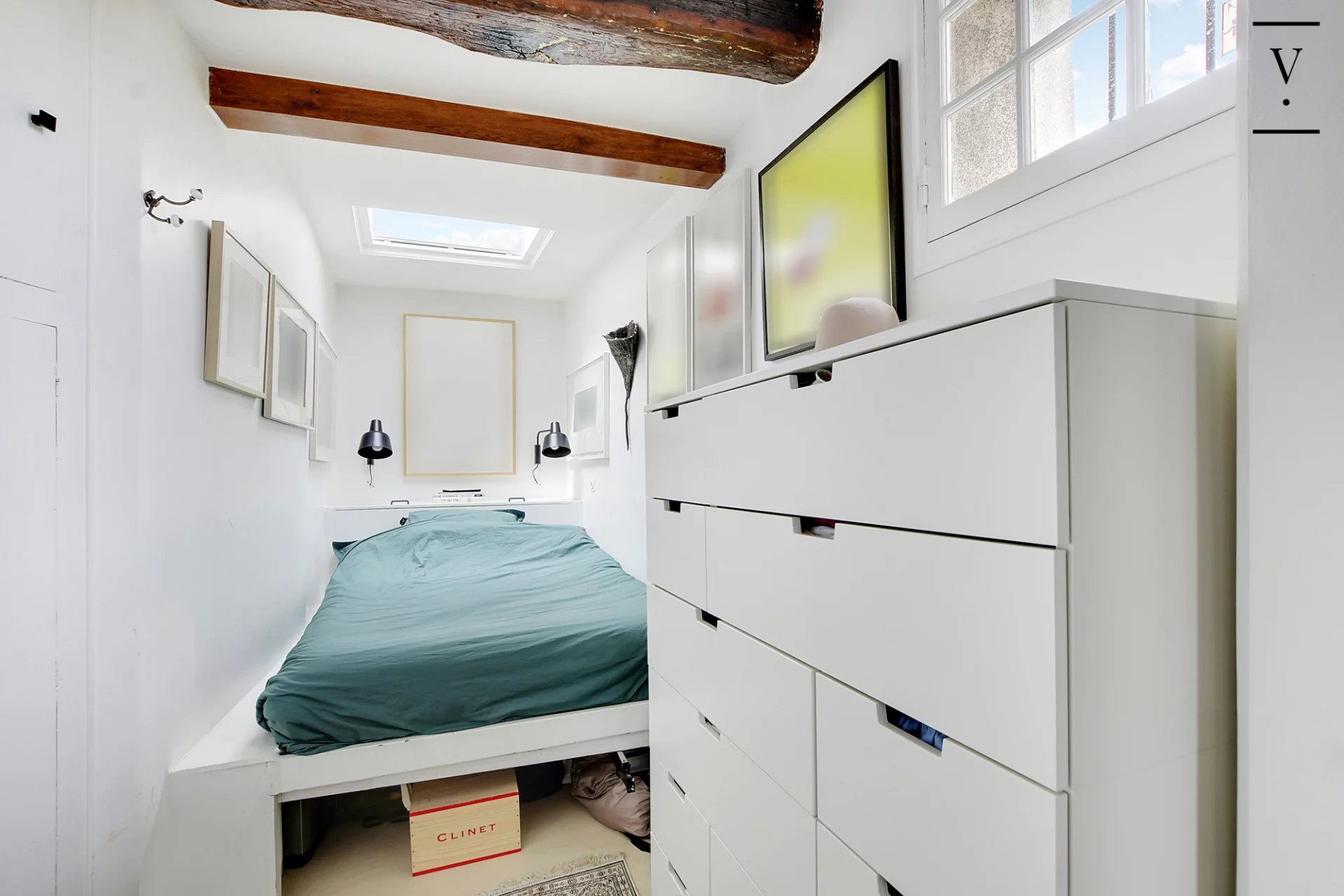 Entre le boulevard Saint-Germain et la rue du four, dans un immeuble ancien, charmant appartement de 2 pièces situé au 5ᵉ étage. Il se compose d’une entrée, d’un vaste séjour de 31 m² avec deux belles fenêtres offrant une vue sur les toits de Paris, parquet, tomettes, cheminée, cuisine séparée parfaitement équipée, chambre, salle d’eau avec toilettes. Appartement rénové en 2020. Possibilité d’aménager deux chambres en restructurant l’espace.