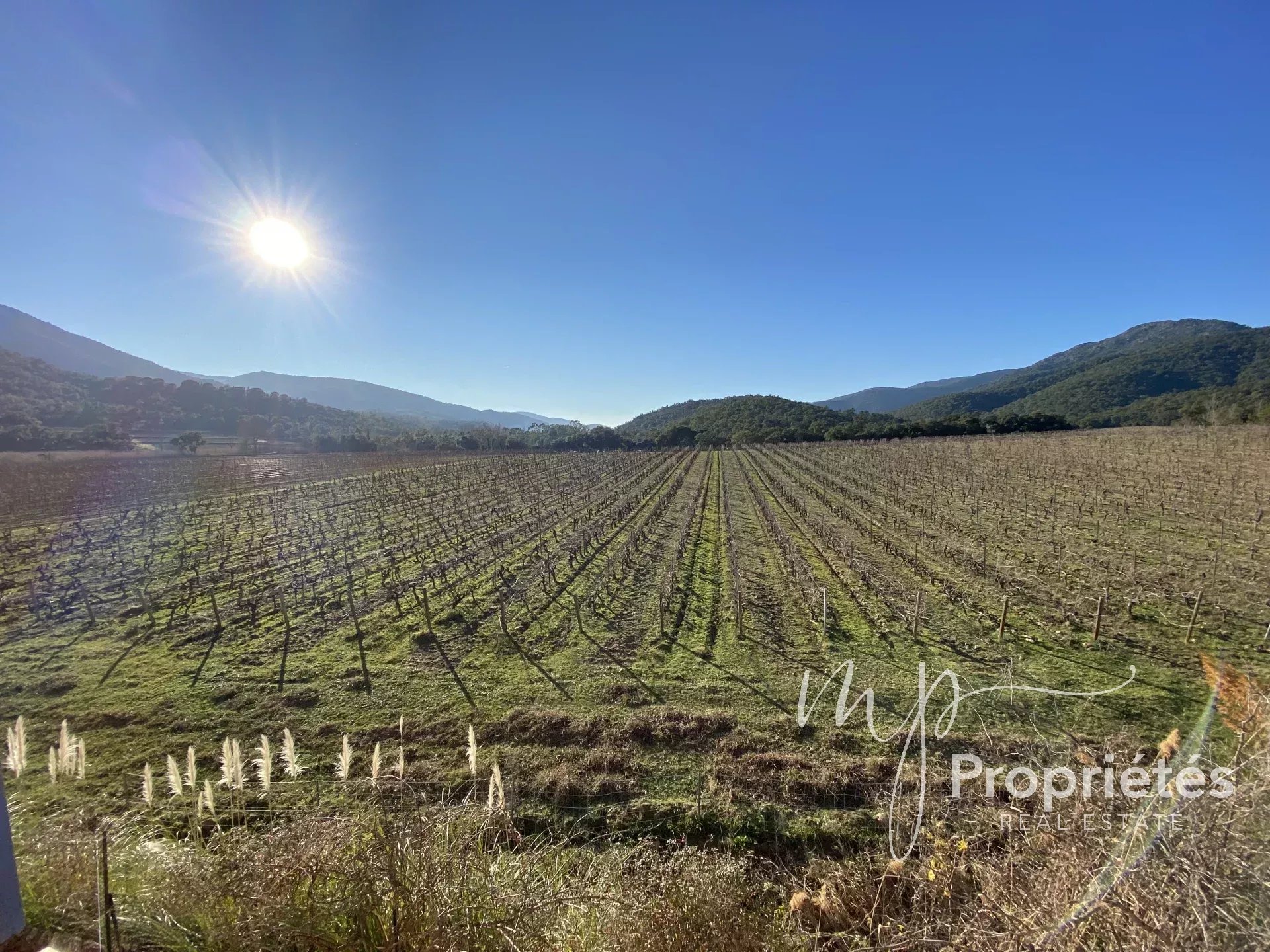 Une chambre avec terrasse tropézienne avec salle de bain et WC avec vue sur la campagne et vignes. (ou studio)