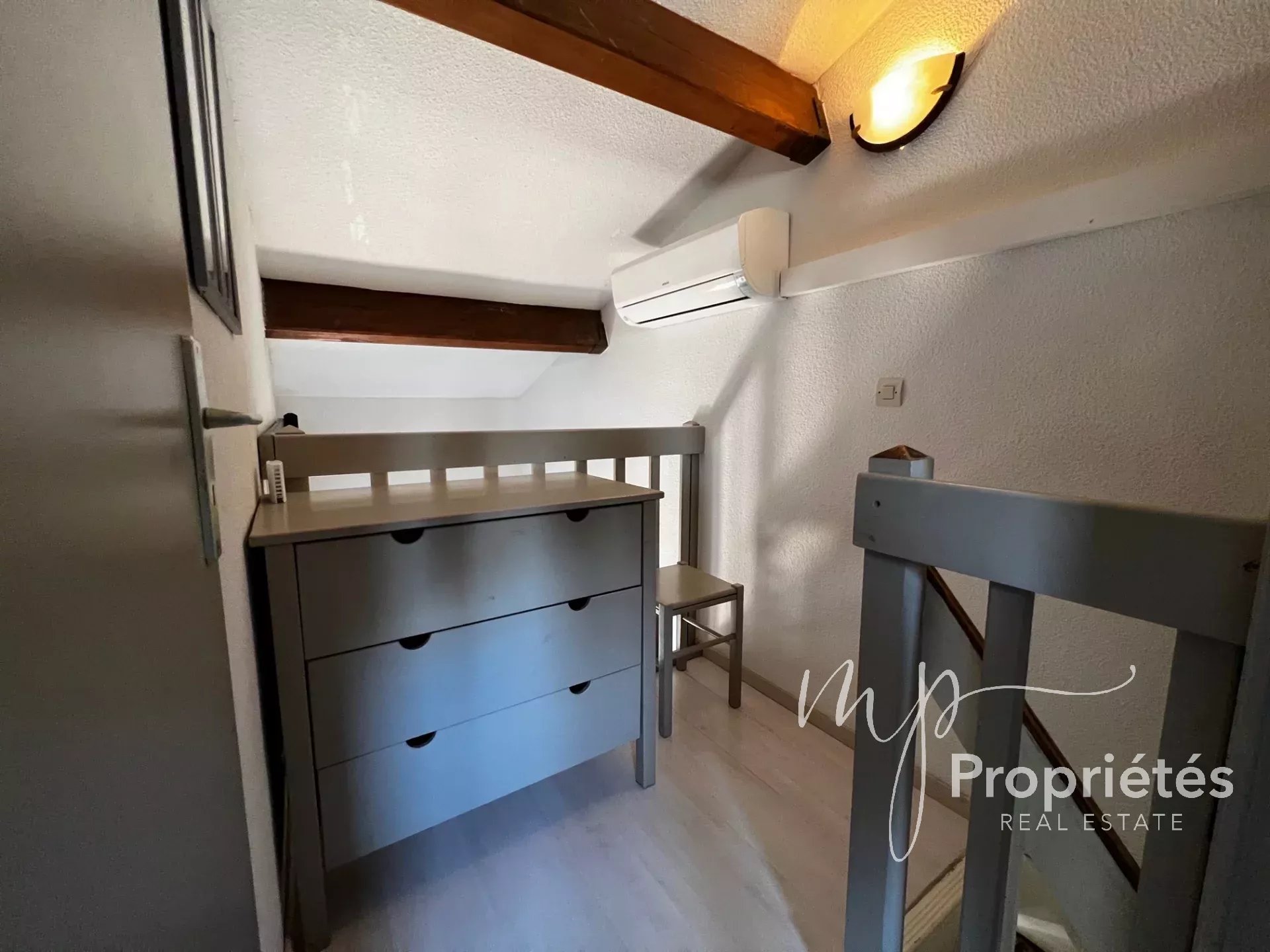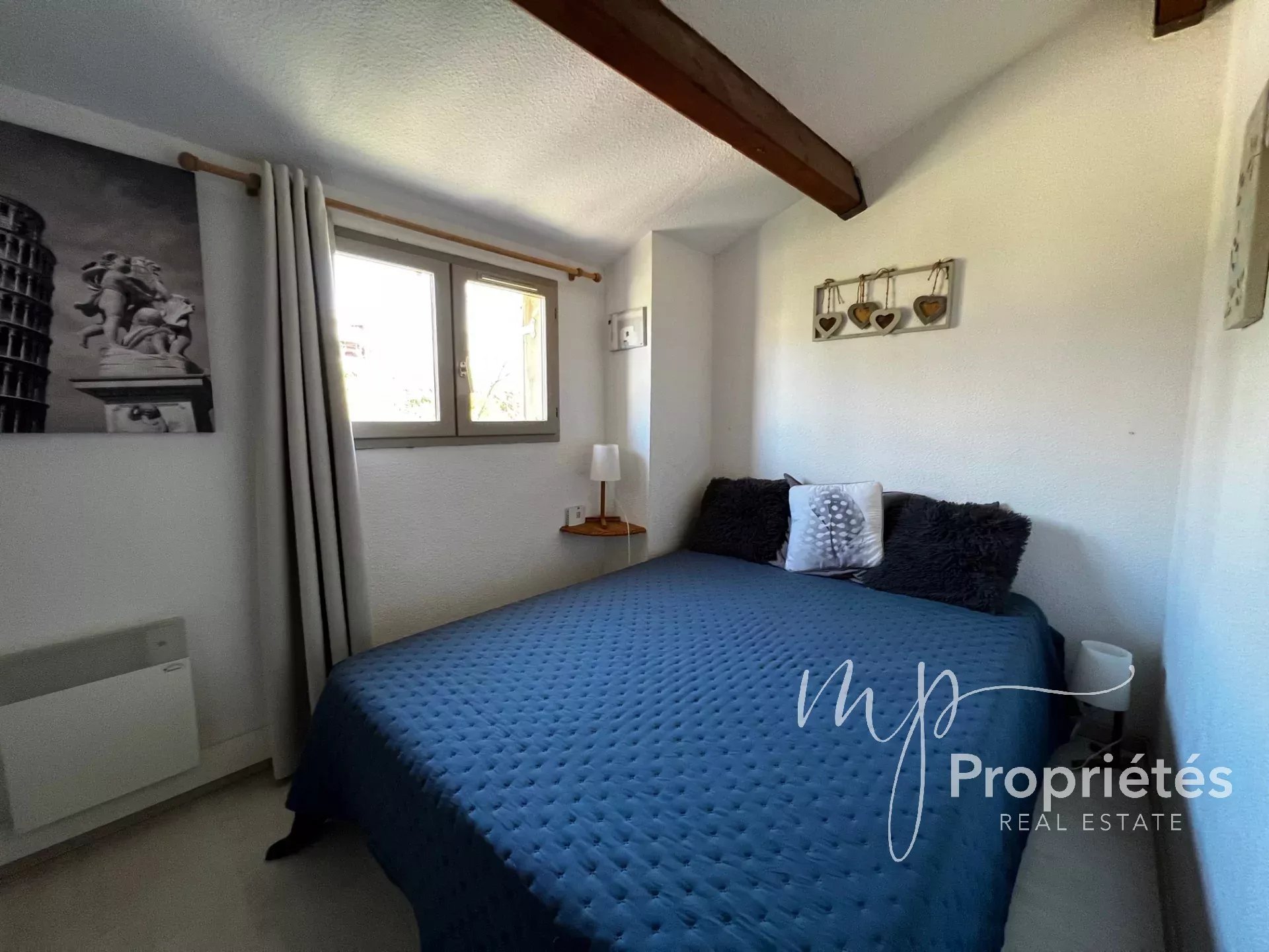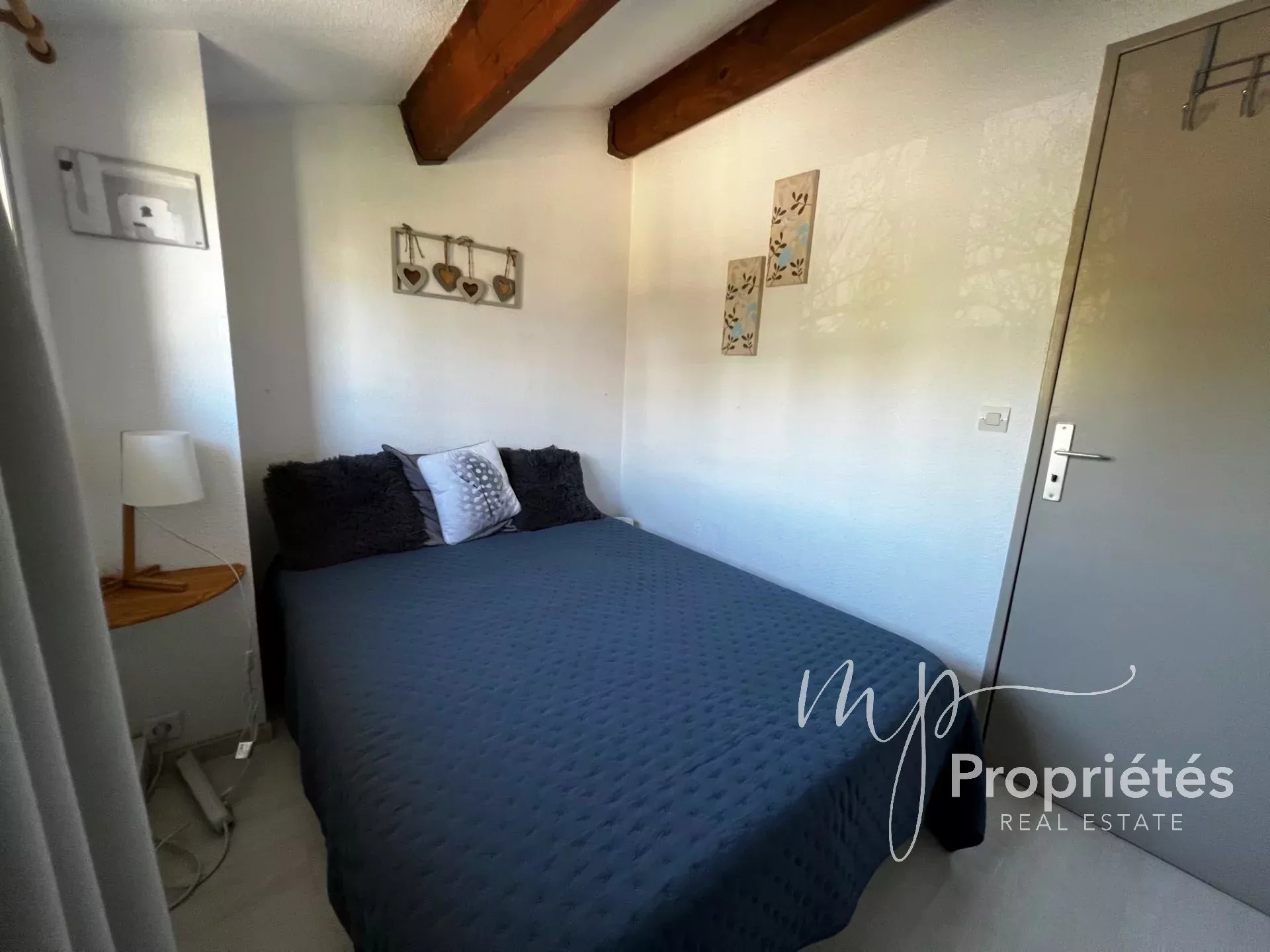 Il s'agit d'un mazet de 30m2 sur deux niveaux, situé dans une résidence sécurisée proche du centre-ville et de la plage du Lavandou. Le rez-de-chaussée est composé d'un séjour avec cuisine aménagée, une salle d'eau et des toilettes séparées. L'étage dispose de deux chambres et d'un palier. Le bien est complété par une terrasse de 20m2 il dispose d'une piscine en copropriété. Il y a également un parking privatif disponible.