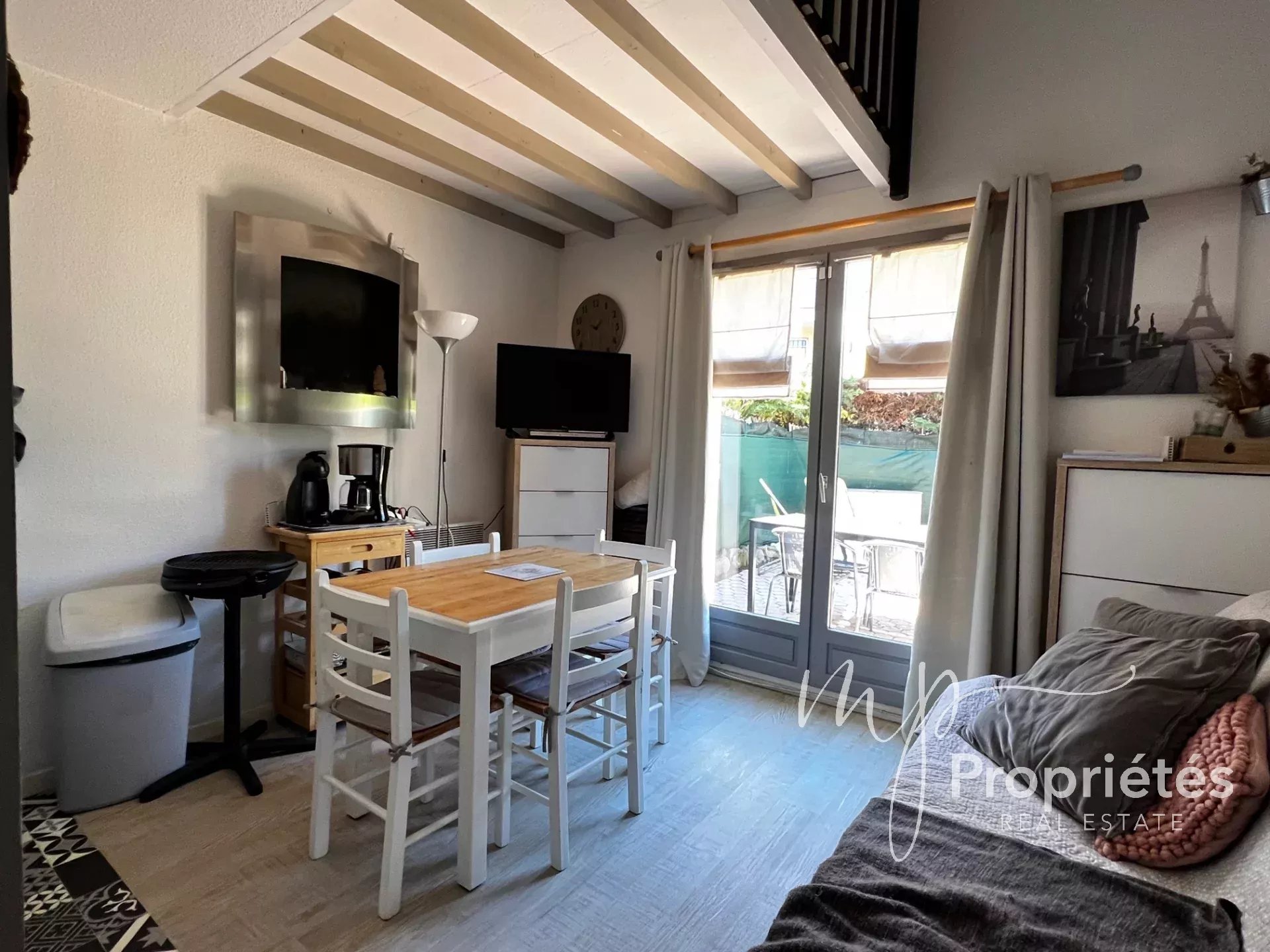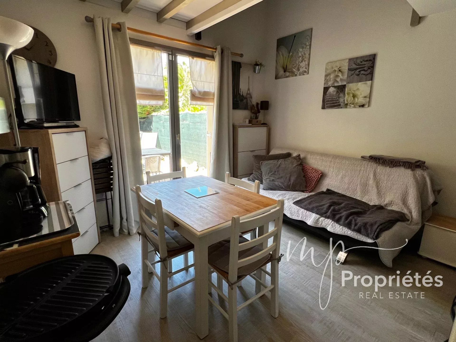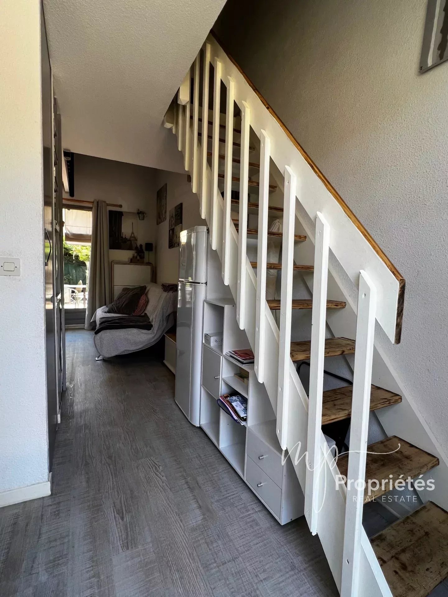 Il s'agit d'un mazet de 30m2 sur deux niveaux, situé dans une résidence sécurisée proche du centre-ville et de la plage du Lavandou. Le rez-de-chaussée est composé d'un séjour avec cuisine aménagée, une salle d'eau et des toilettes séparées. L'étage dispose de deux chambres et d'un palier. Le bien est complété par une terrasse de 20m2 il dispose d'une piscine en copropriété. Il y a également un parking privatif disponible.