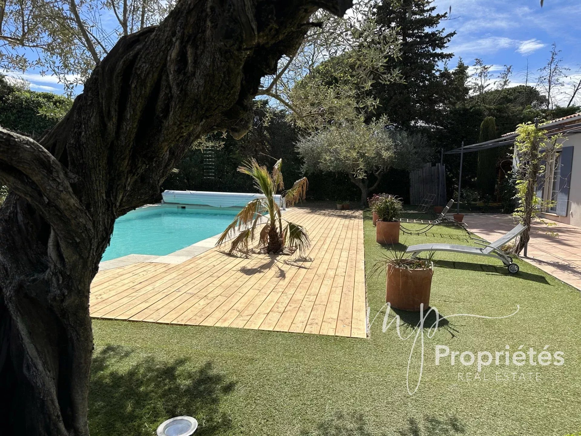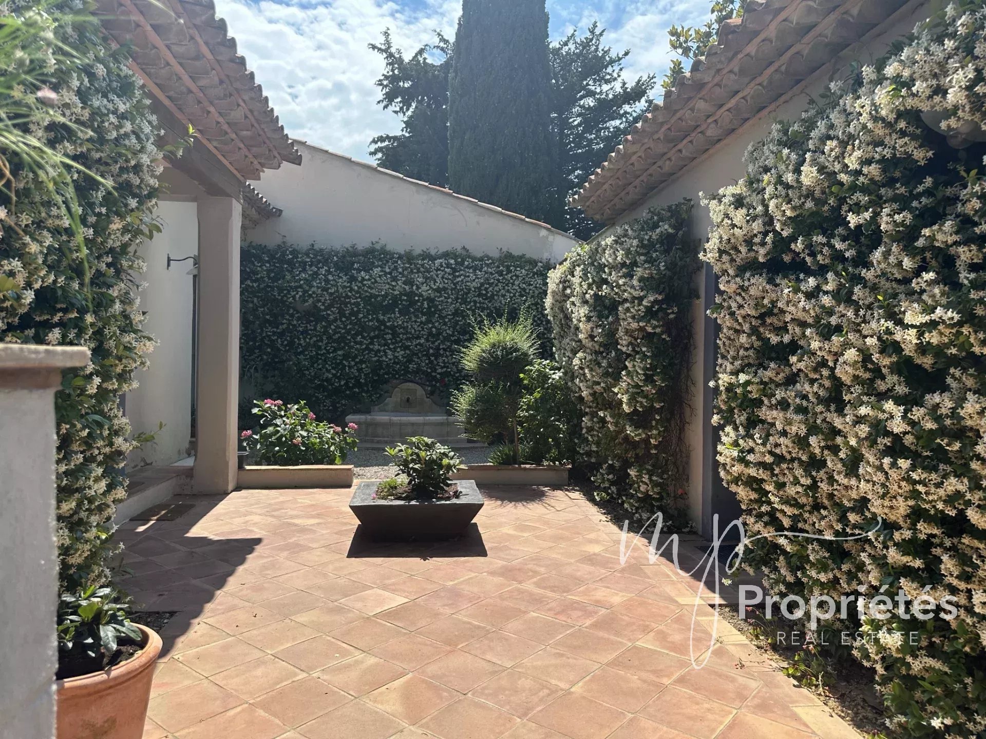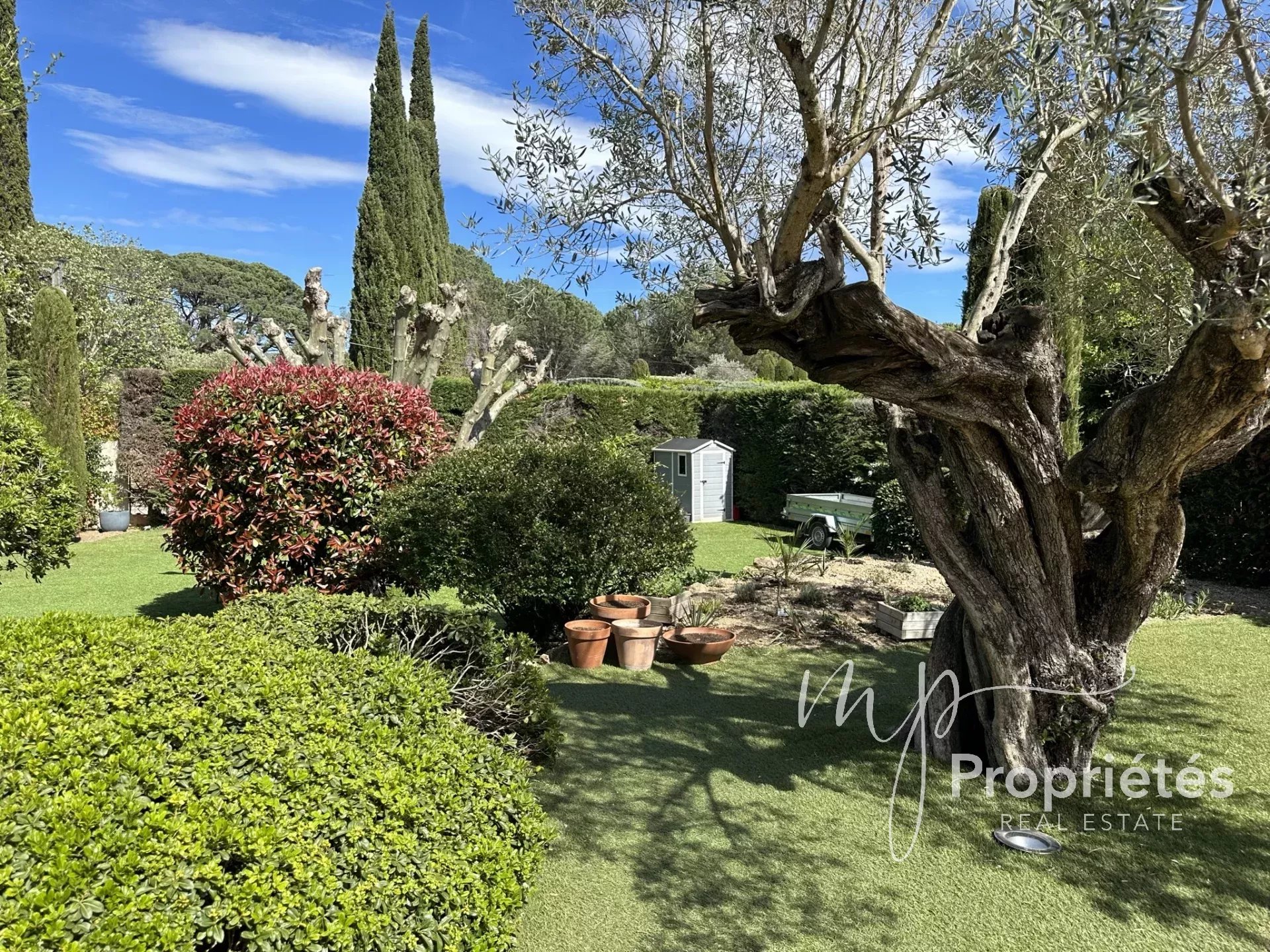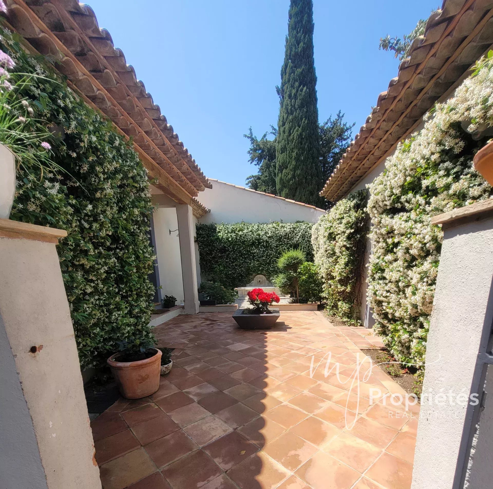 EXCLUSIVITE - PLAN DE LA TOUR , charmante maison de 140m² avec studio indépendant, située à seulement 10 minutes à pied du village. Cette belle propriété offre un cadre de vie idéal pour les amoureux de la nature et de la tranquillité. Vous serez séduits par son entrée par le patio et sa fontaine. Elle se compose de 2 suites parentales avec salle de bain privative, d'un grand dressing, d'une cuisine ouverte équipée et aménagée, ainsi que d'un spacieux salon/salle à manger donnant sur une large terrasse (50m² environs) avec vue sur la piscine chauffée exposée sud-est /sud-ouest.