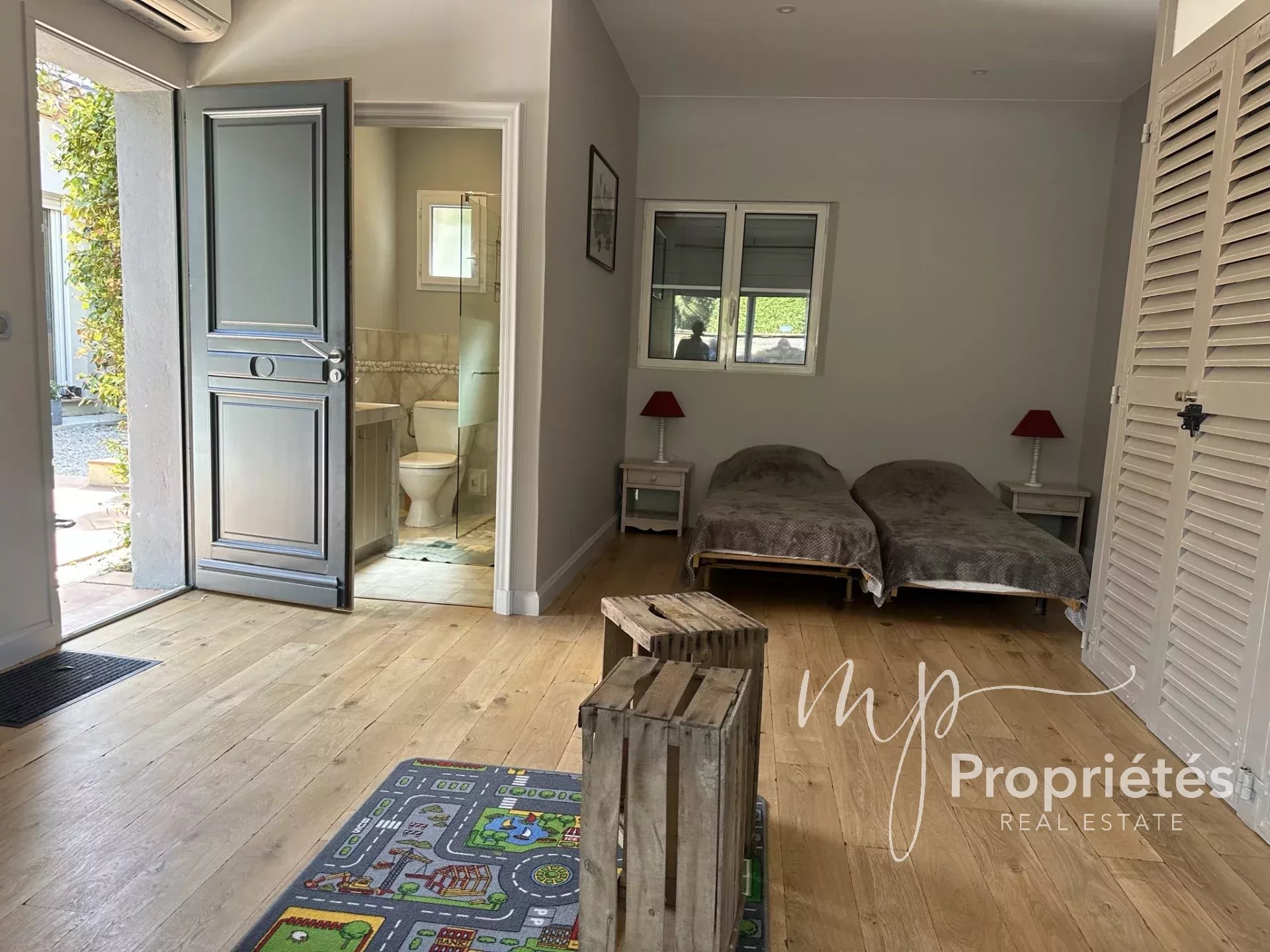 Le studio indépendant comprenant un espace de vie , coin nuit, une salle d’eau avec toilette et sa terrasse zen, idéal pour recevoir des invités ou pour une activité professionnelle.