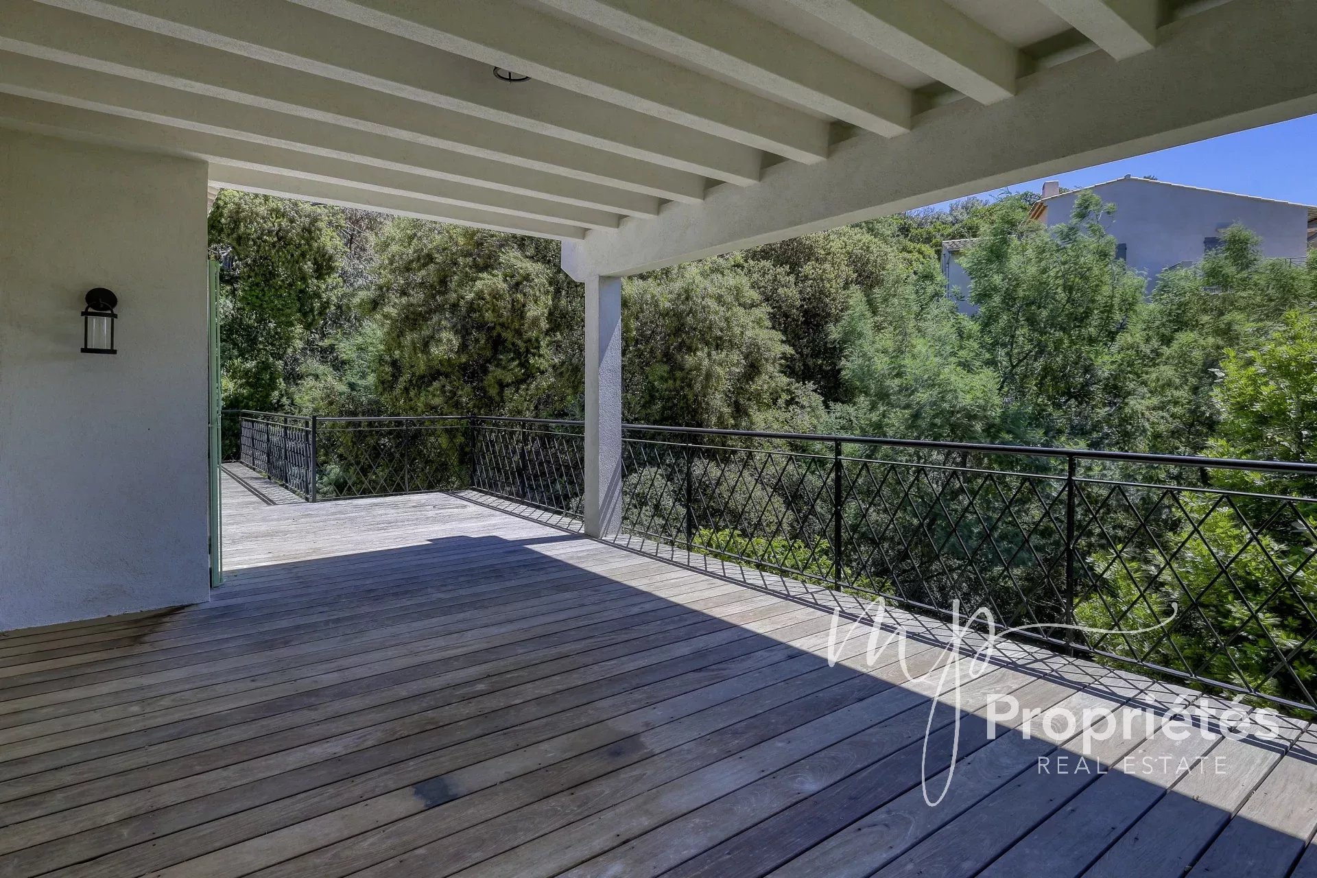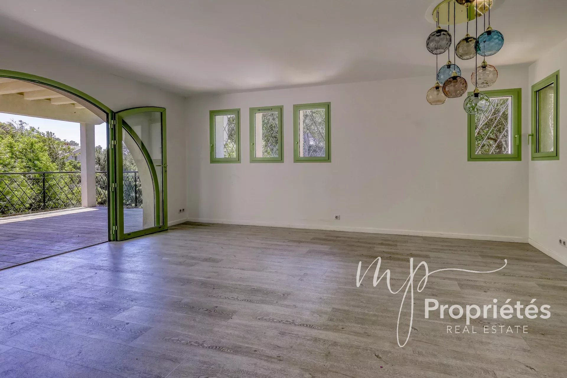 Entièrement rénovée, cette magnifique propriété s'étend sur une surface totale de 180 mètres carrés, implantée sur un généreux terrain de plus de 1350 mètres carrés, agrémenté d'essences méditerranéennes qui ajoutent une touche de charme et de tranquillité.