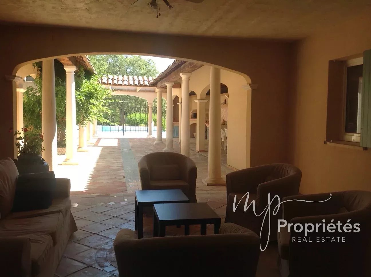LA MOLE Magnifique villa de 195m2 édifiée sur un terrain de 7 847m2. Cette villa se compose d'une entrée avec placard, d'une salle à manger / salon avec cheminée donnant sur une grande terrasse et un patio équipé d'un BBQ et four à pizza, d'une cuisine équipée et aménagée également donnant sur le patio, d'un toilette, d'une salle de bain et d'une chambre avec douche et toilette, avec une ouverture sur la terrasse et le patio. A l'étage, une suite parentale avec son solarium. Au rez-de-chaussée, une grande pièce faisant office de bureau, une chambre avec placard, une seconde chambre avec placard et une salle d'eau (à terminer). Une laverie, un garage de 56m2,une piscine, un local technique et un atelier complète le bien.