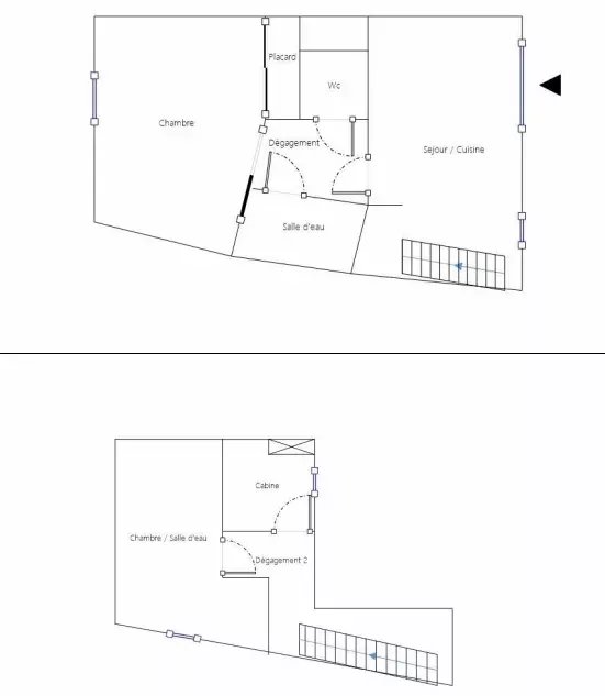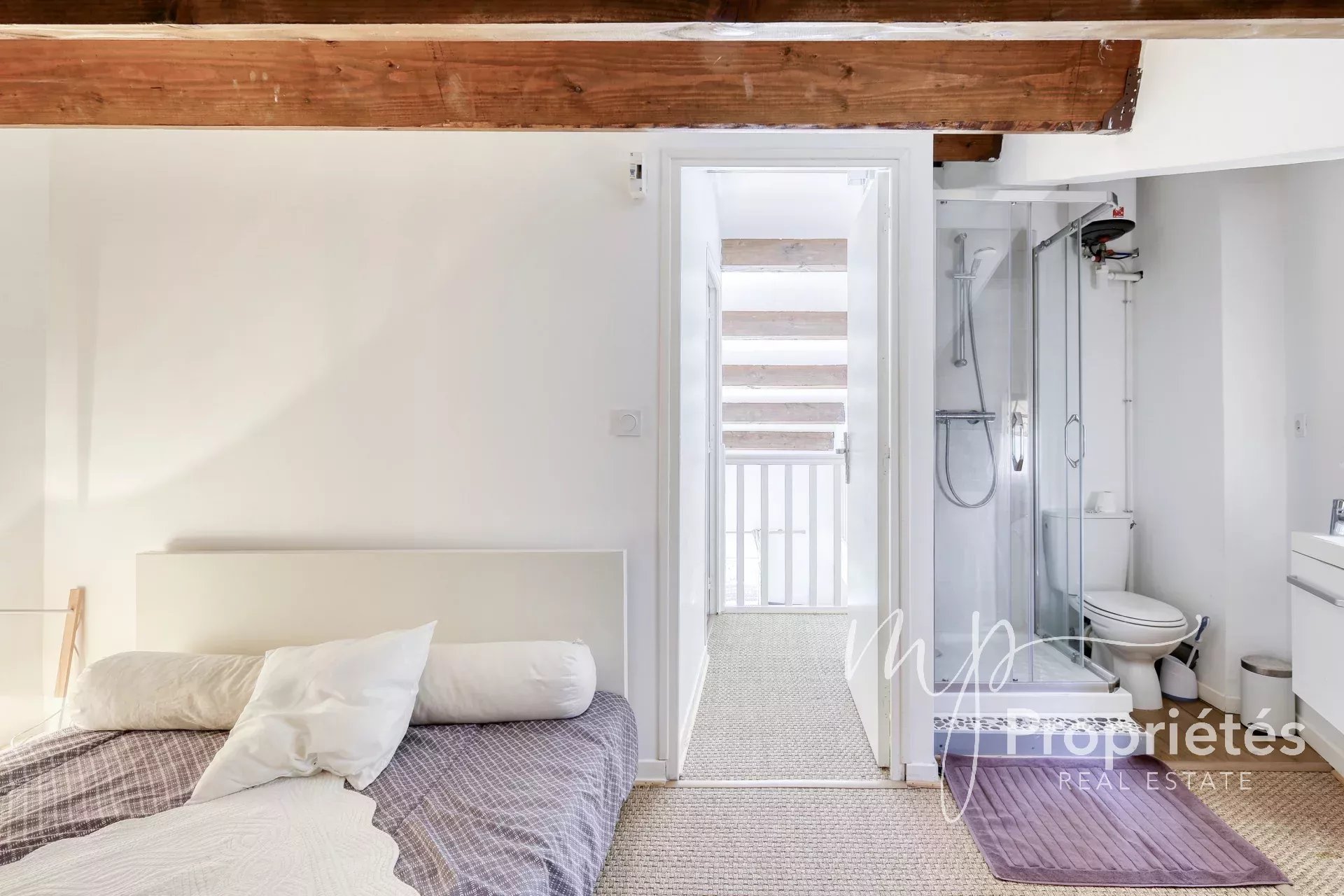 L'appartement se compose d'un salon lumineux avec cuisine équipée ouverte, créant un espace convivial. Il comprend également une chambre avec placard intégré pour un rangement pratique, des toilettes séparées, et une salle de douche moderne.