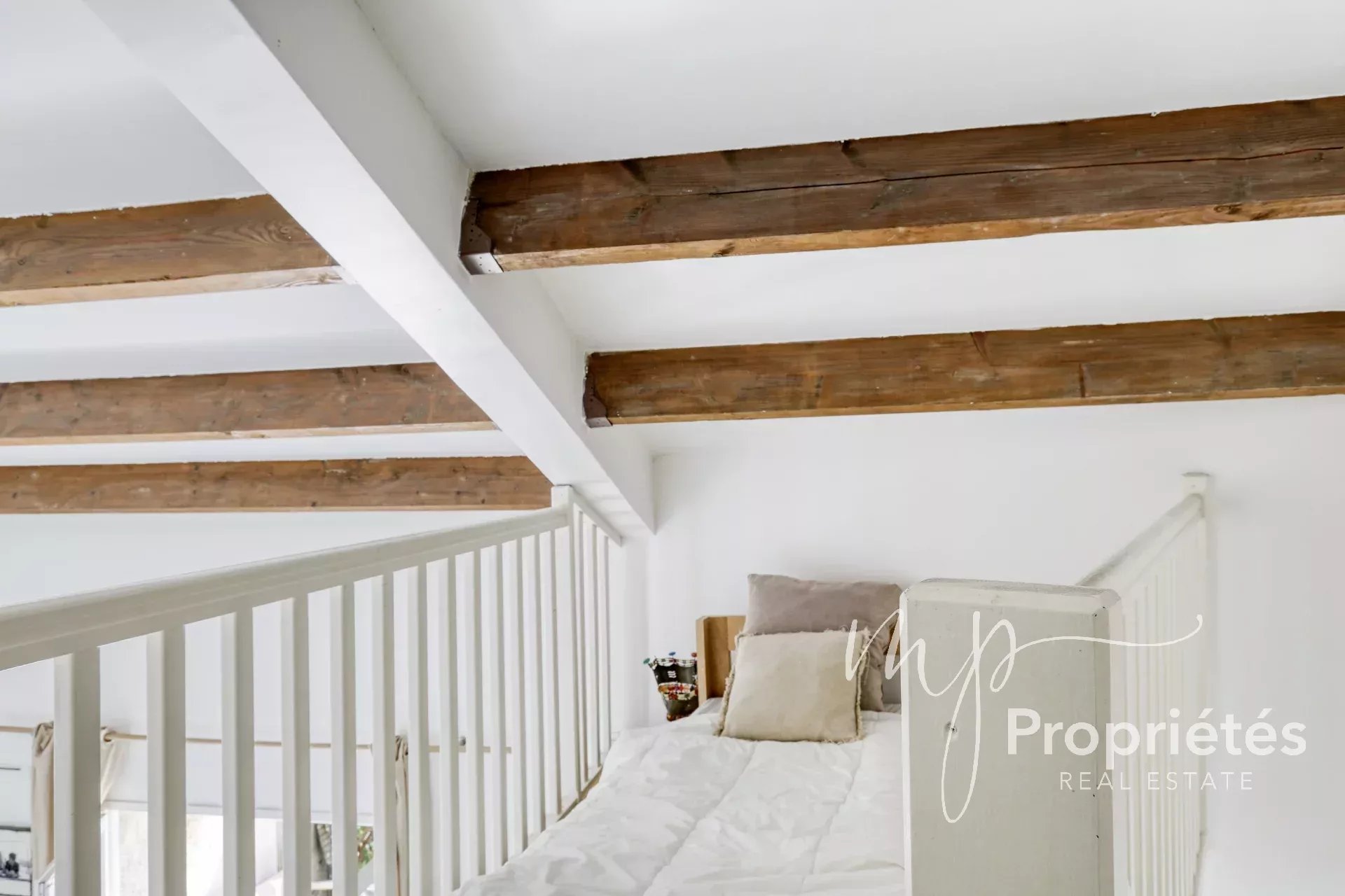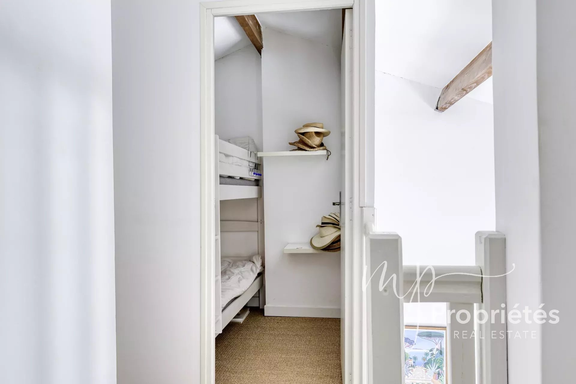 À l'étage, vous trouverez un dégagement avec coin nuit. Un coin cabine équipé de 2 lits superposés offrant des couchages supplémentaires, parfait pour les familles ou les amis en visite. Vous trouverez une deuxième chambre avec douche et toilettes.