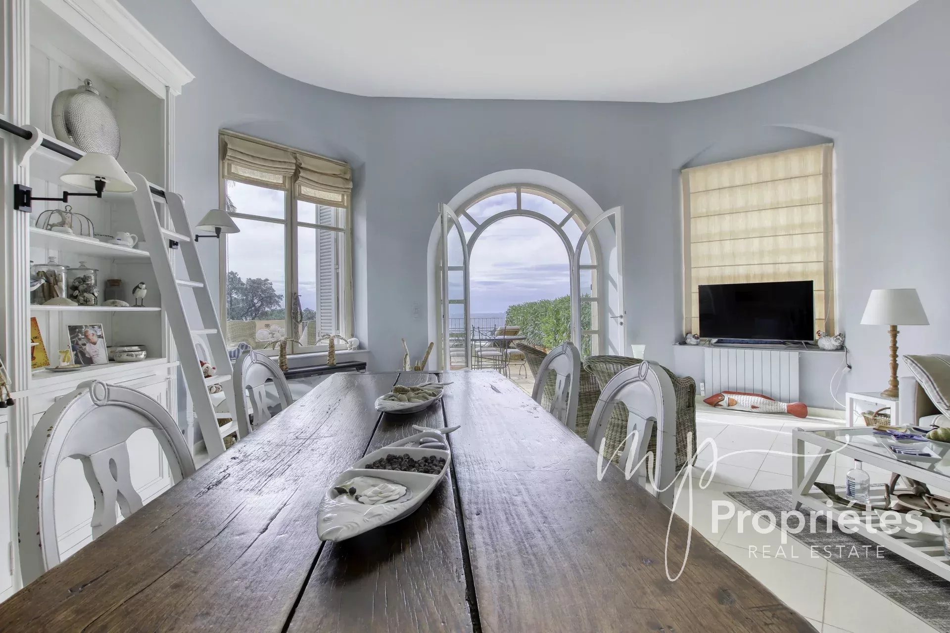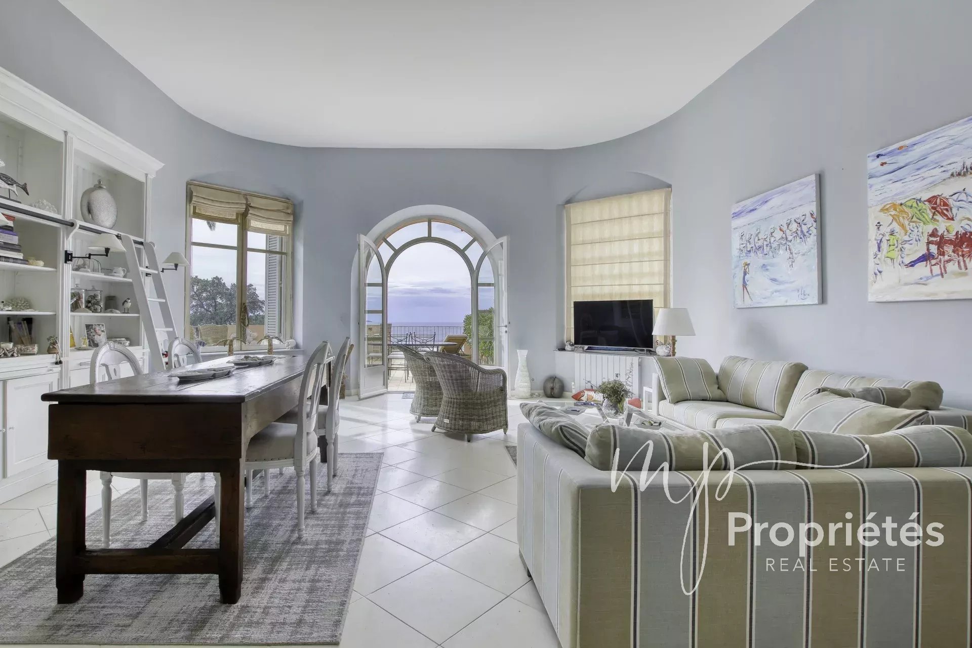 Un vaste salon/salle à manger donnant sur la terrasse de 117m2 offrant une vue panoramique sur la mer pour profiter du soleil levant et couchant