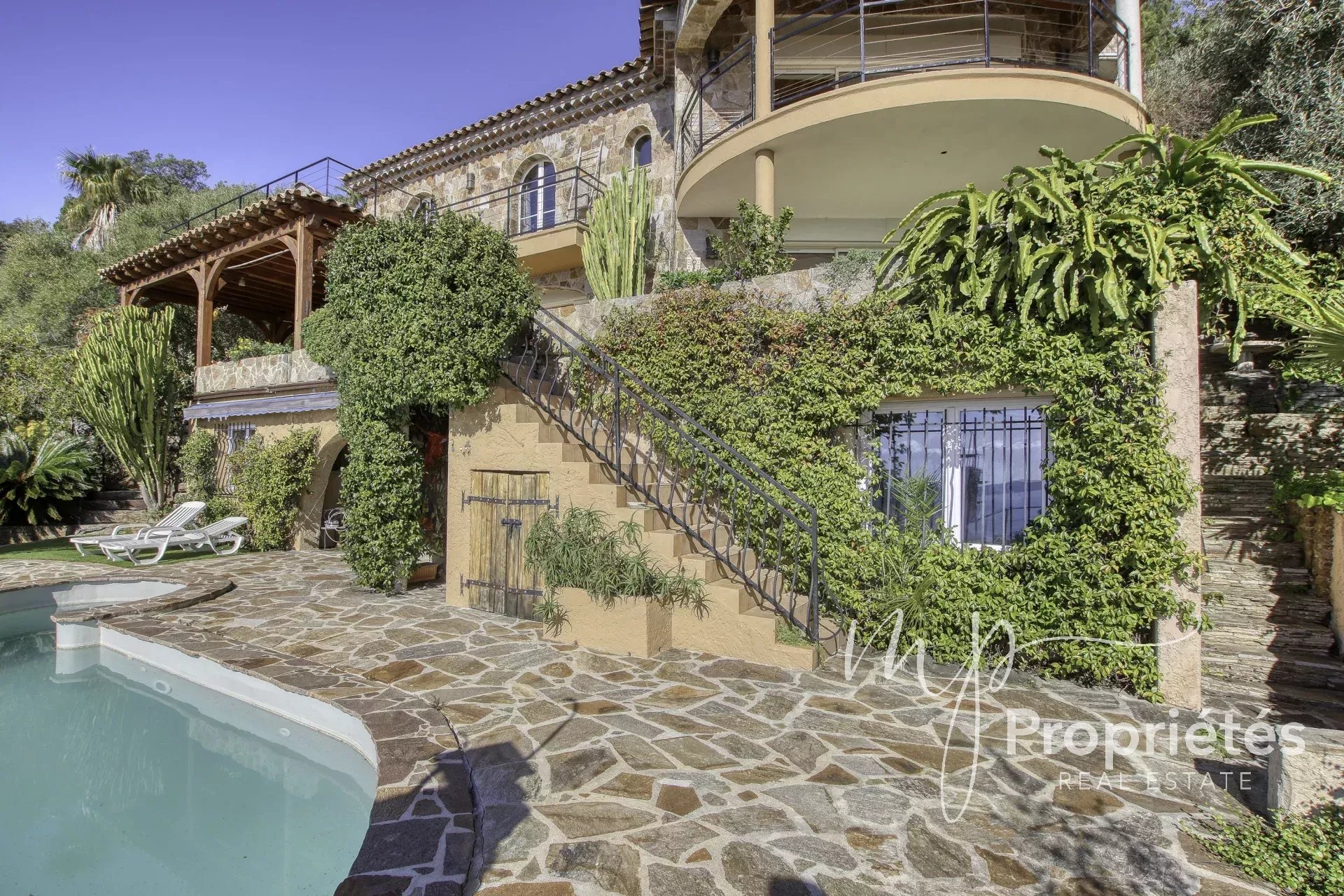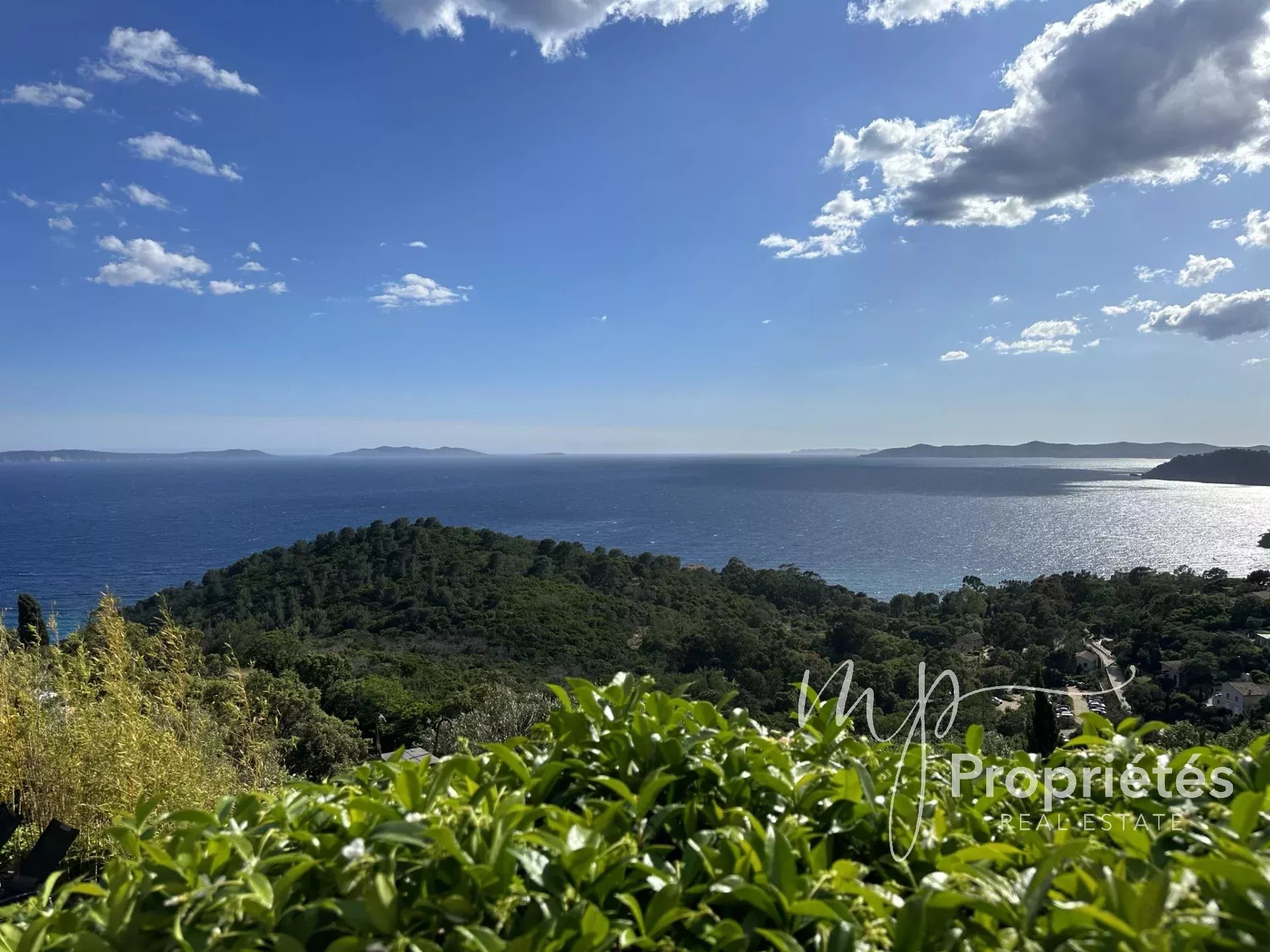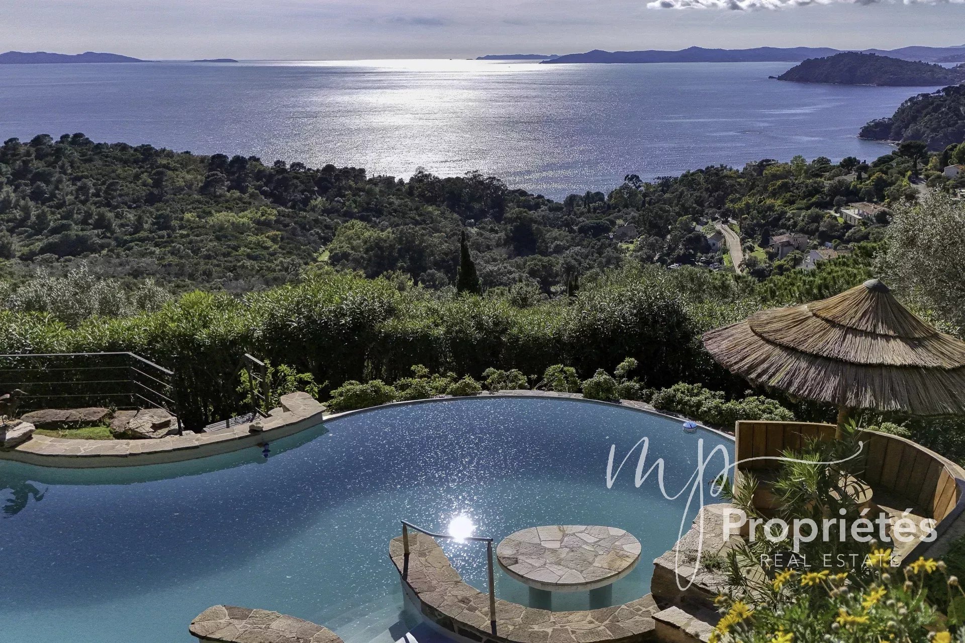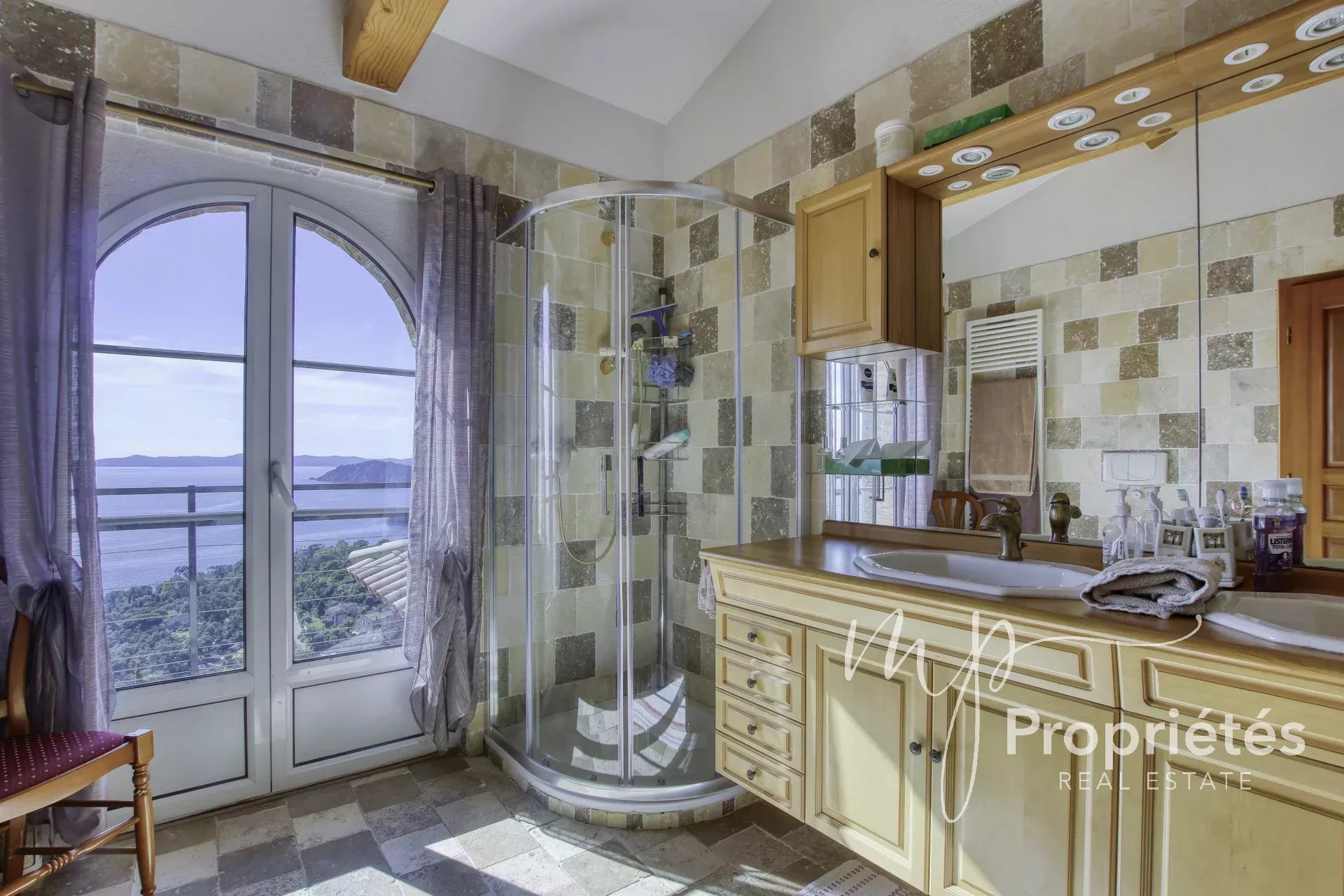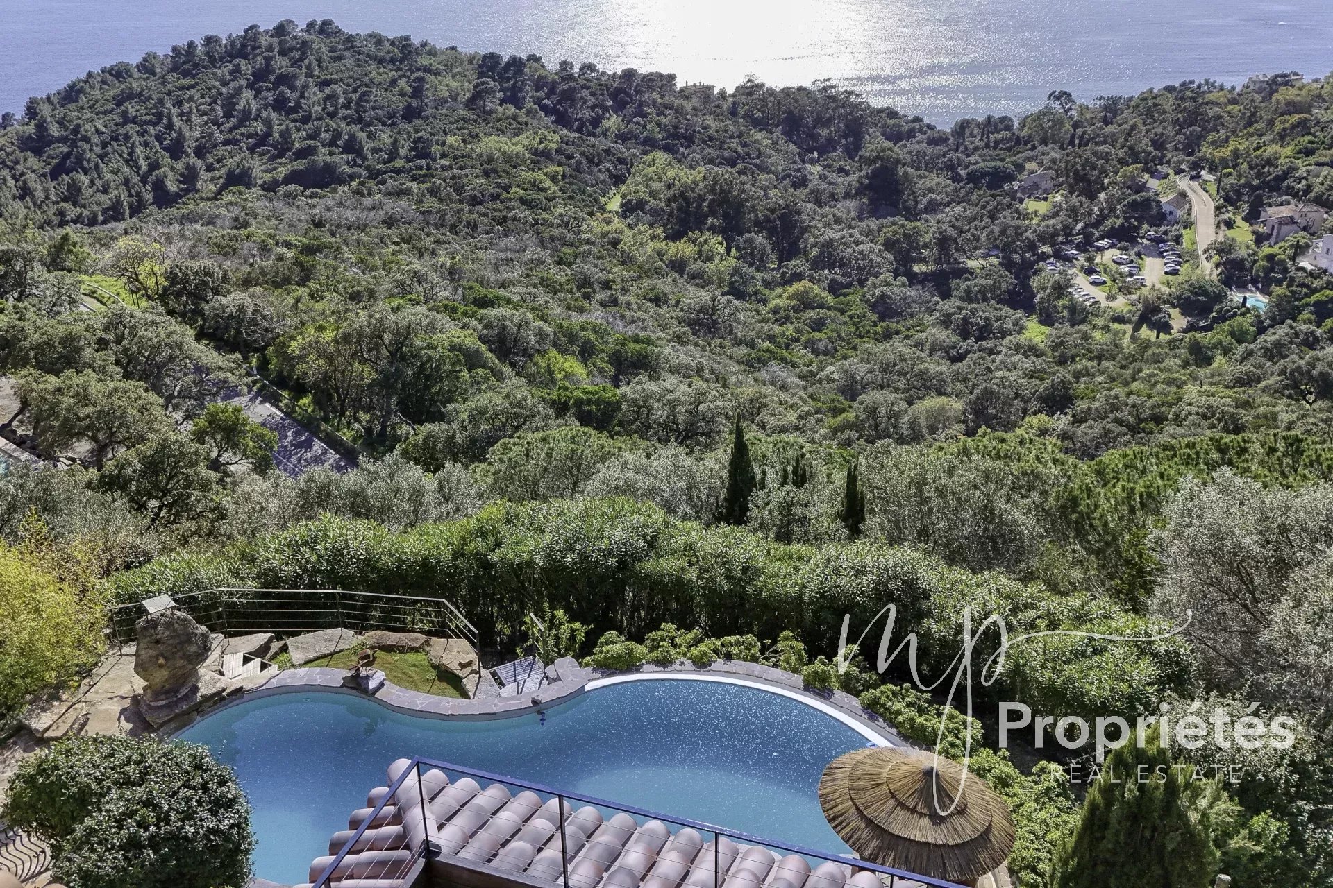 Nichée sur les hauteurs du Rayol-Canadel, cette propriété rare et raffinée offre une vue panoramique unique sur la mer et les Îles d’Or. Édifiée sur quatre niveaux desservis par ascenseur, elle déploie 386,30 m² habitables au cœur d’un terrain arboré de 1 600 m², avec grand garage et sept places de stationnement.