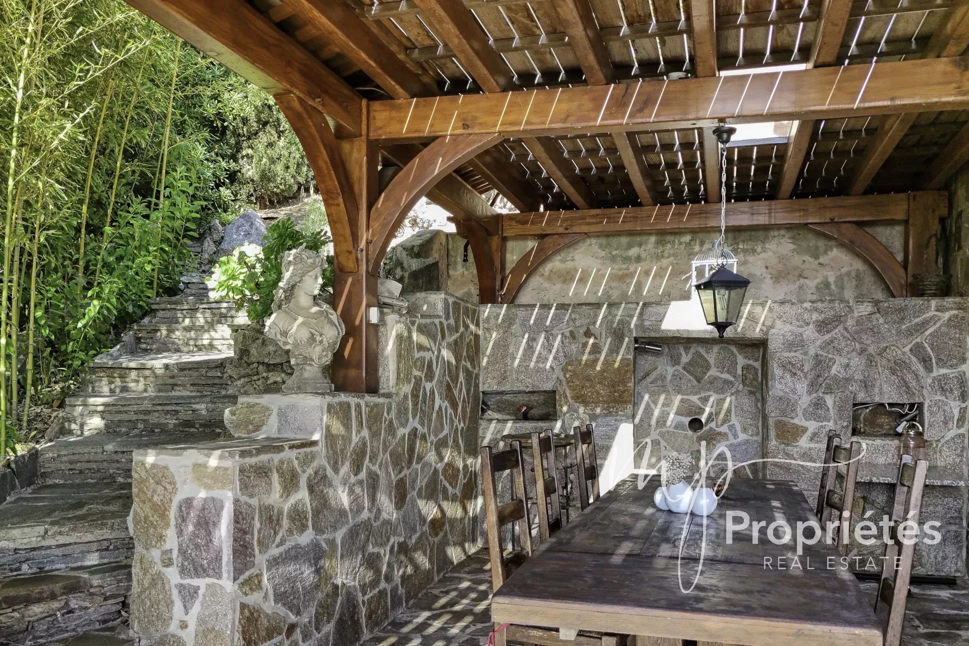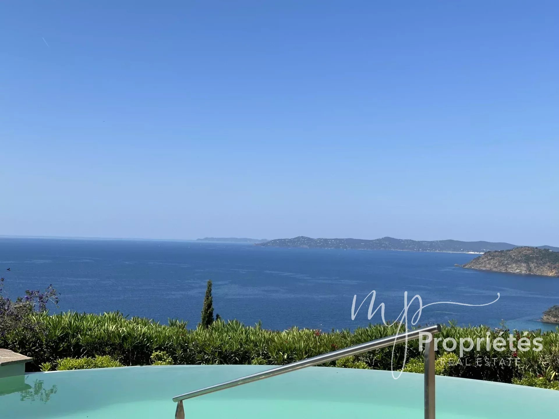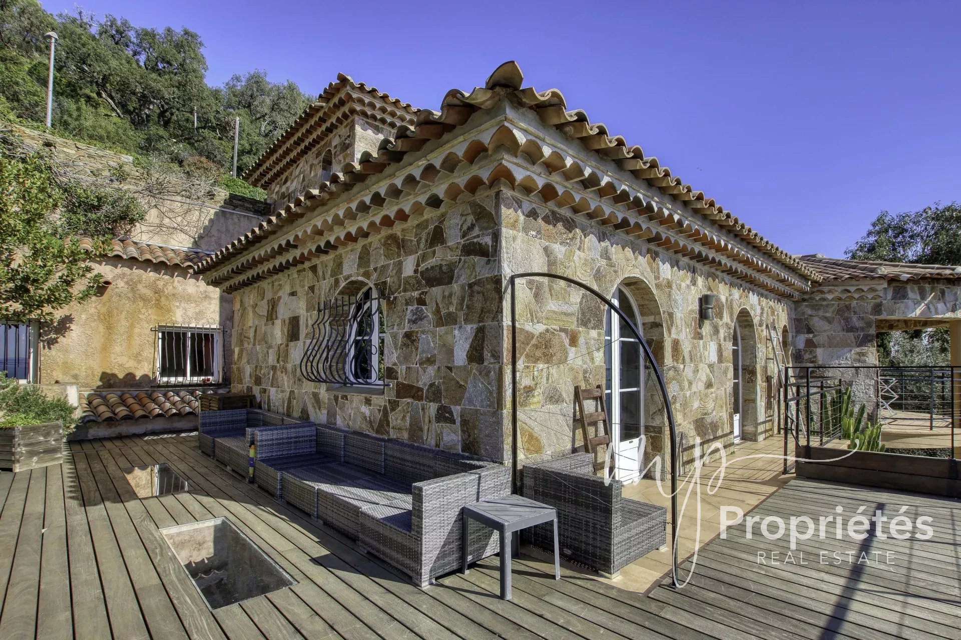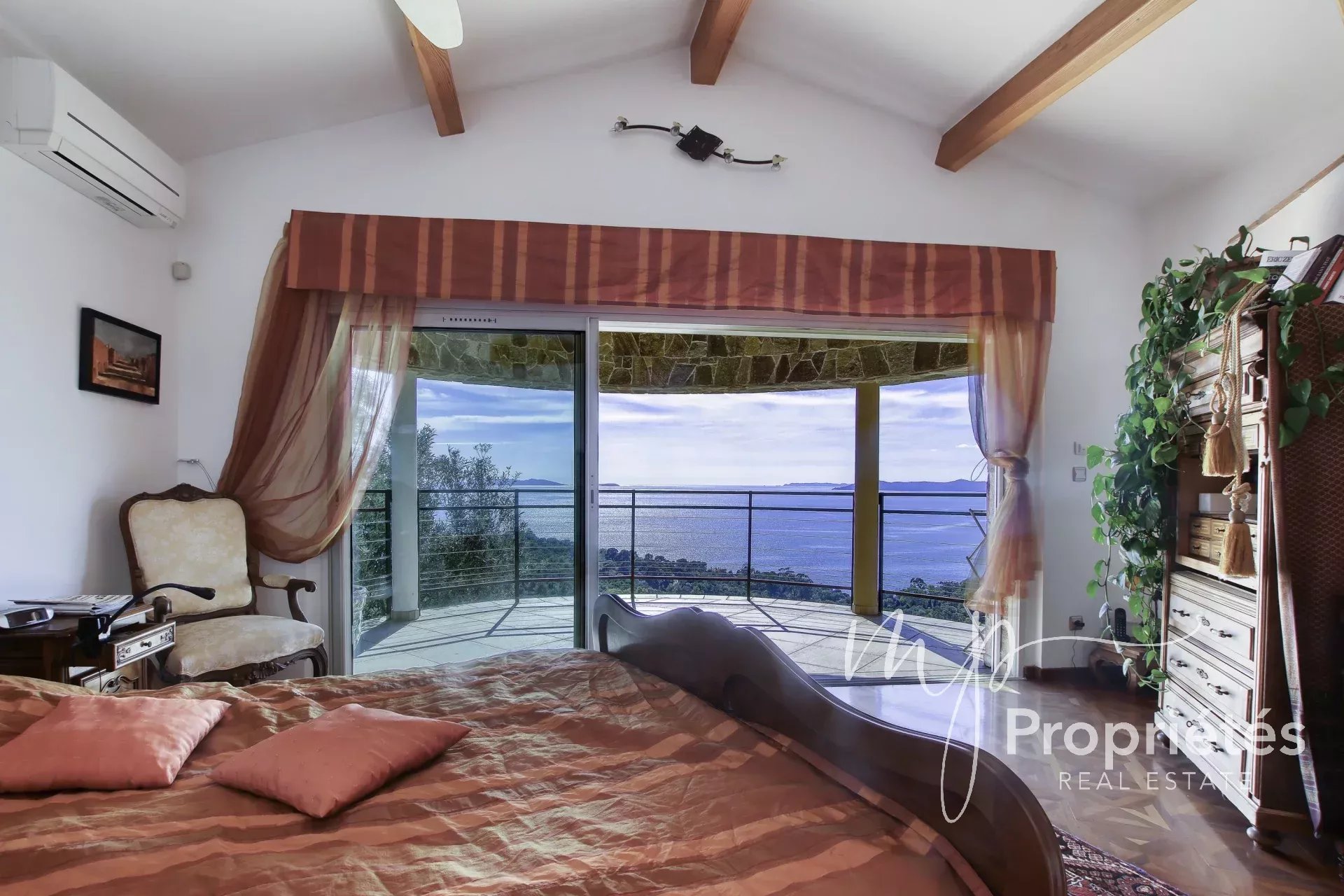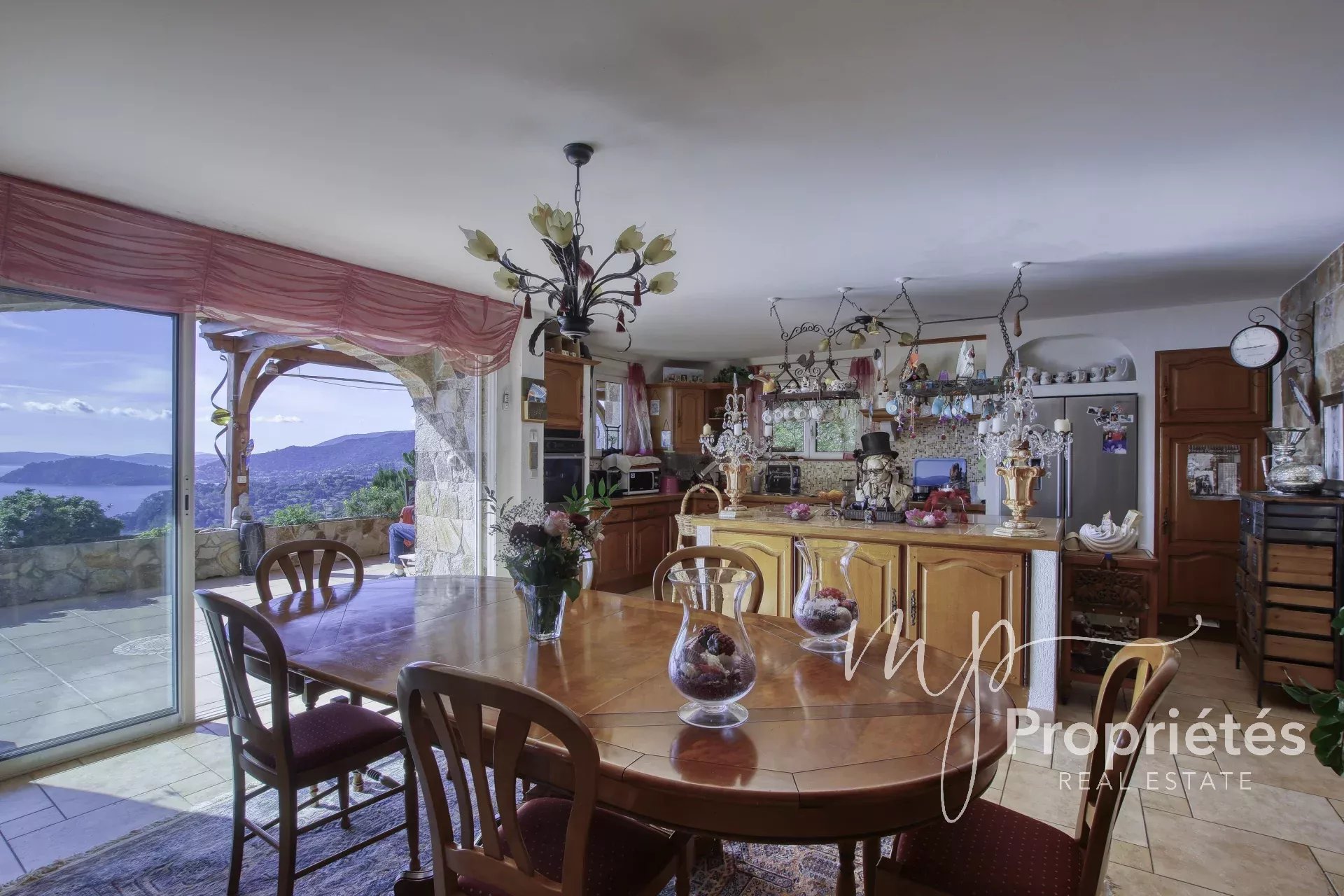 Nichée sur les hauteurs du Rayol-Canadel, cette propriété rare et raffinée offre une vue panoramique unique sur la mer et les Îles d’Or. Édifiée sur quatre niveaux desservis par ascenseur, elle déploie 386,30 m² habitables au cœur d’un terrain arboré de 1 600 m², avec grand garage et sept places de stationnement.