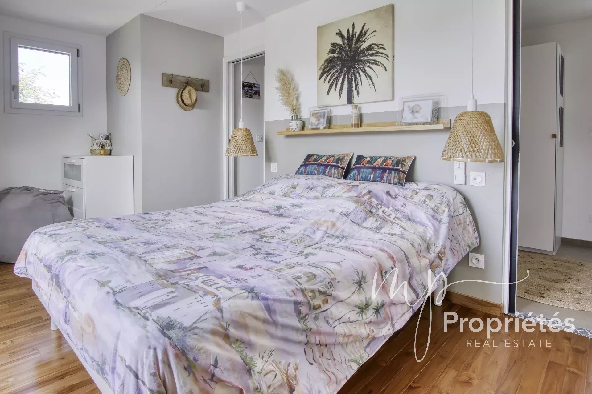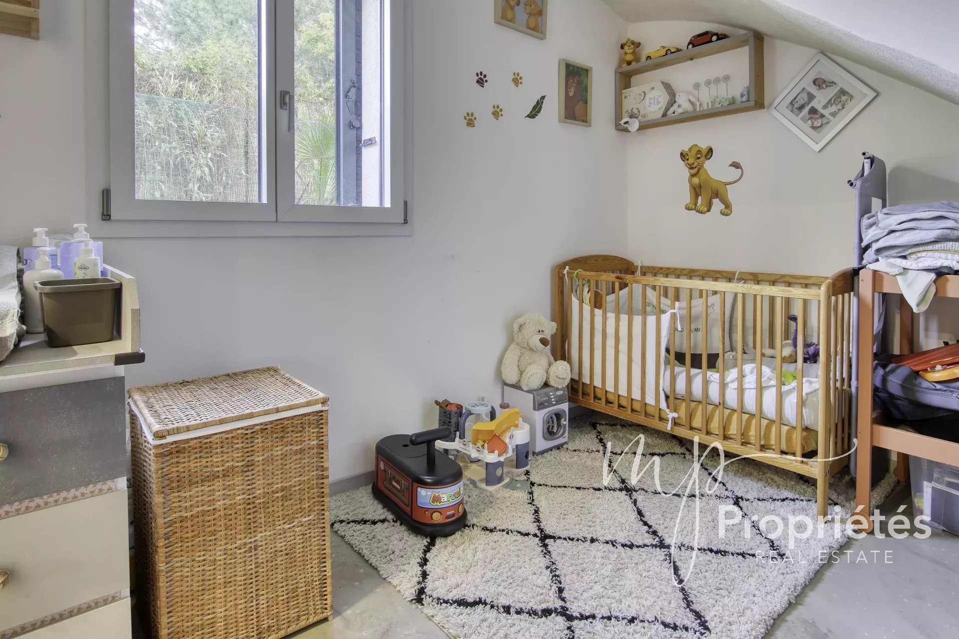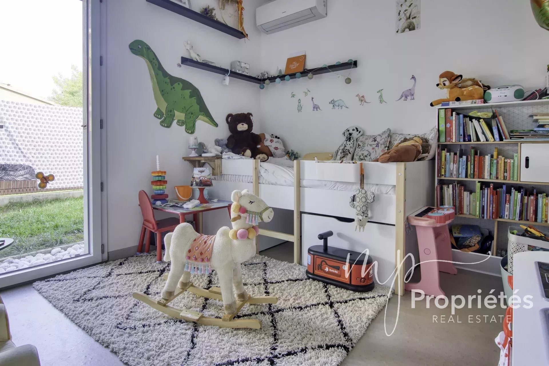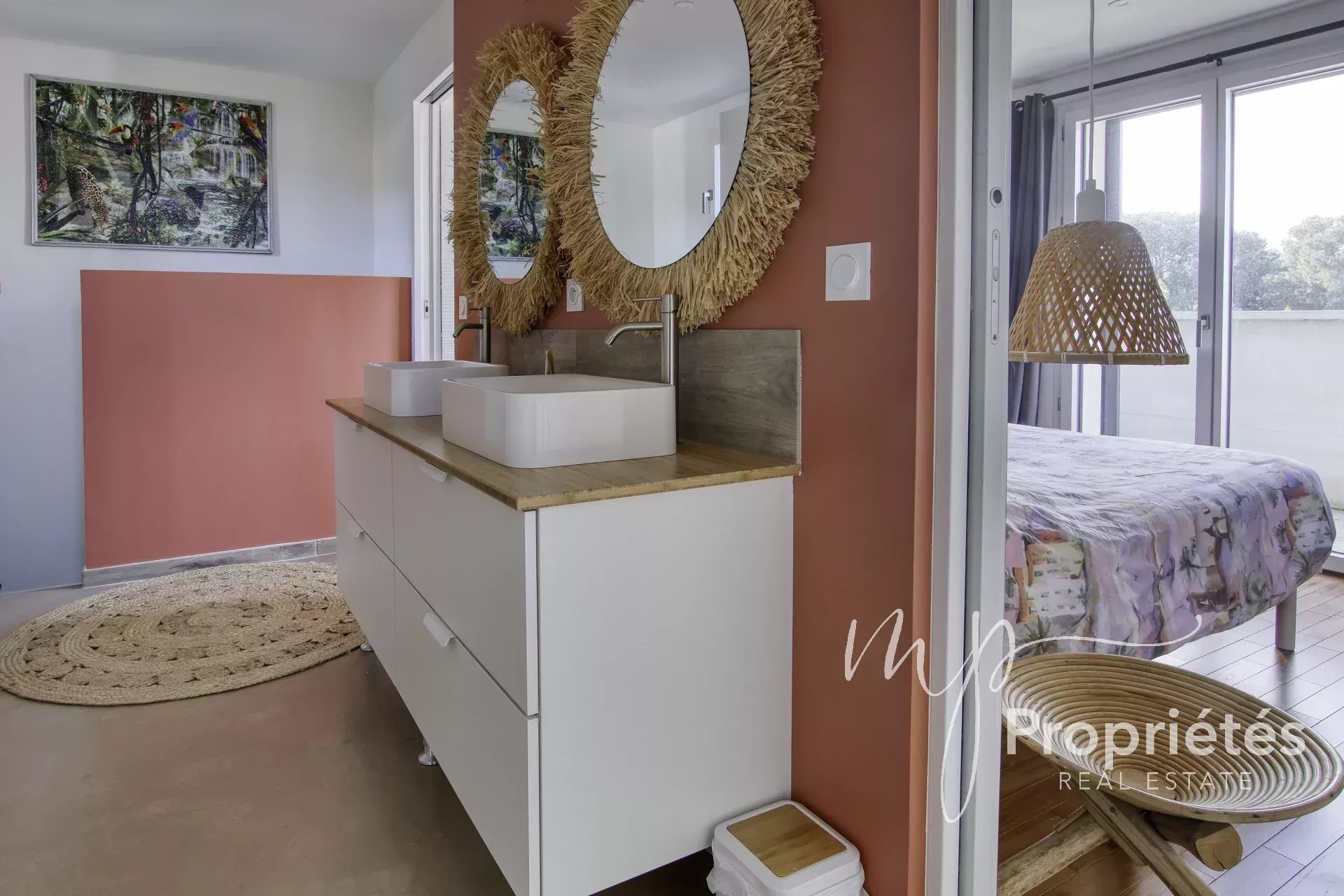 À l'étage, vous découvrirez une chambre parentale élégante avec un dressing généreux avec double vasque et une salle de douche avec toilette privée.
