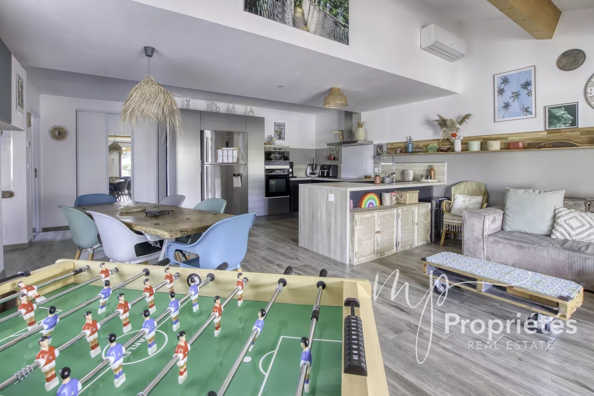 C'est l'endroit parfait pour se détendre, recevoir des amis et profiter de repas en plein air. La cuisine ouverte sur le séjour est équipée de tout le nécessaire pour préparer de délicieux repas.