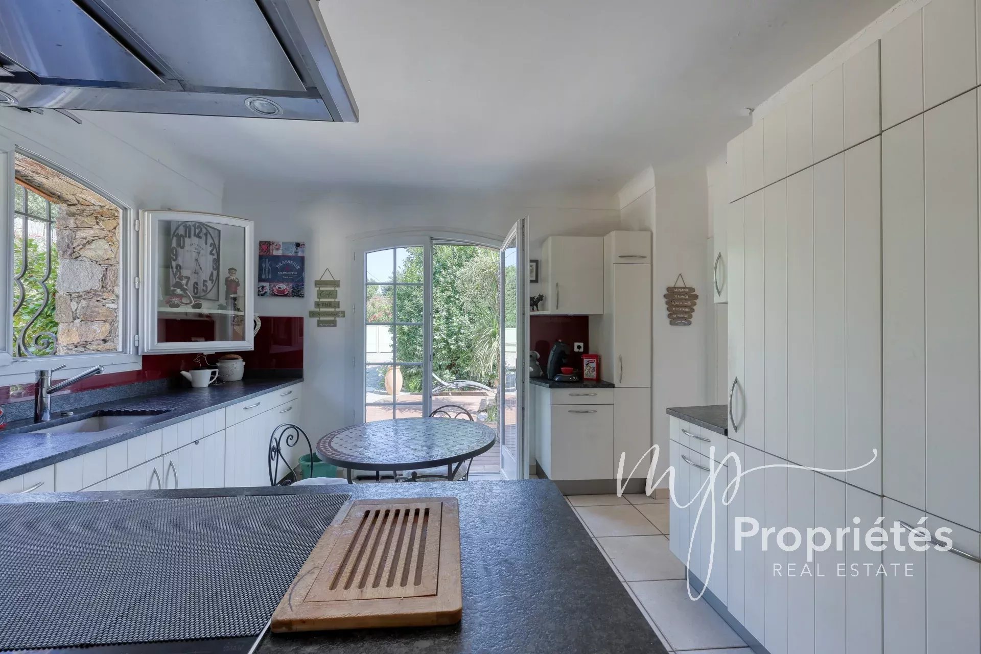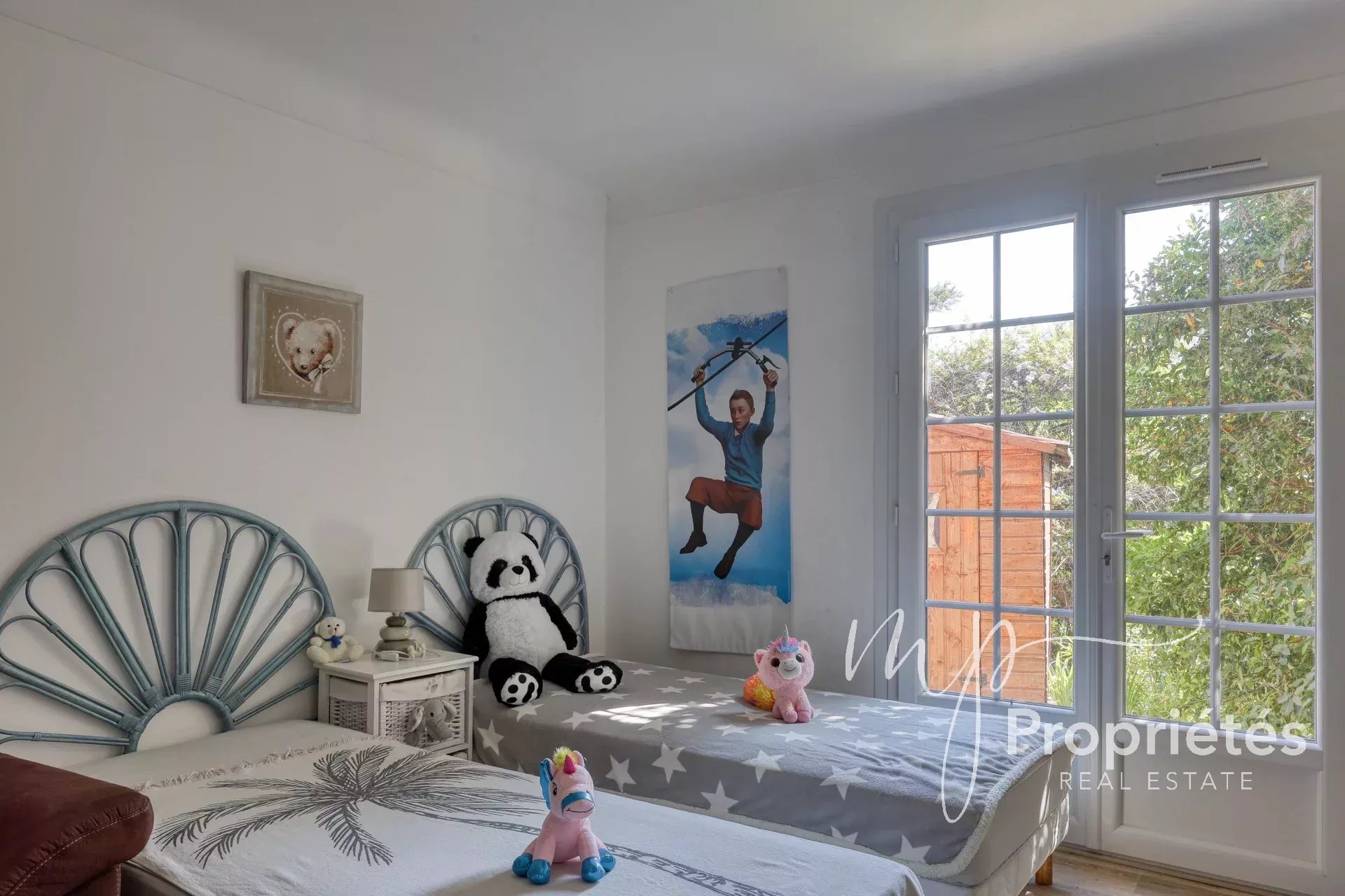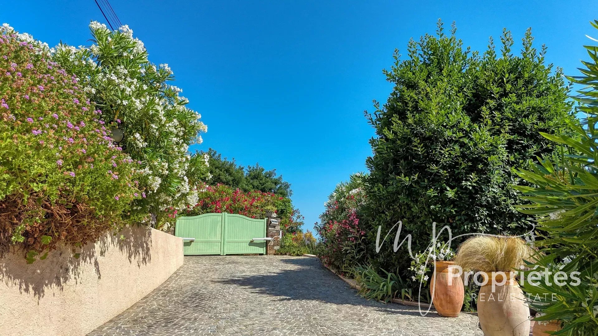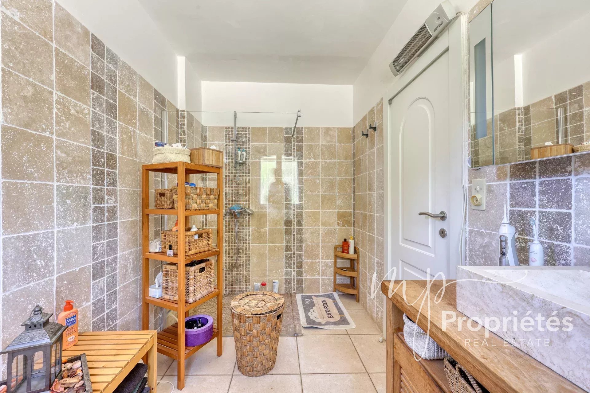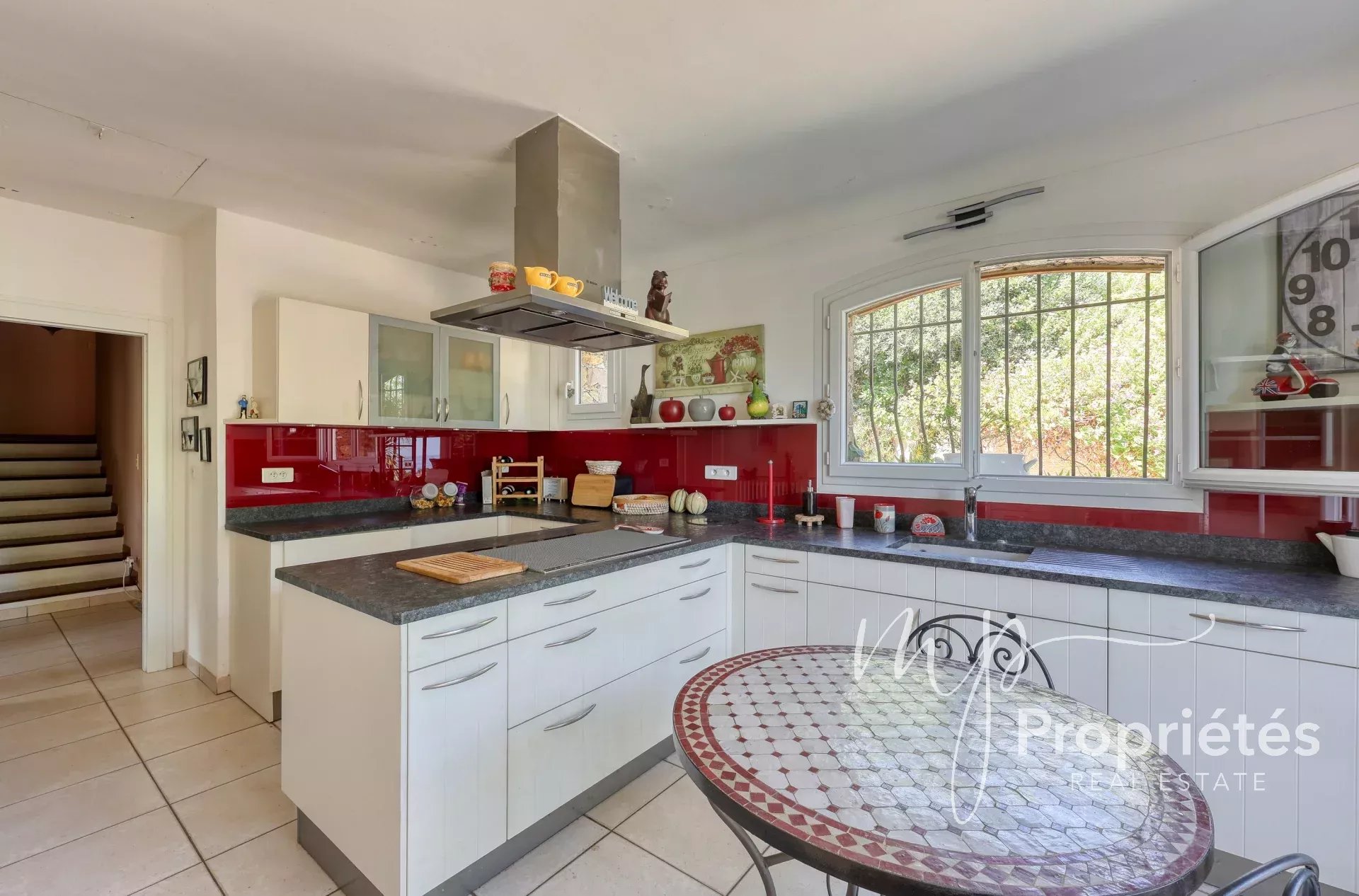En rez-de-chaussée : Un placard sous l'escalier offre un espace de rangement supplémentaire. Une entrée donne accès à une cave, idéale pour stocker vos vins et objets de valeur. Un toilette séparé pour plus de commodité. La chaufferie est bien équipée pour assurer votre confort toute l'année. Vous découvrirez 5 chambres, dont 4 sont dotées de placards, et qui donnent toutes sur le jardin. Idéal pour accueillir famille et amis en toute intimité. Deux salles d'eau supplémentaires facilitent la vie quotidienne. À l'extérieur, vous pourrez également profiter des extérieurs pour des moments de détente et de convivialité avec la piscine donnant sur la vue imprenable sur la mer. Un garage spacieux pour abriter votre véhicule en toute sécurité ainsi qu’un carport pour 2 voitures, pour un stationnement supplémentaire complètent le bien