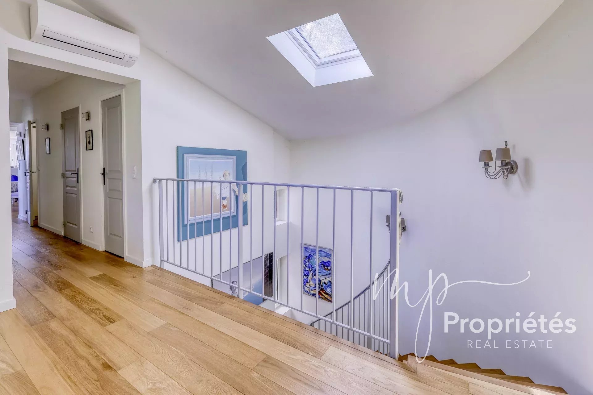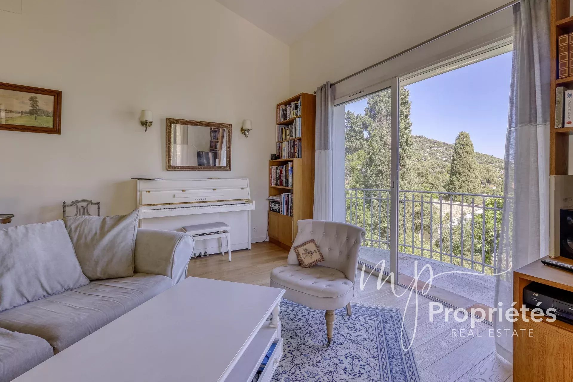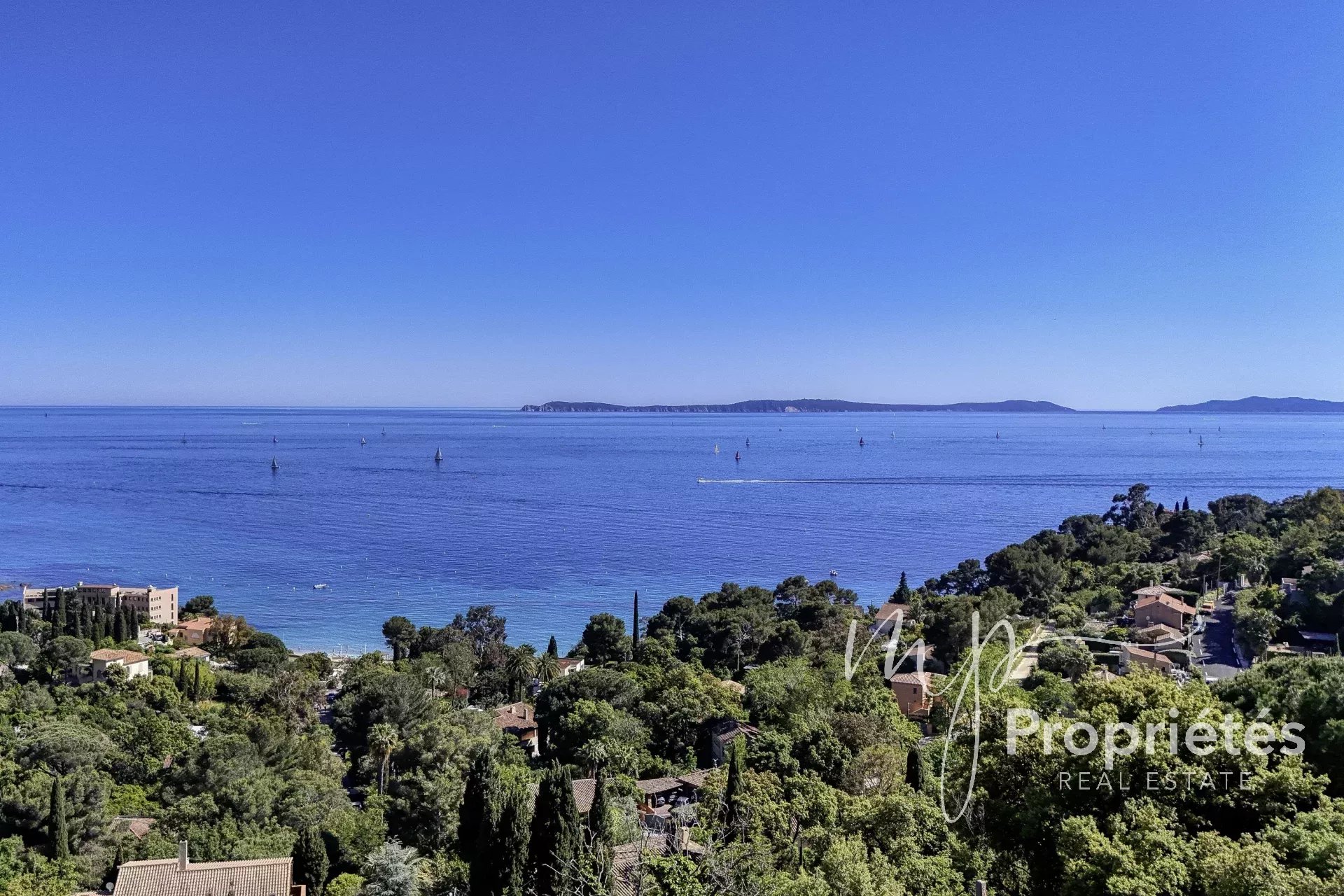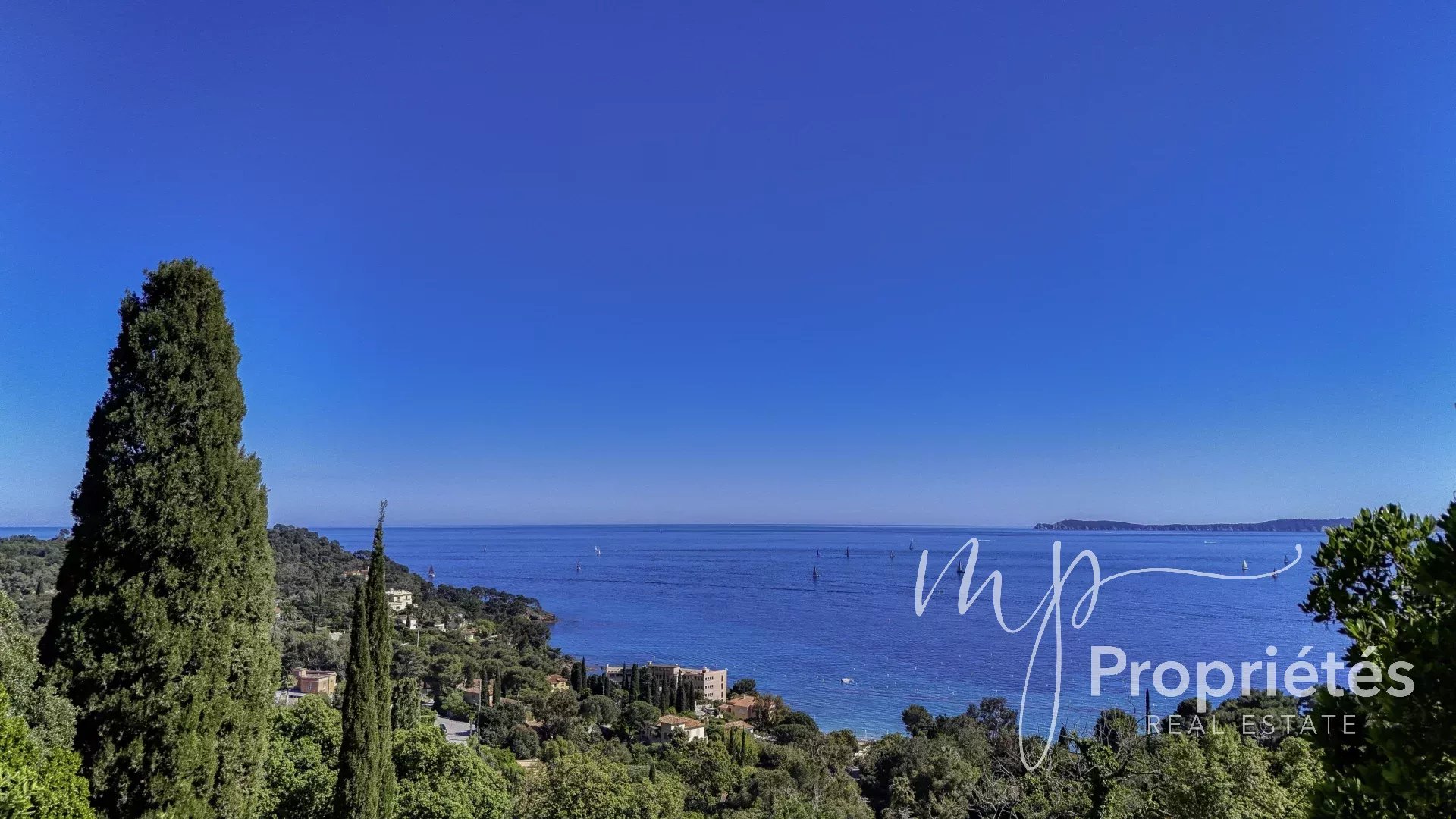 Située au Rayol-Canadel-sur-Mer, cette villa exclusive offre un agencement optimisé sur deux niveaux, avec quatre chambres et une vue imprenable sur la mer.