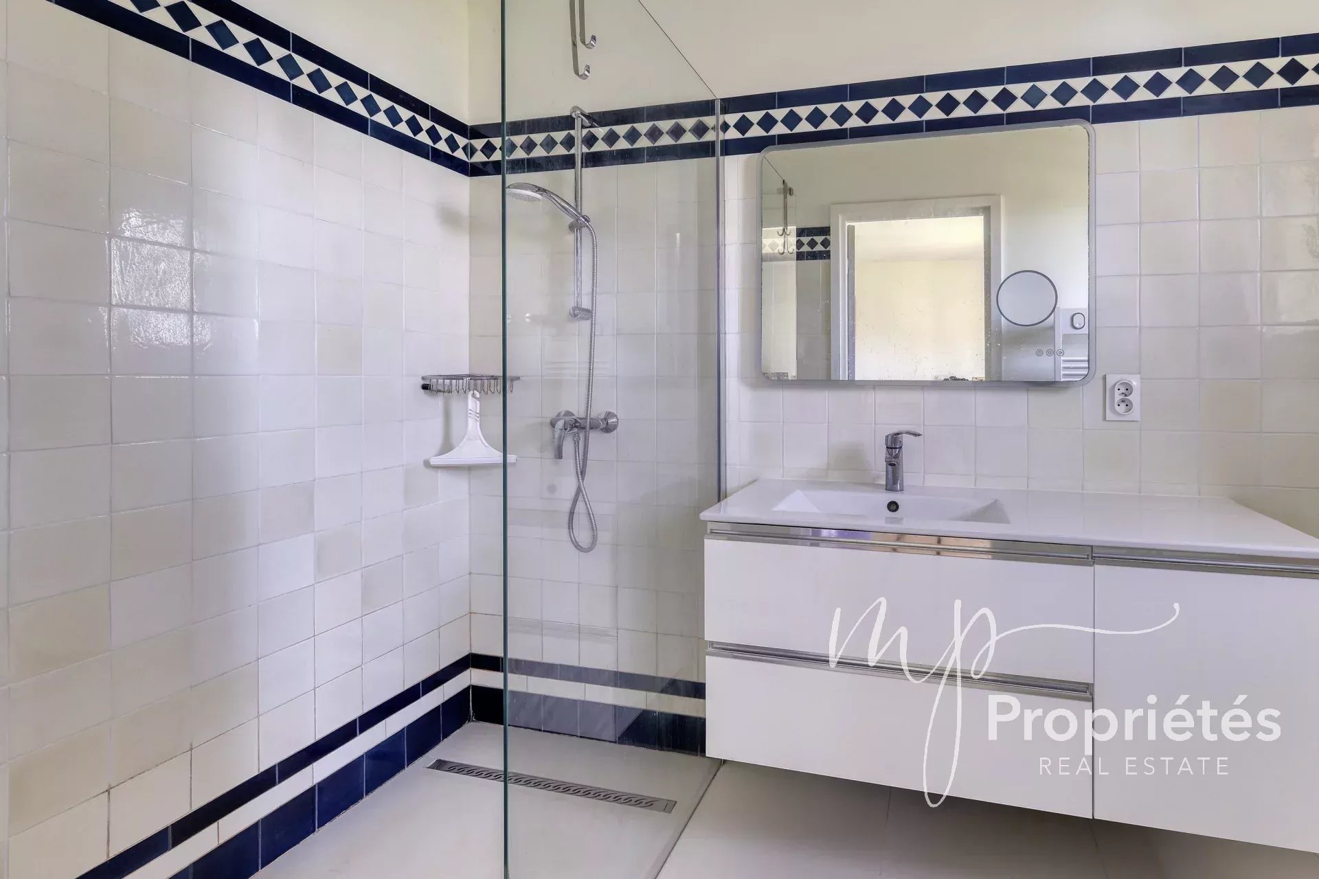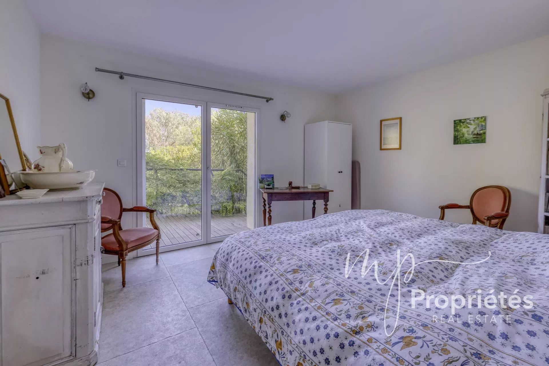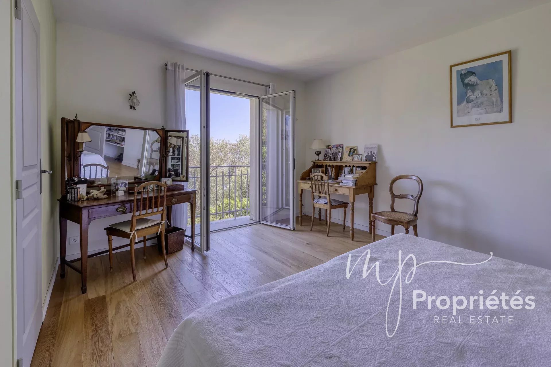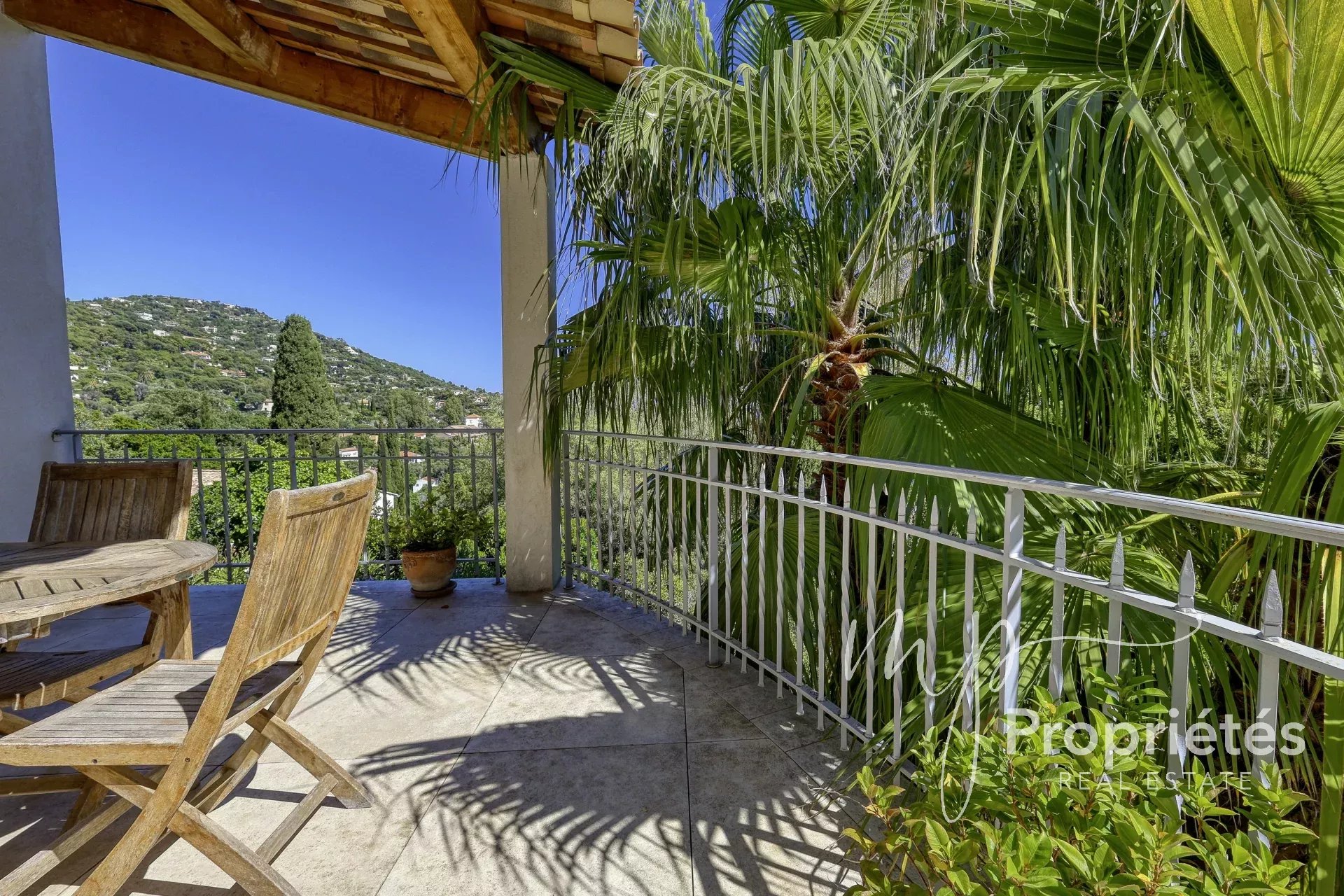 Située au Rayol-Canadel-sur-Mer, cette villa exclusive offre un agencement optimisé sur deux niveaux, avec quatre chambres et une vue imprenable sur la mer.