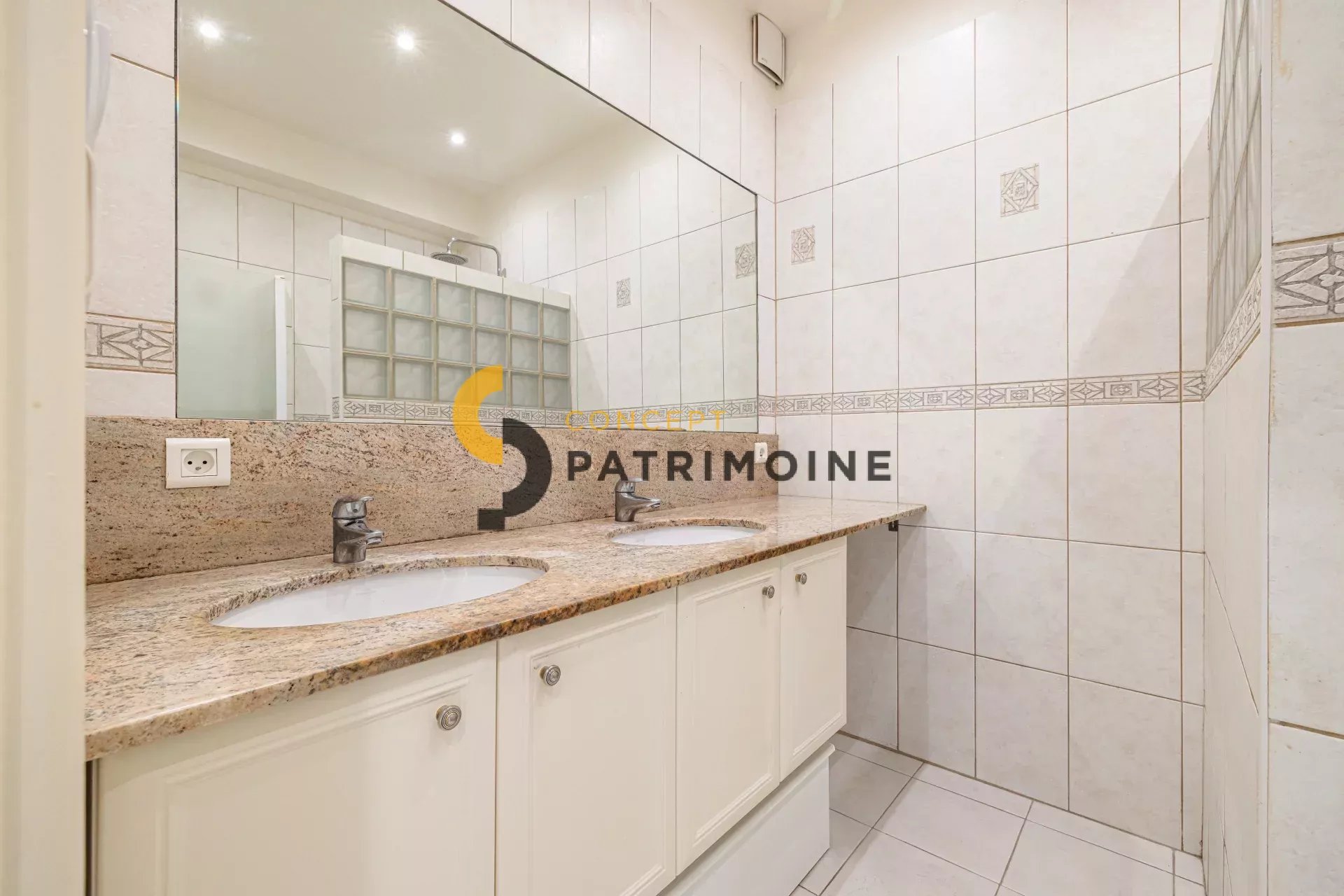 Situé dans une résidence sécurisée, appartement de type 4 piéces d'environ 85m2 traversant, au calme et sans vis-à-vis. Il se compose d'une entrée, d'un grand salon/salle à manger/cuisine de plus de 40m2 qui vous permettra de pouvoir recevoir vos invités sans aucuns problemes. On aura ensuite un wc indépendant, une salle d'eau avec double vasque et 3 chambres avec placards. ce bien posséde deux extérieurs : un balcon de 7m2 et une terrasse/véranda de 23m2 attenant à une des chambres. Appartement à rafraichir !!! Une cave compléte ce bien. Possibilité d'acheter un grand garage de presque 20m2 dans la résidence en supplément !!!