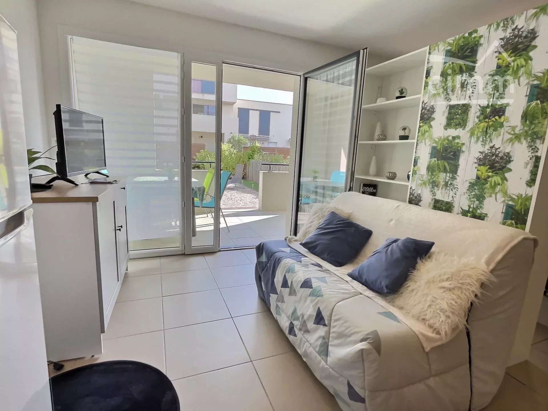 Un salon salle à manger avec un canapé convertible (140) une chambre ouverte avec lit double (140), une cuisine totalement aménagée et équipée, une salle d’eau avec douche et Wc.