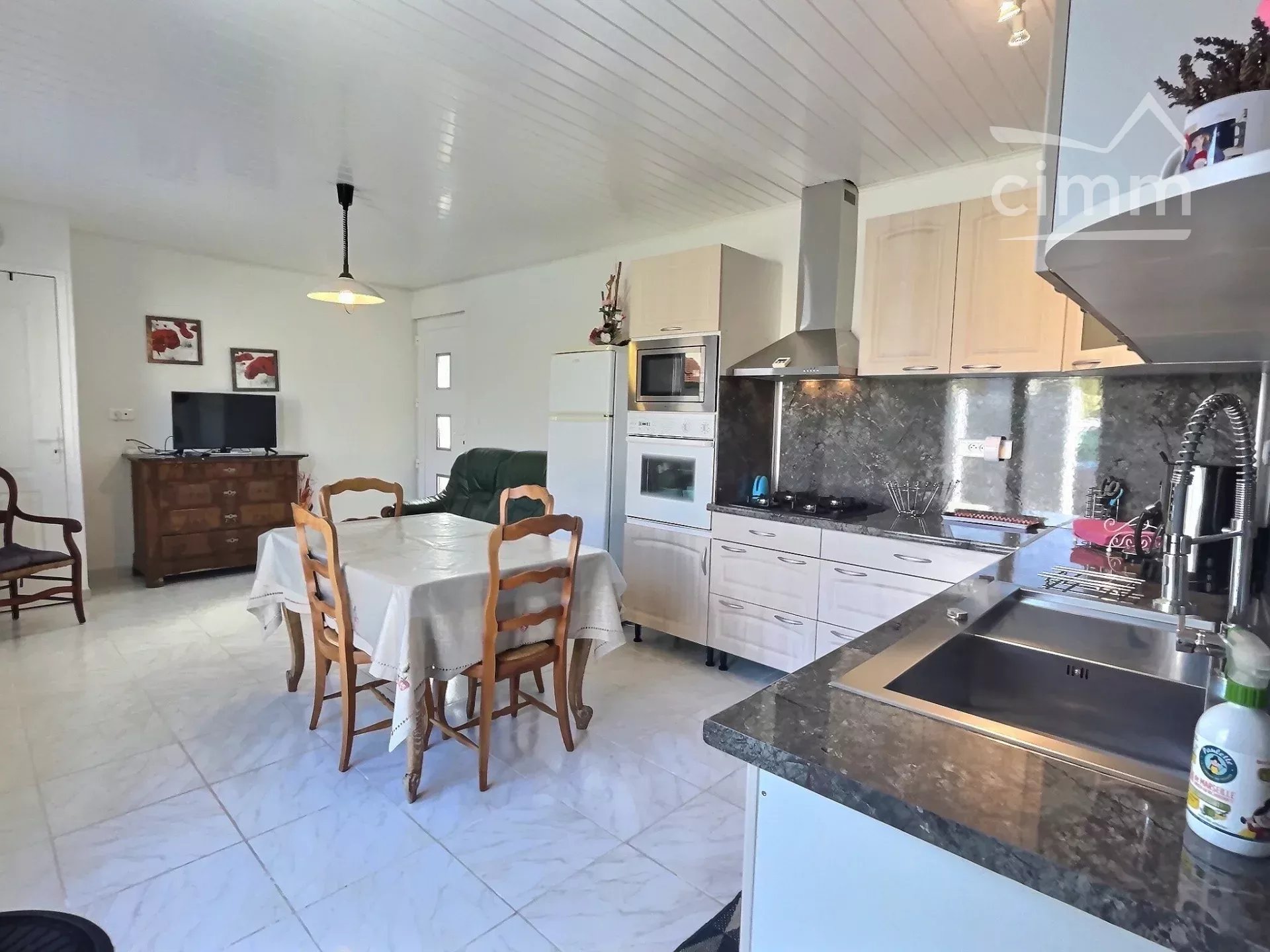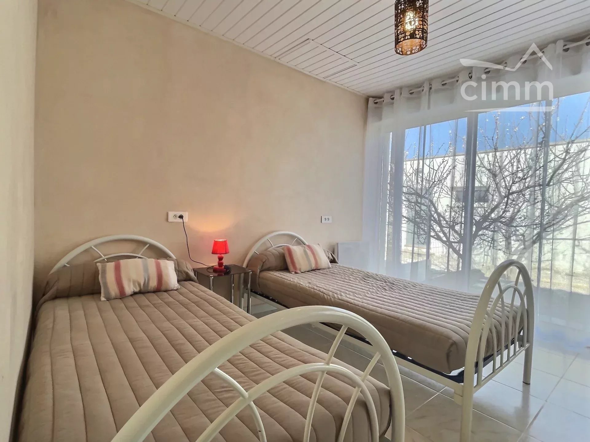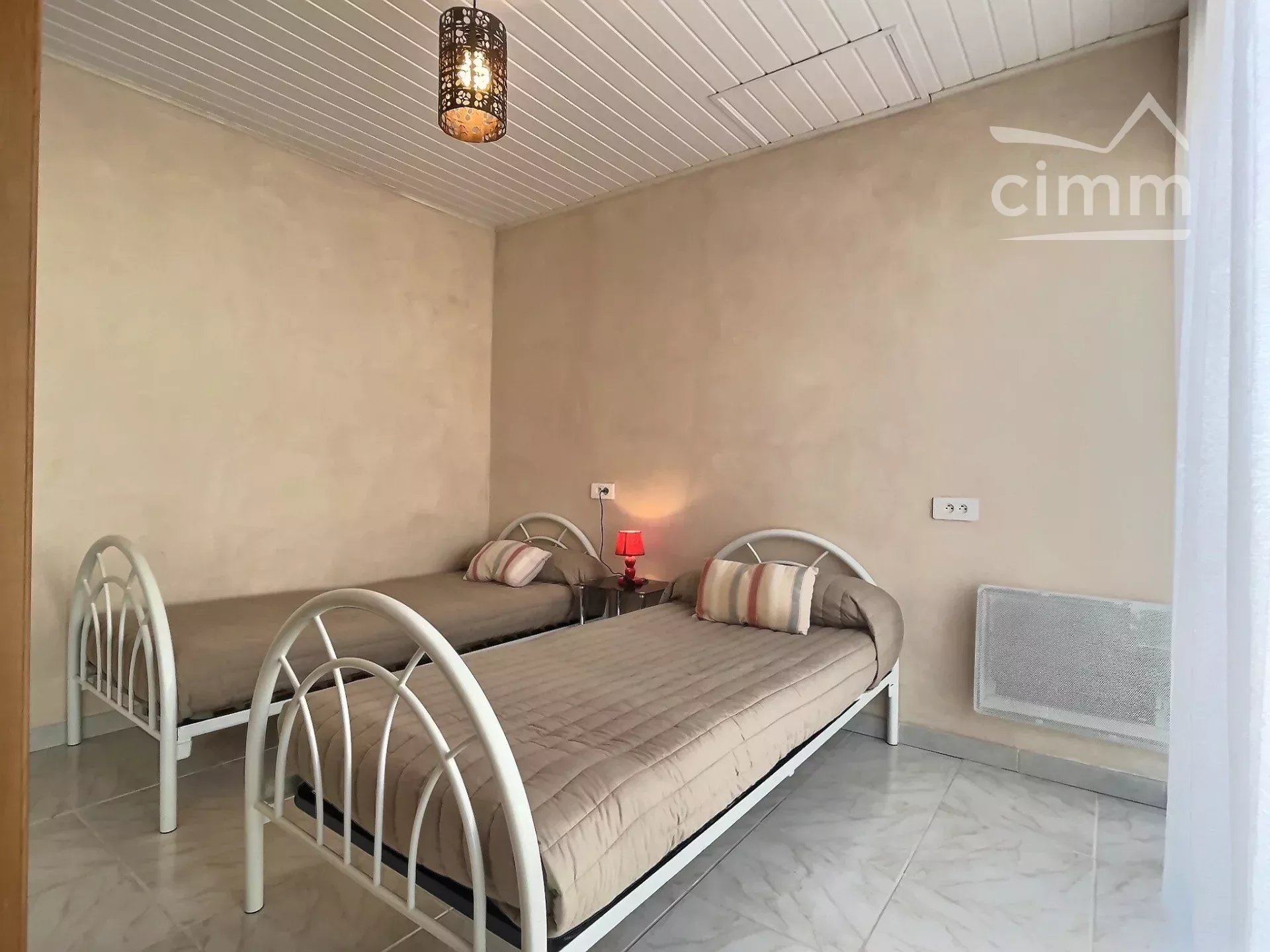 Le logement est composé comme suit : Une chambre d’enfant avec deux lits simples (2x90), d’une chambre parentale avec un lit double (140), d’une salle d’eau avec toilettes et d’un séjour cuisine aménagé totalement équipé .