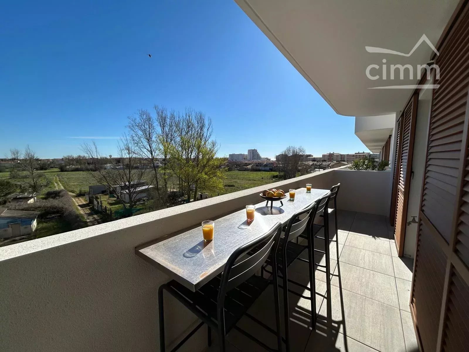 Profitez de vos vacances dans un appartement de 50 m² avec un balcon de 9.60m2 vue dégagée sur valras-plage à 400m de la plage. Cet appartement idéal pour une famille avec 2 enfants, se trouve au premier étage d’une résidence sécurisée avec piscine, le logement dispose d’une place de parking et du wifi.