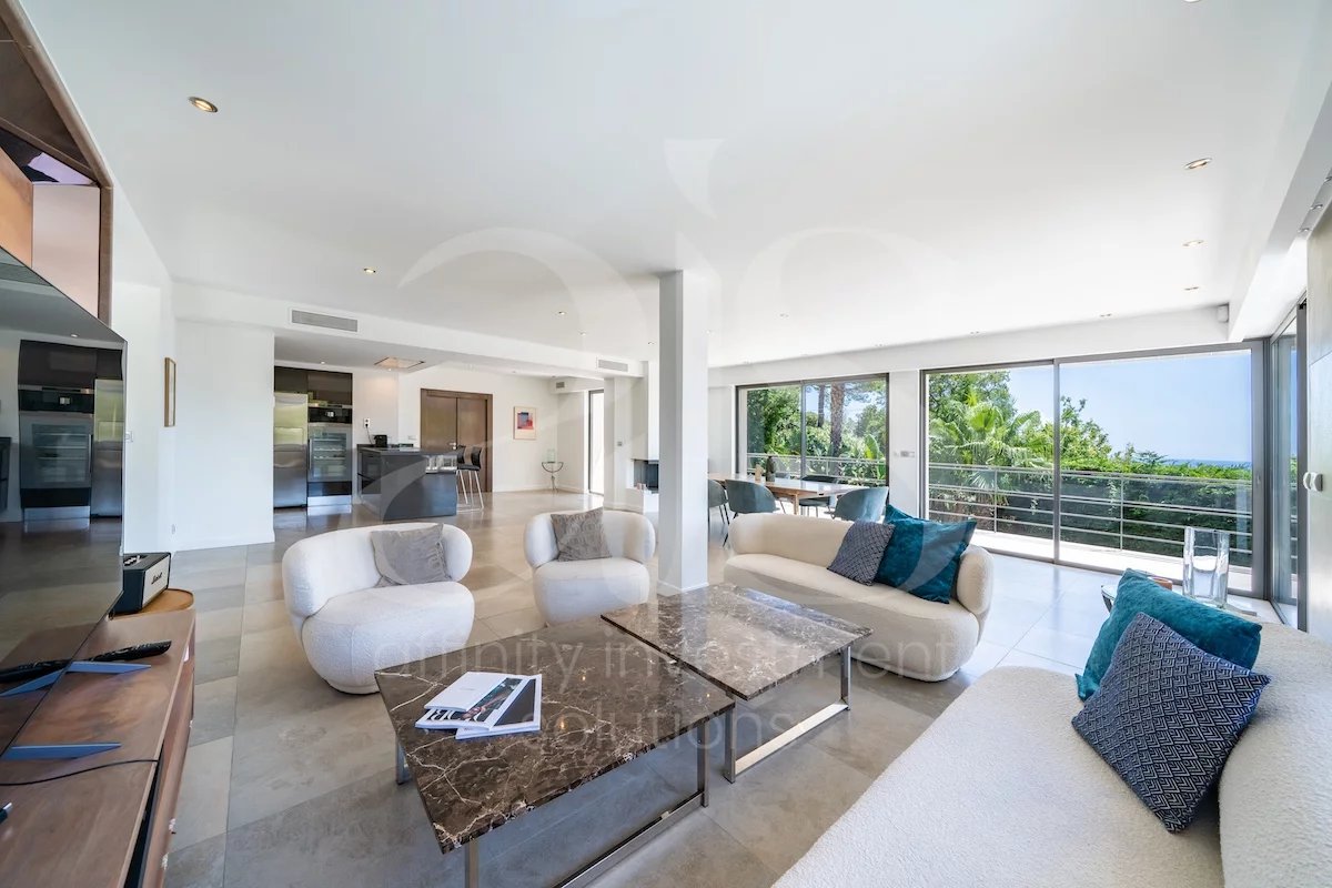 Découvrez cette superbe villa californienne nichée dans un écrin de verdure, à l’abri de tout regard, dans les collines de Cannes/Vallauris.