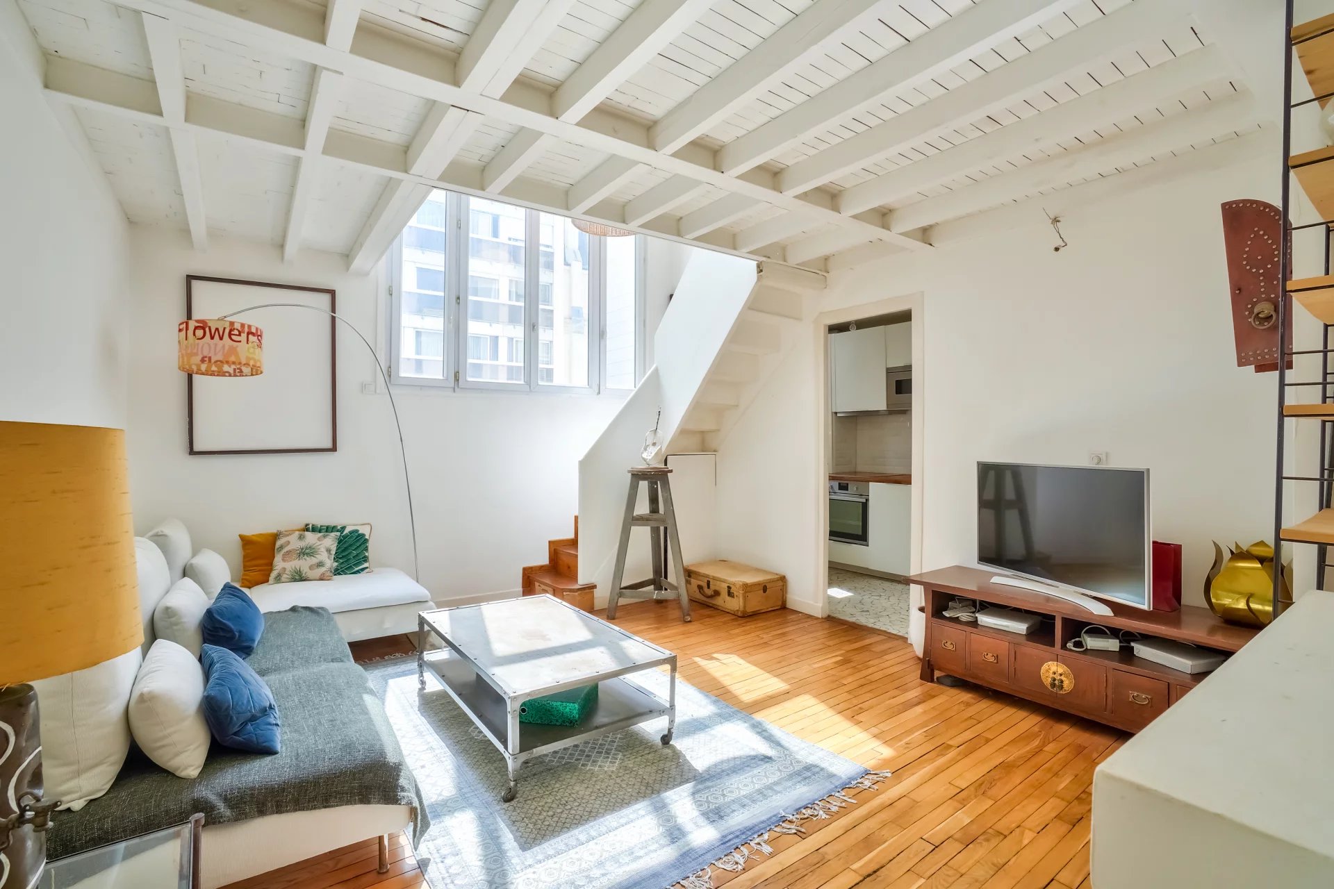 Duplex à 5 minutes du Parc Monceau Duplex à 5 minutes du Parc Monceau Monceau Nous vous proposons un beau duplex meublé en parfait état, au 2ème étage avec ascenseur d'un résidence de 1880 avec gardien. Il est composé d'une entrée, d'un séjour sur cour et d'une cuisine indépendante aménagée et équipée. A l'étage une grande chambre avec coin bureau et dressing et une salle de bain avec wc Calme, lumineux, parfait état. Une cave complète ce bien.