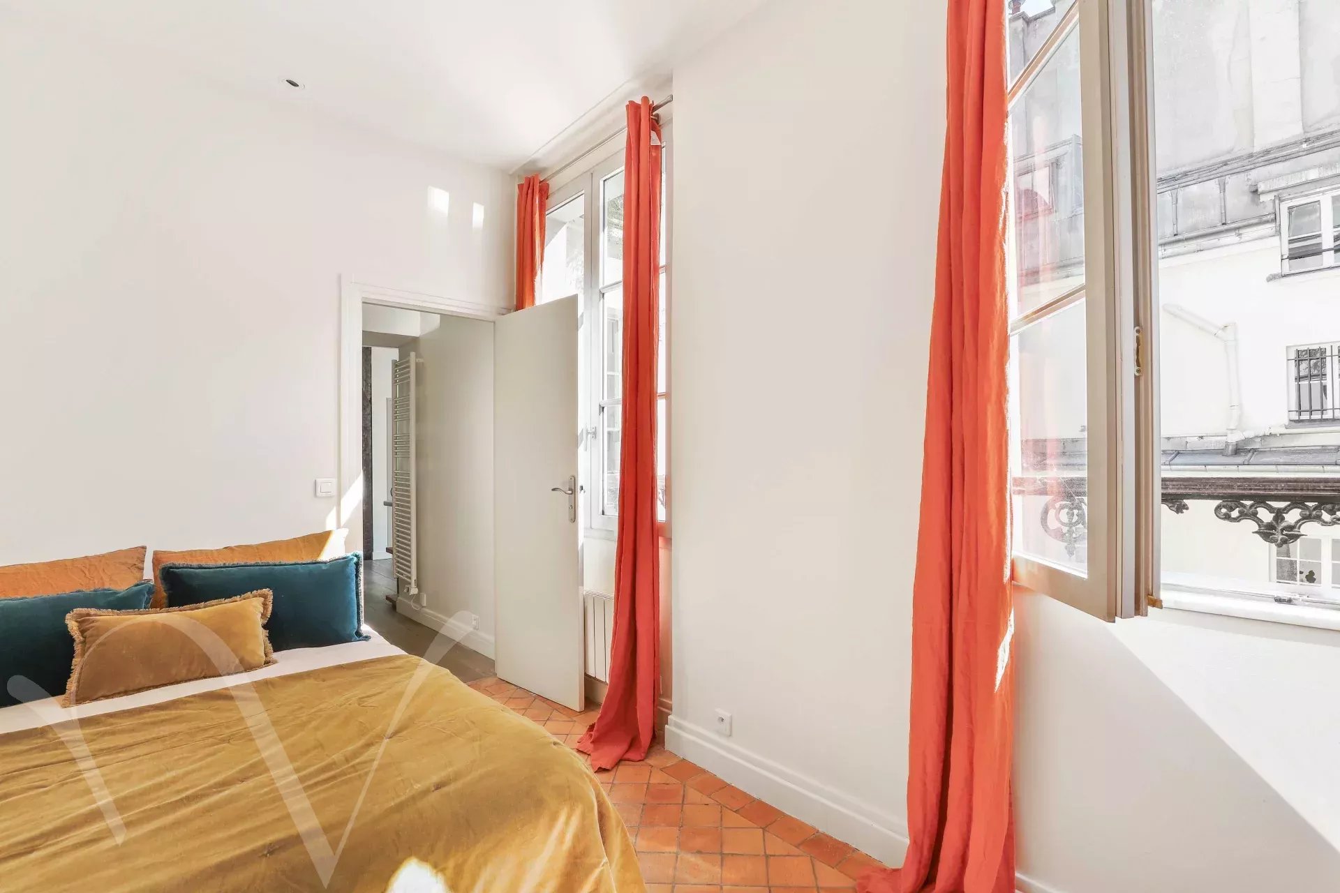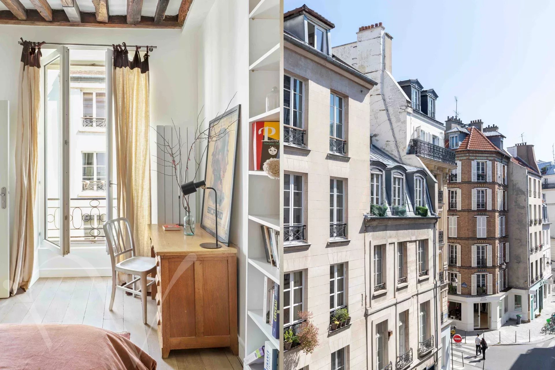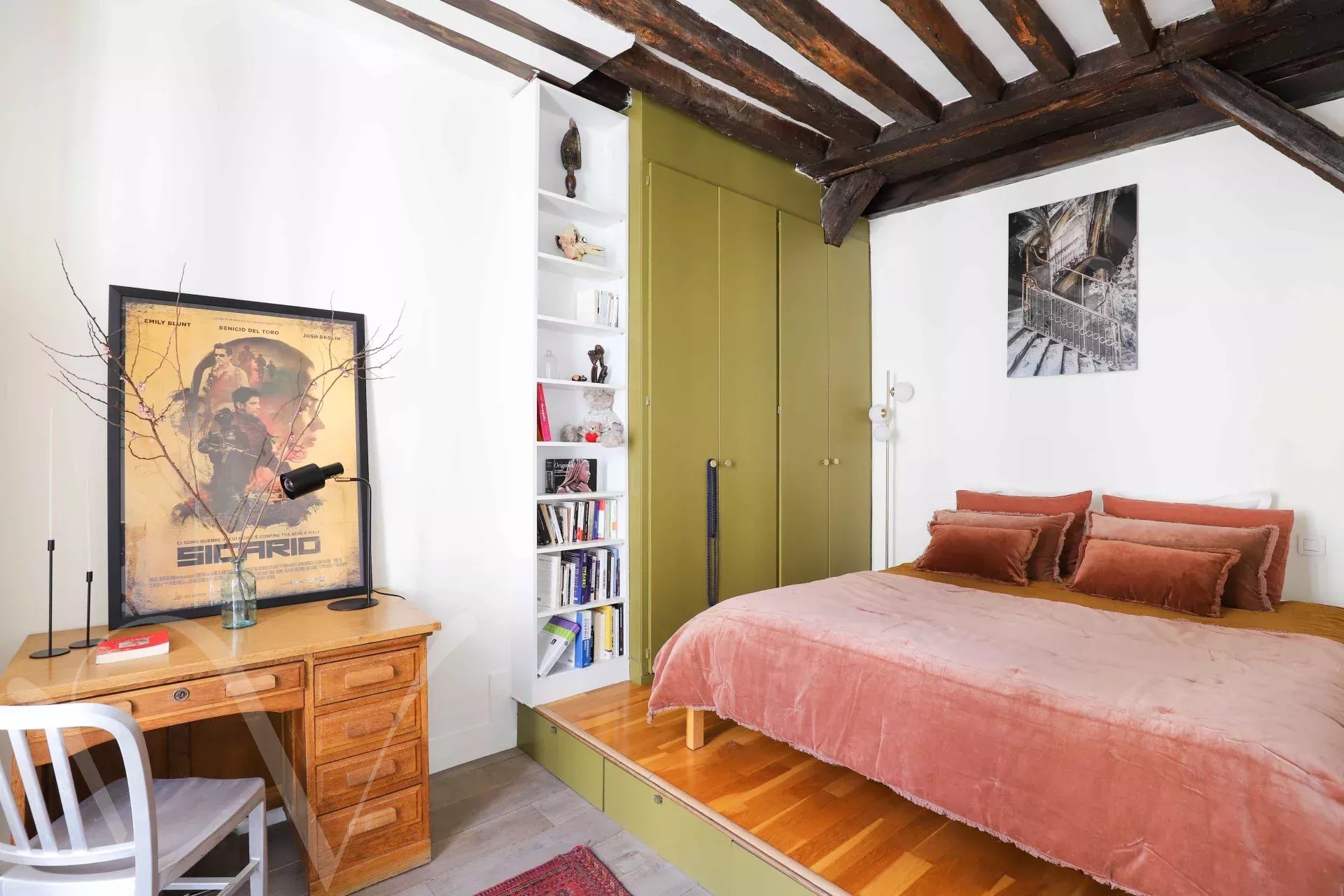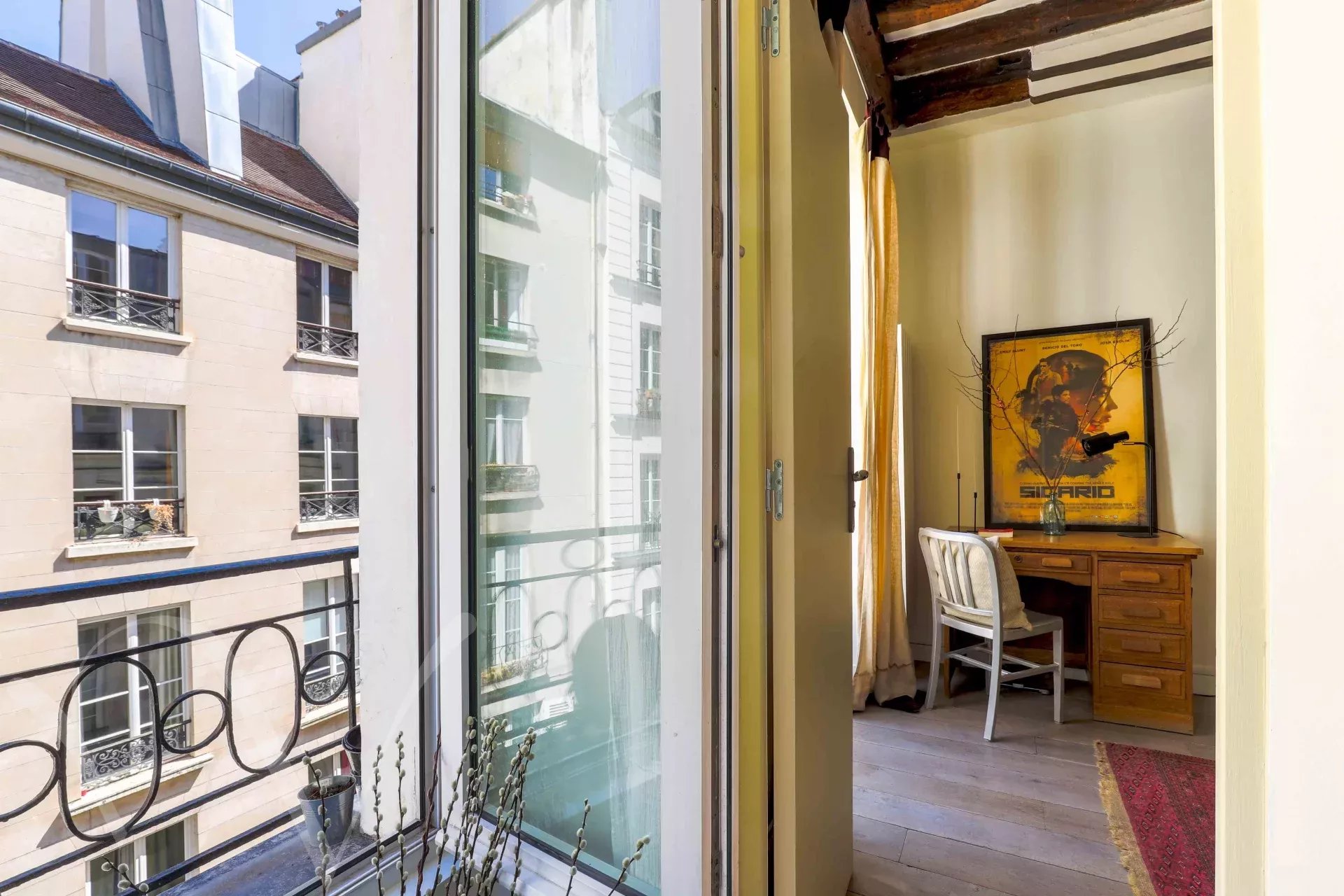 Exclusivité. Situé au 3e étage sans ascenseur d'un immeuble de la fin du XIXe siècle, cet ravissant appartement de 61 m² est niché dans le quartier prisé des Archives, au cœur du 3e arrondissement de Paris. Il se compose d'un beau salon, d'un agréable espace salle à manger avec cuisine ouverte et, de part et d'autre des pièces de réception, des deux chambres lumineuses. Il comprend enfin une salle d'eau et des toilettes séparées. Un mélange de modernité et de charme avec ses poutres apparentes et son parquet chaleureux. Idéalement localisé au cœur d'une rue calme du Haut-Marais, cet appartement est proche de tous les commerces et restaurants, et est bien desservi par les transports en commun.