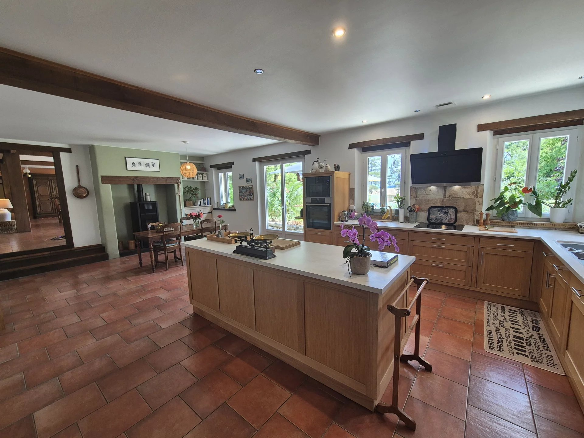 La propriété est dotée de nombreuses installations modernes, telles que des panneaux solaires, un thermostat connecté et une ventilation simple flux. L'accès à internet par fibre optique permet une connexion rapide et stable. La sécurité est une priorité, avec un système d'alarme installé. À l'extérieur, profitez d'un carport et d'un éclairage aménagé pour vos soirées estivales.