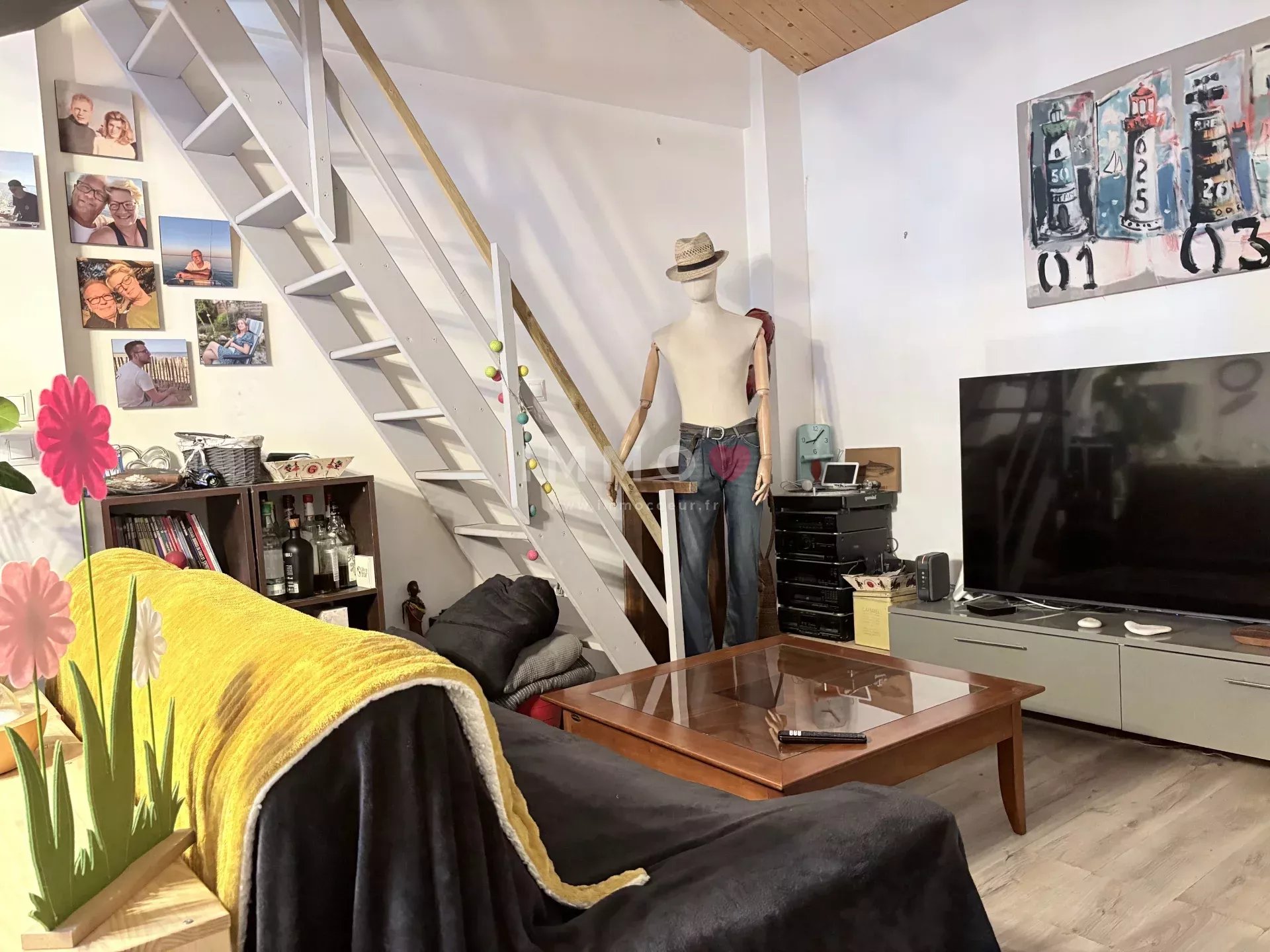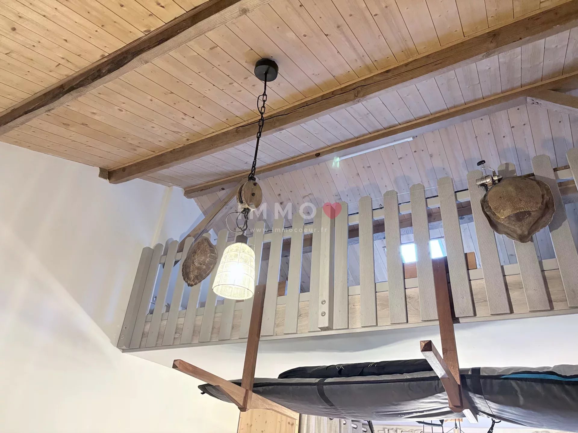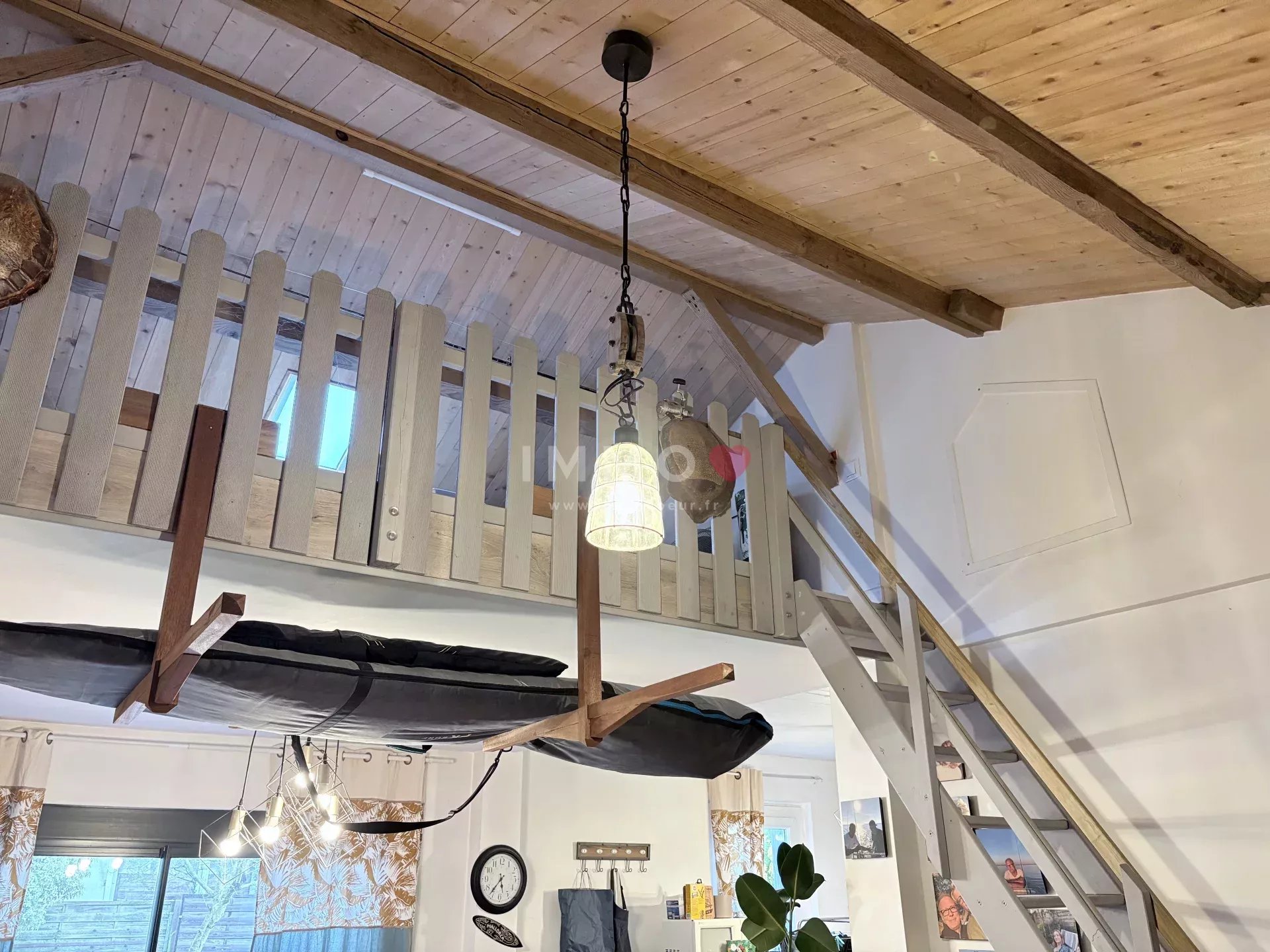 Elle se compose d'une entrée, de deux chambres, d'une cuisine aménagée et équipée - ouverte sur un salon séjour, d'une salle d'eau et d'un toilettes séparé, et d'un cellier. Une mezzanine astucieuse optimise l'espace, idéale pour un couchage supplémentaire, un bureau ou un coin cosy.