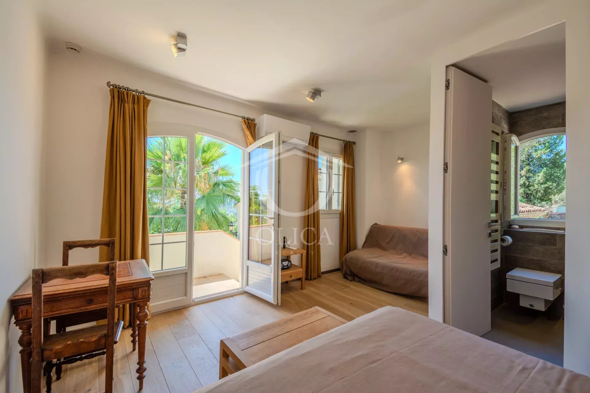À l’extérieur, vous profiterez d’un grand jardin paysagé, d’une piscine ensoleillée, et d’une vaste terrasse avec vue mer, idéale pour les repas en plein air ou les moments de détente. Un carport permet de stationner facilement votre véhicule.